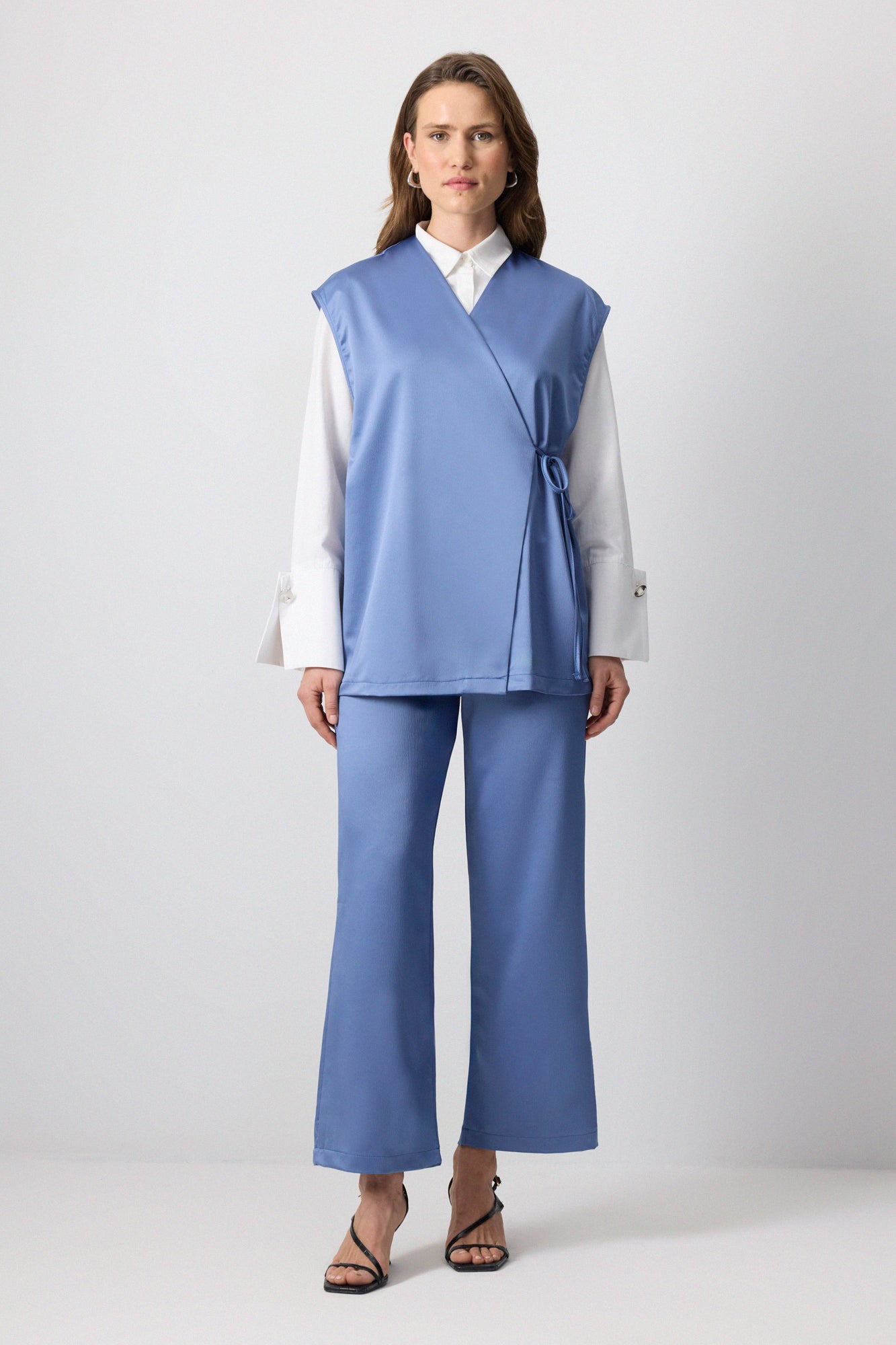 DOUBLE BREASTED VEST TROUSERS SATIN SET