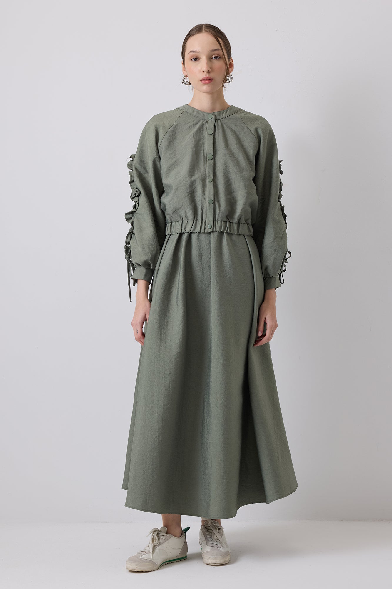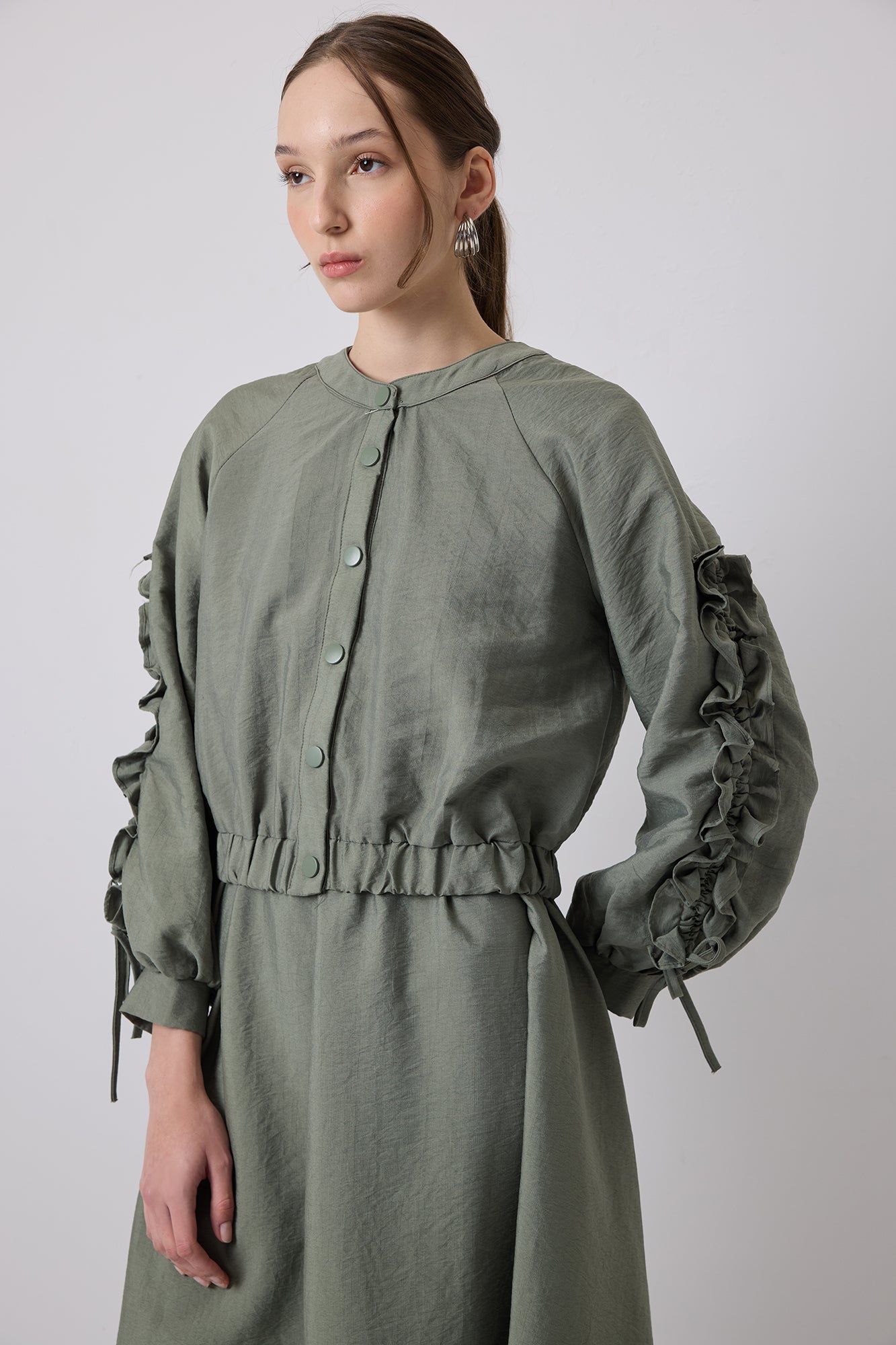 JACKET DRESS SET WITH SHIRRED SLEEVES