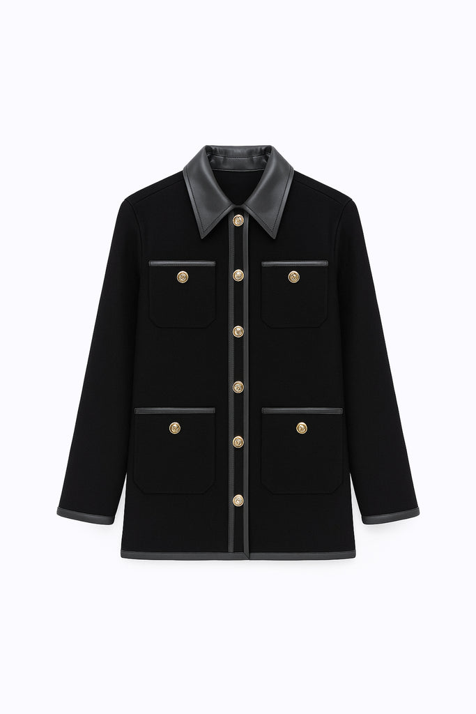 LEATHER DETAILED GOLD BUTTON COAT