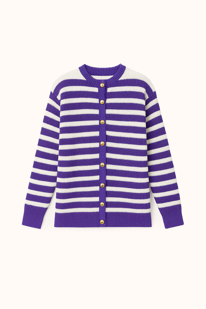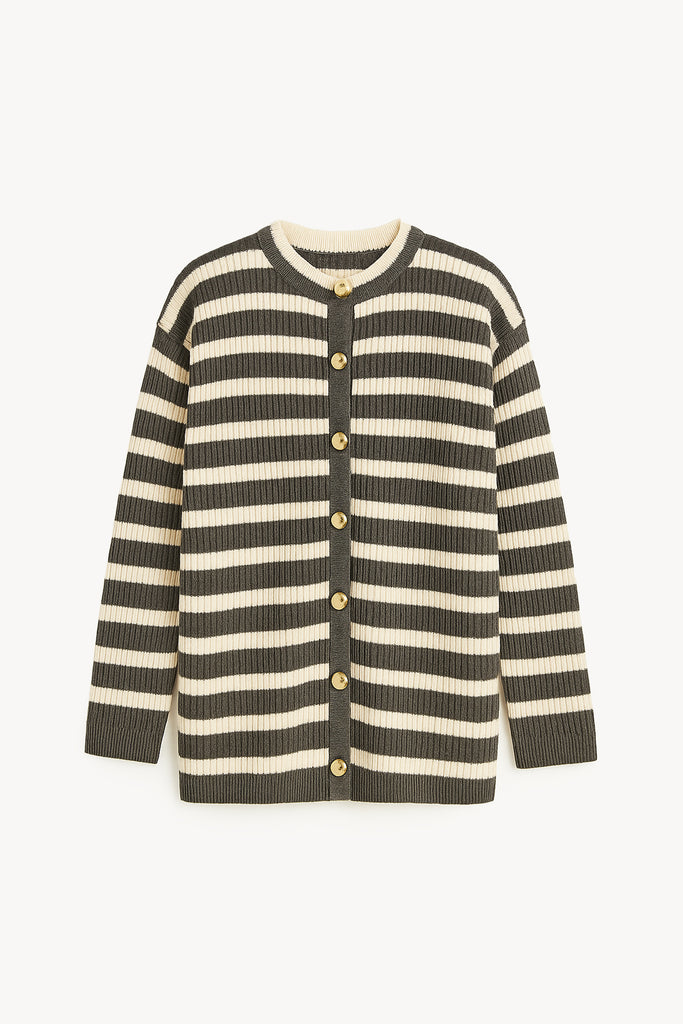 STRIPED LONG CARDIGAN WITH GOLD BUTTONS