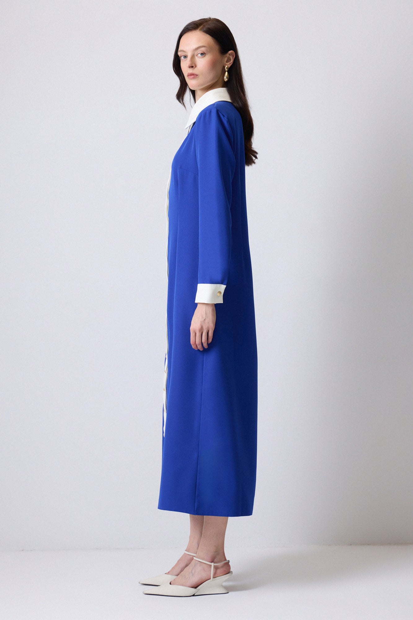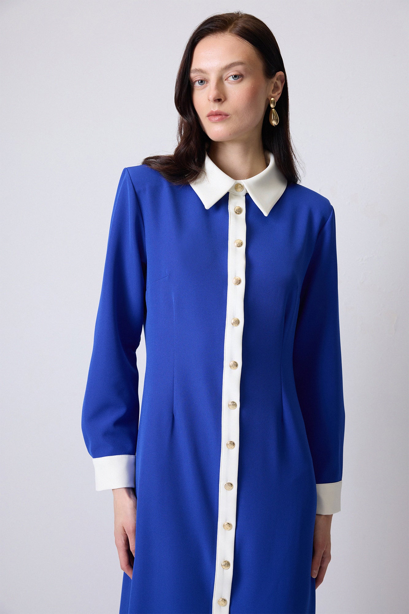 GOLD BUTTONED CREPE DRESS