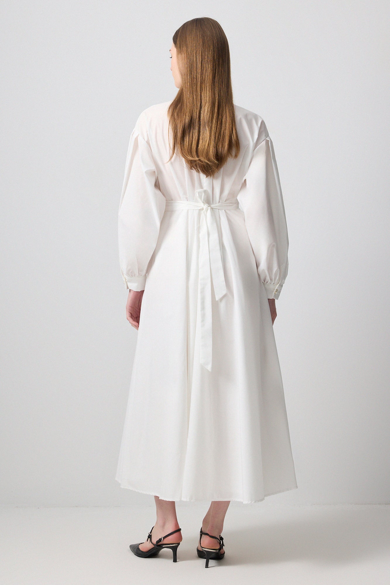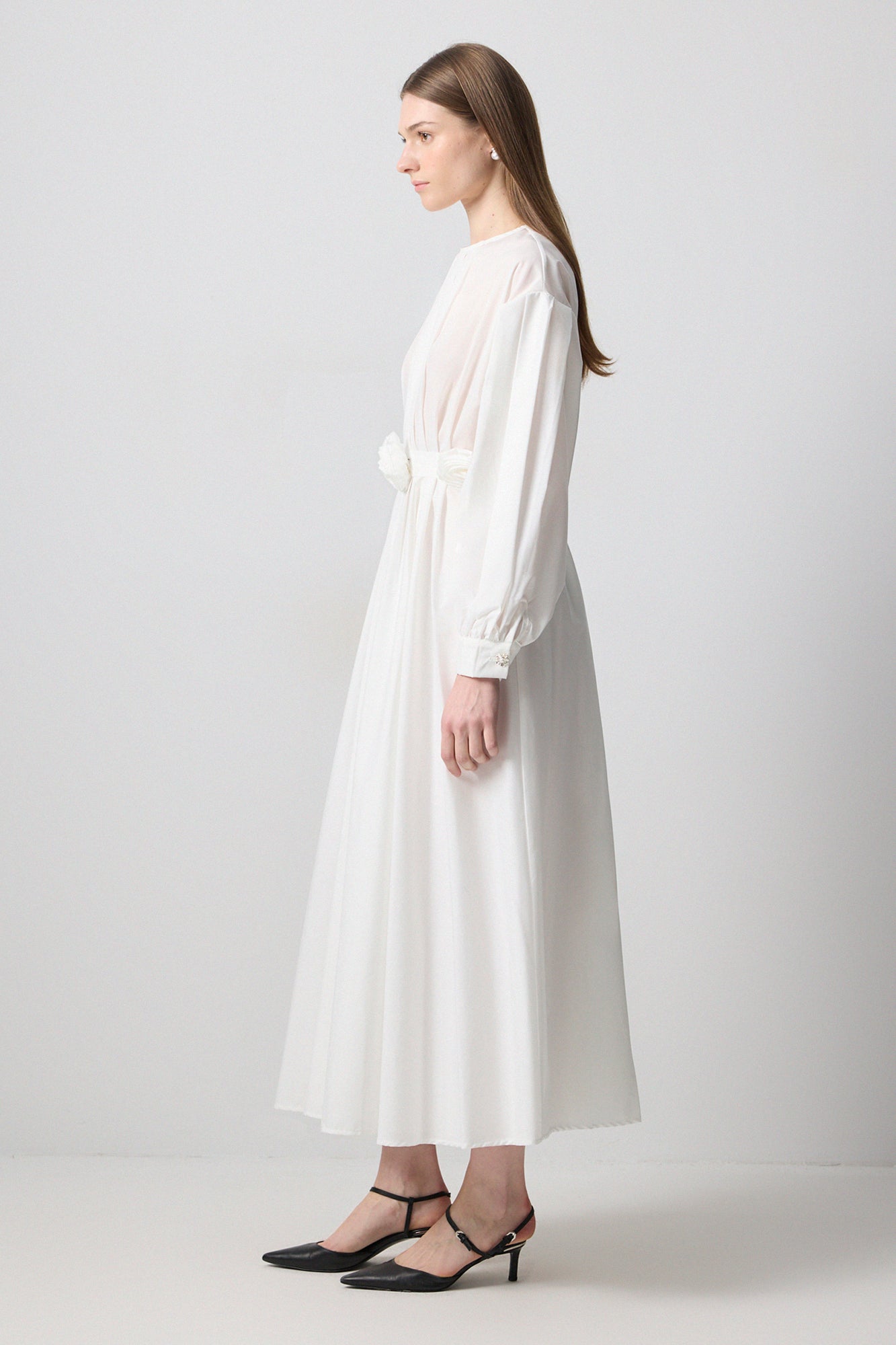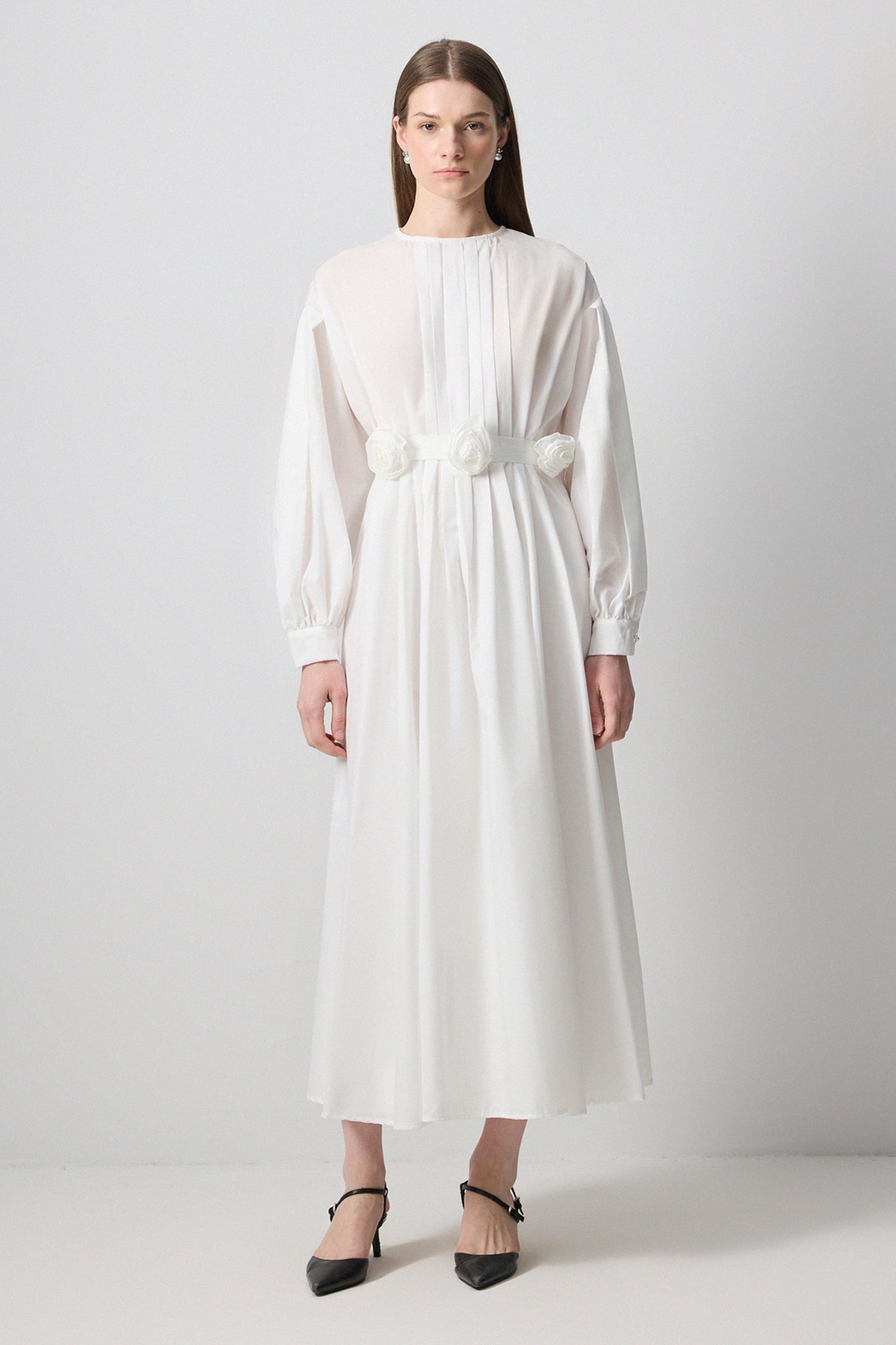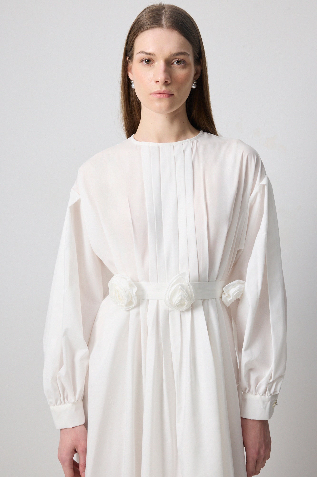 PLEATED POPLIN DRESS WITH FLORAL DETAILS