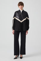 STRIPED CREPE SWEAT WITH SEQUIN DETAIL