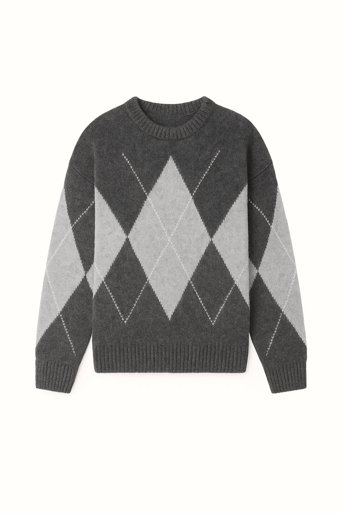 DIAMOND PATTERNED KNIT SWEATER