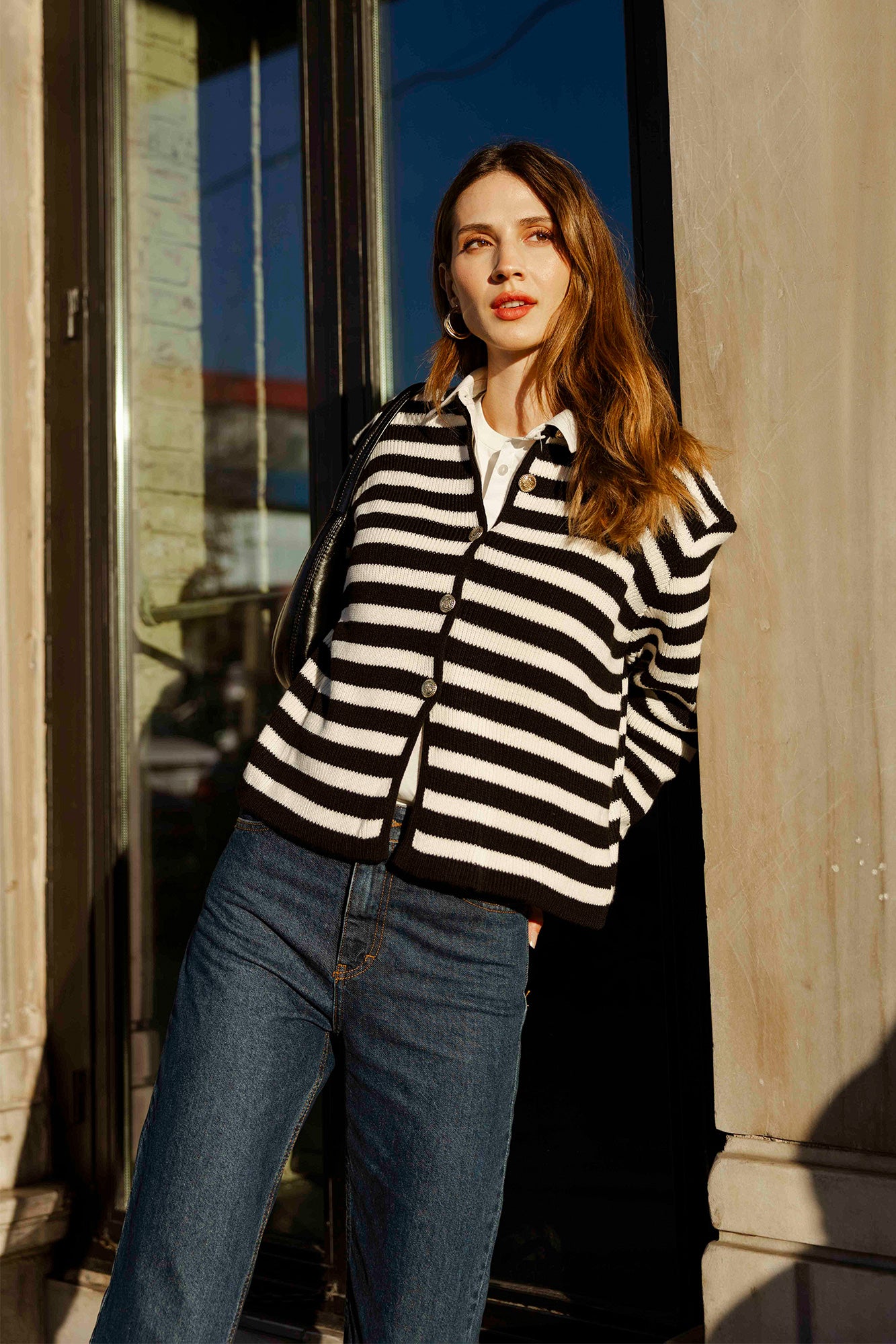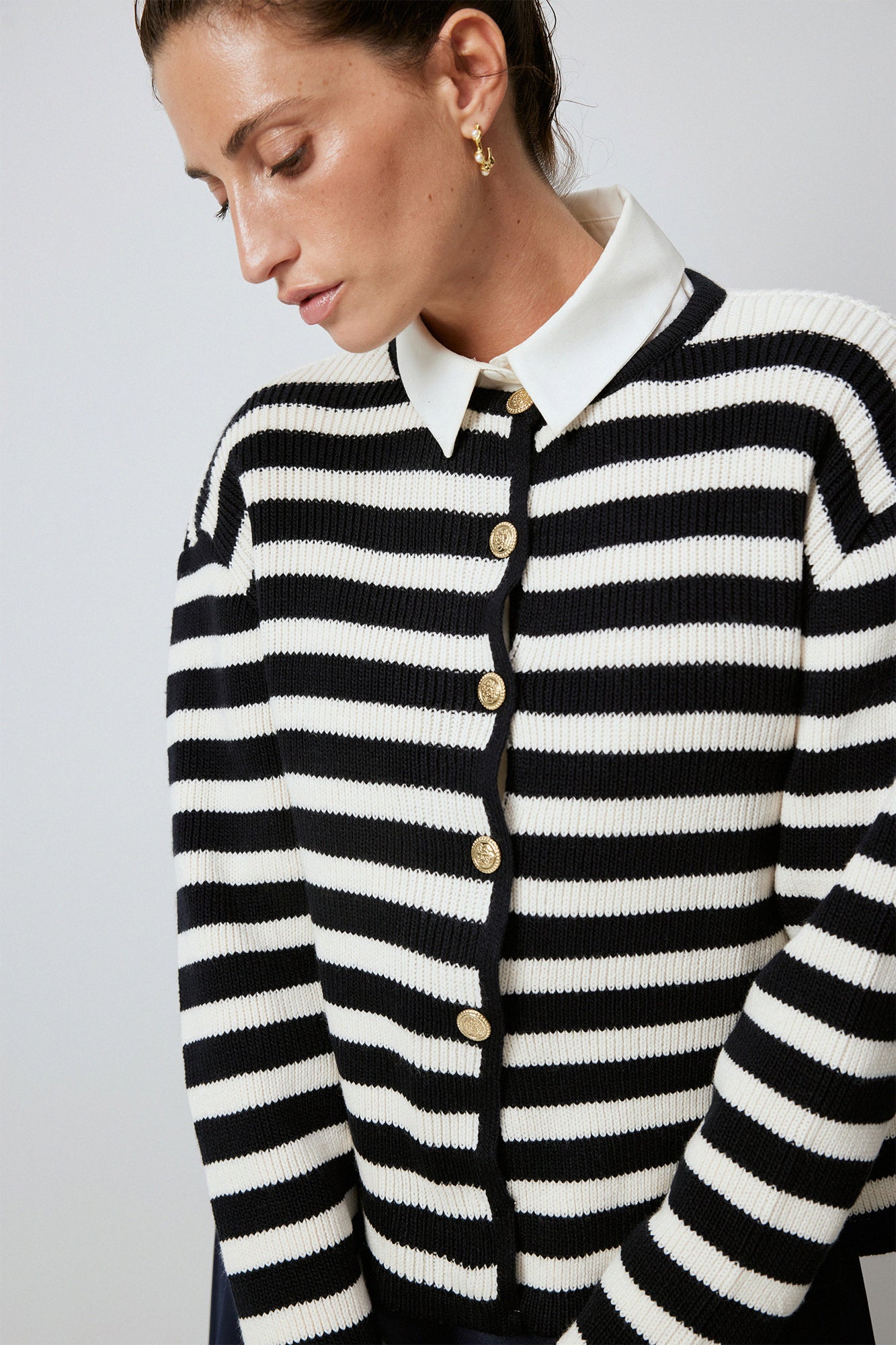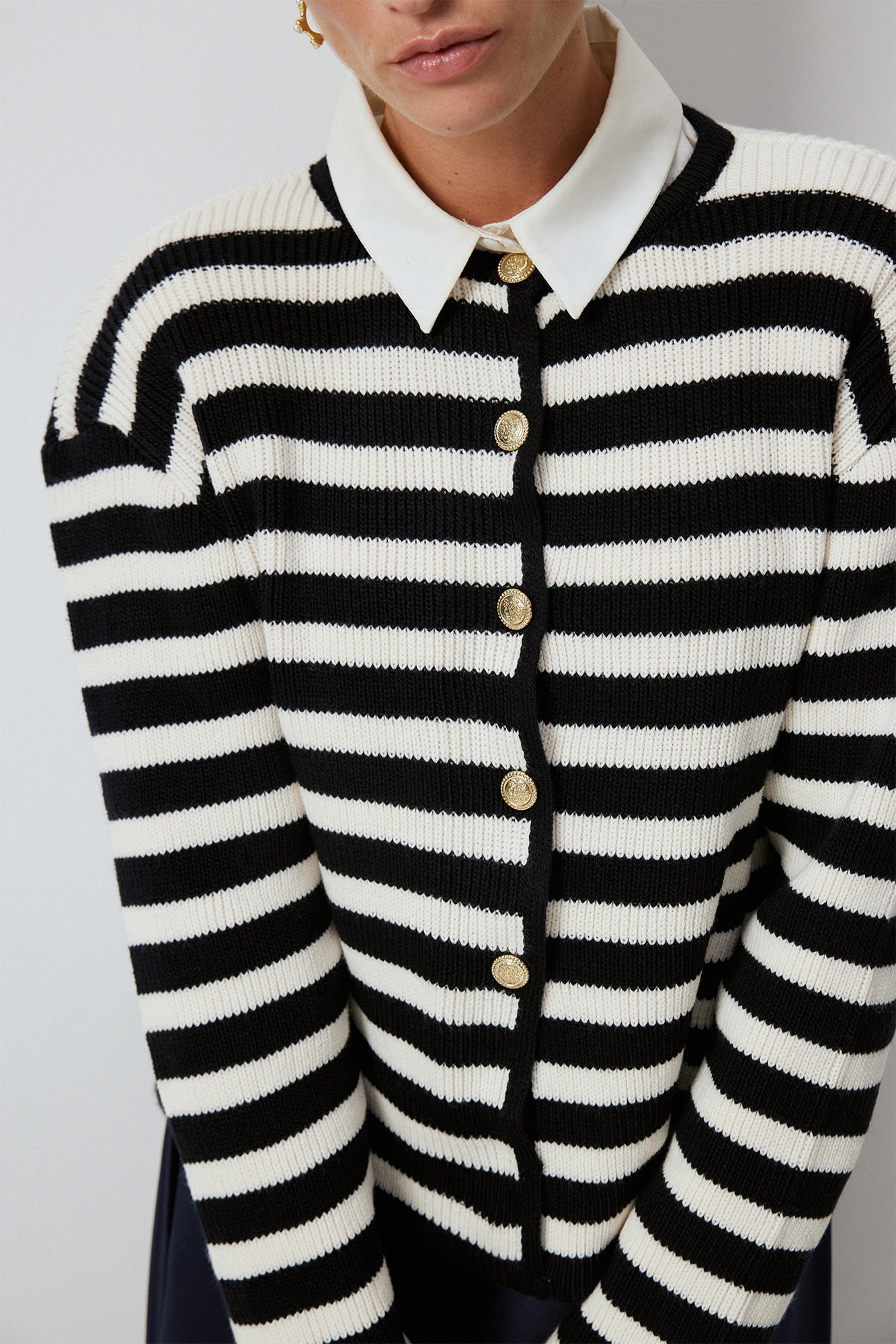 STRIPED SHORT CARDIGAN WITH GOLD BUTTONS