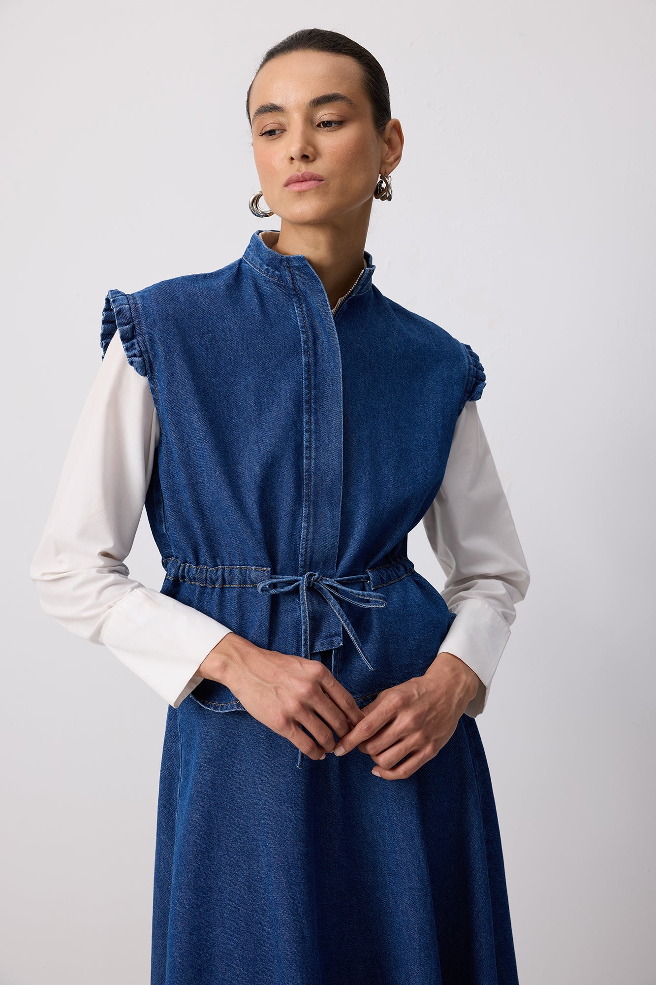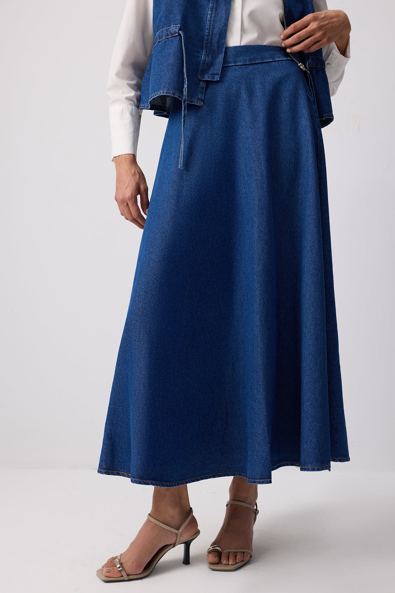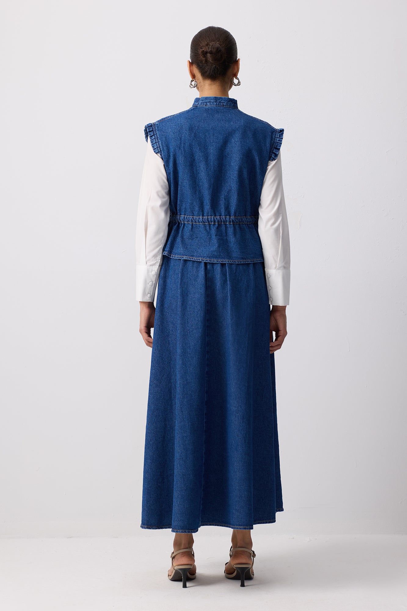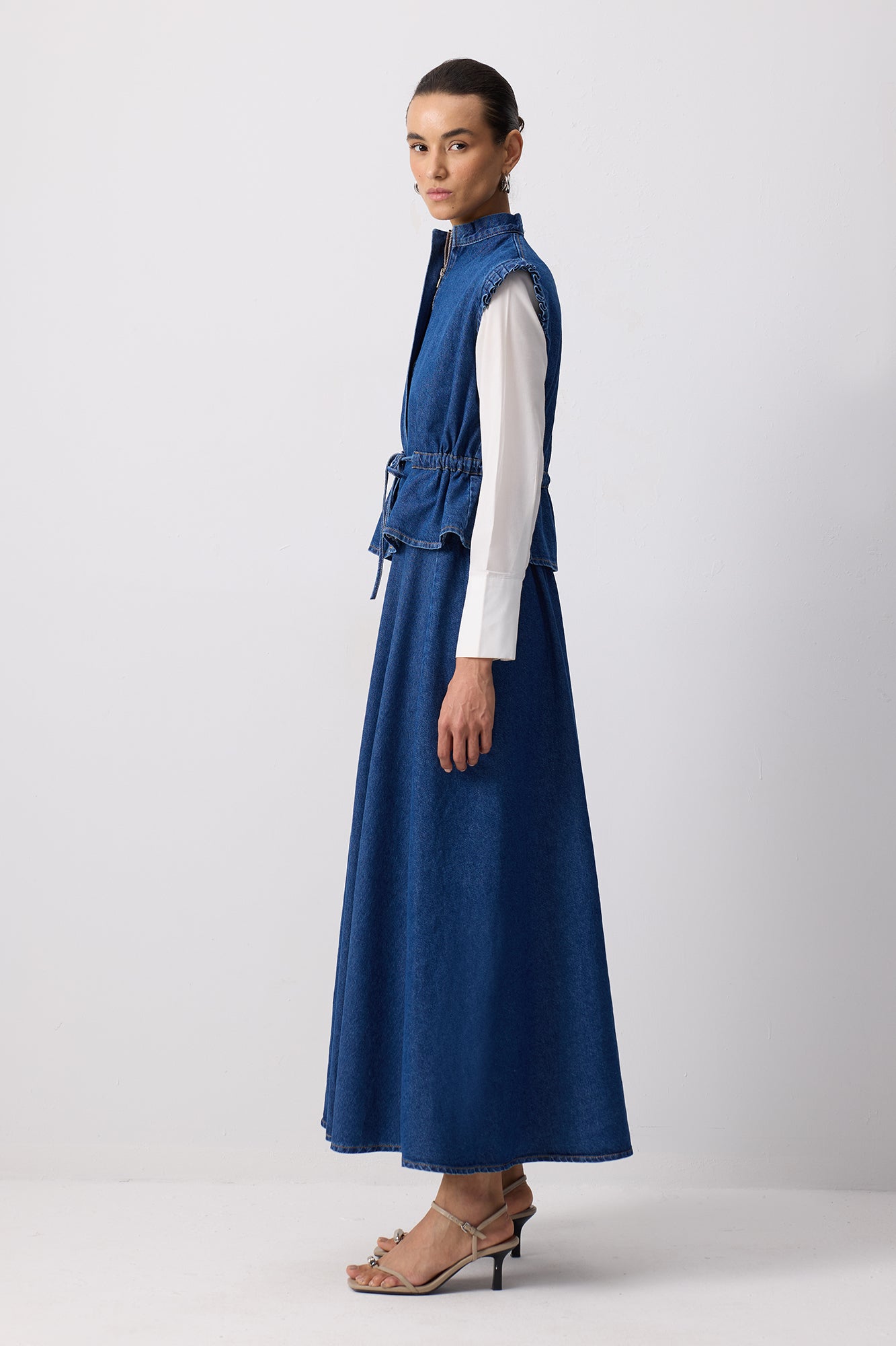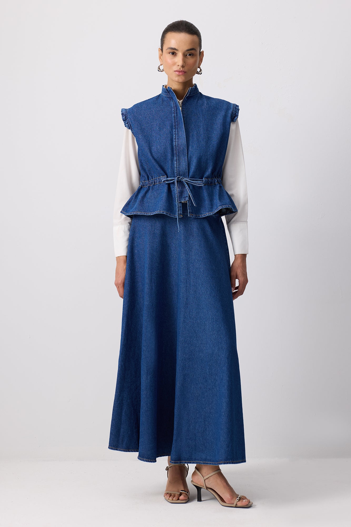 DENIM VEST SKIRT SET WITH TIE WAIST