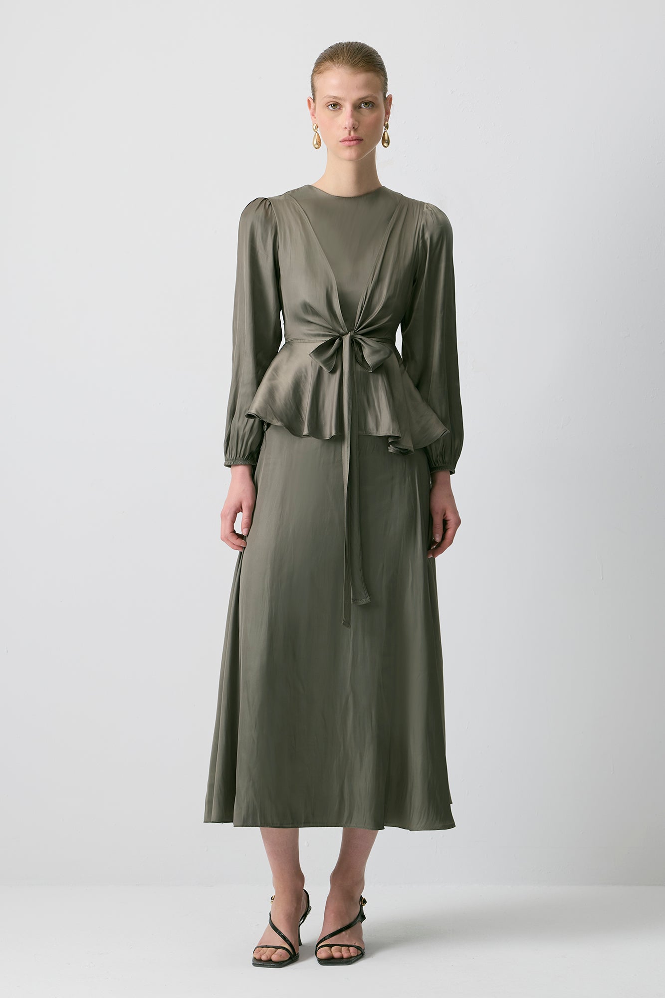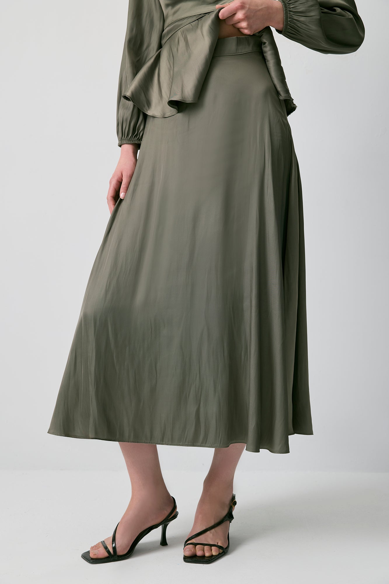 FRONT TIE SATIN BLOUSE SKIRT SET