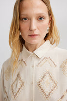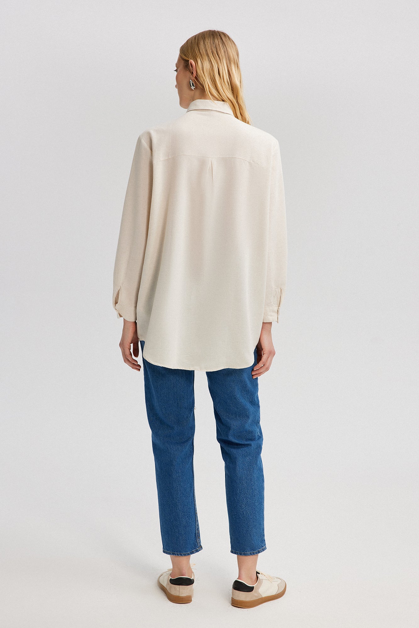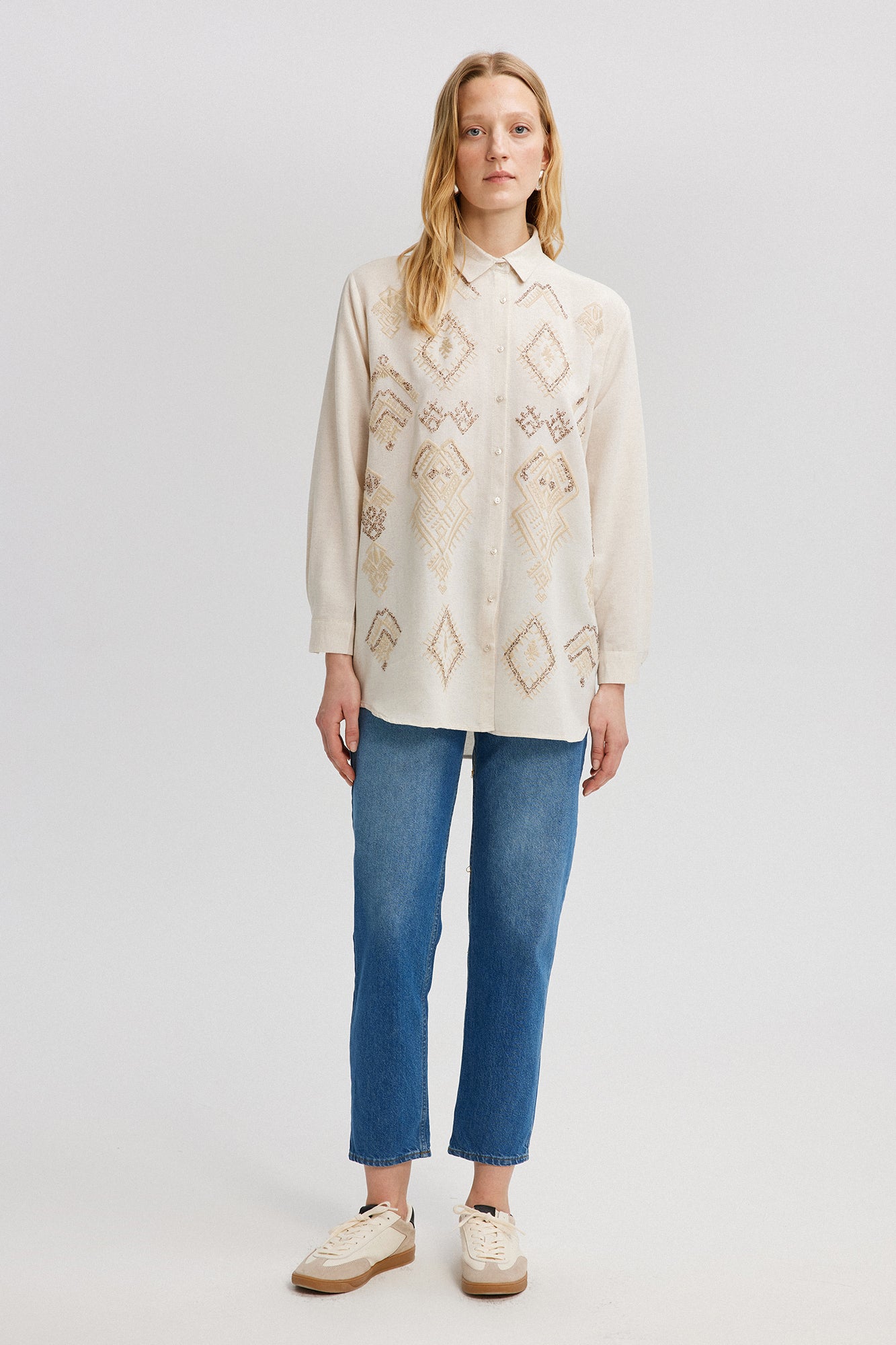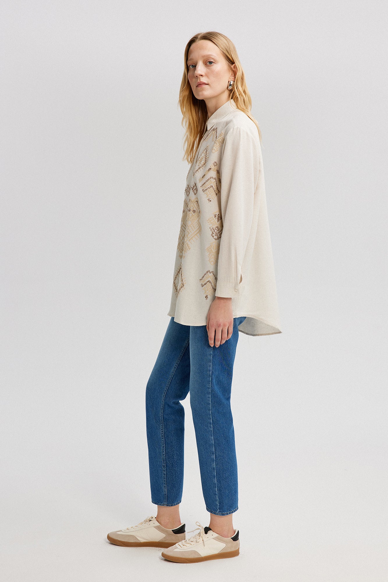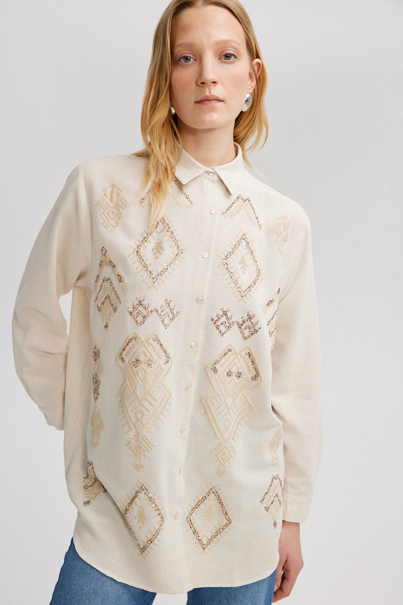 LINEN TEXTURED OVERSIZE SHIRT WITH EMBROIDERY