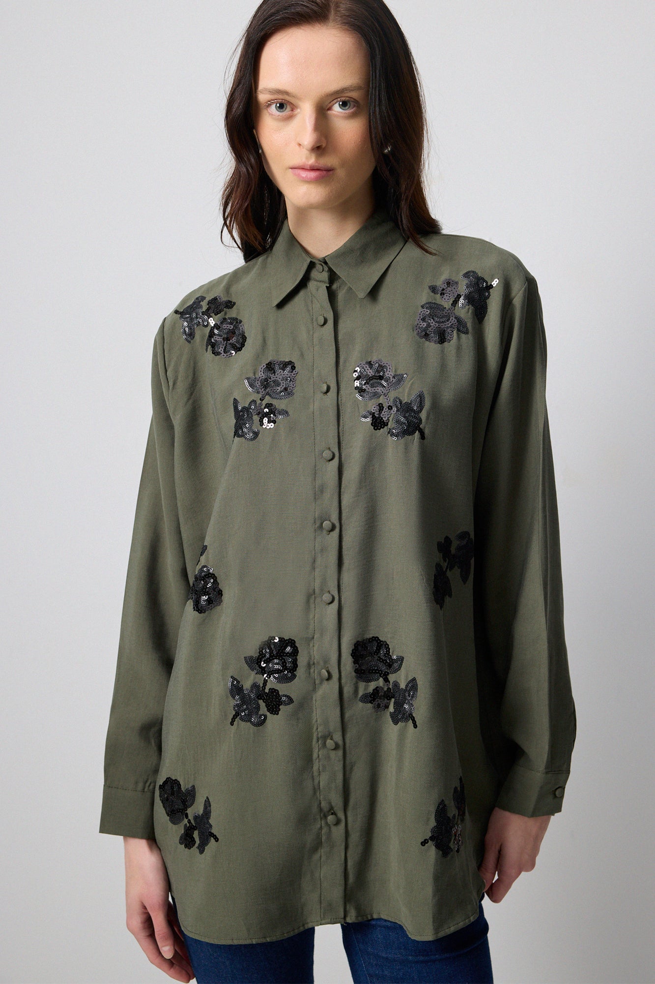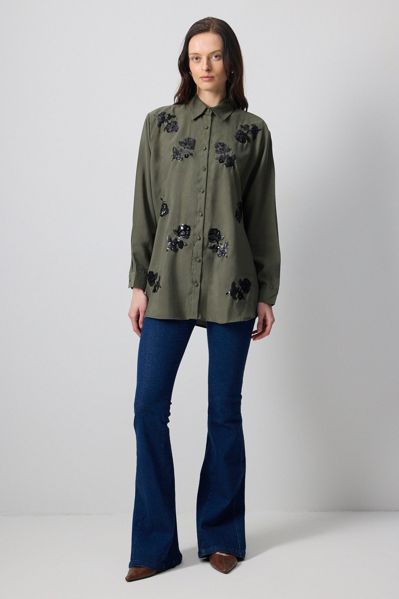 SEQUIN EMBROIDERED OVERSIZE SHIRT