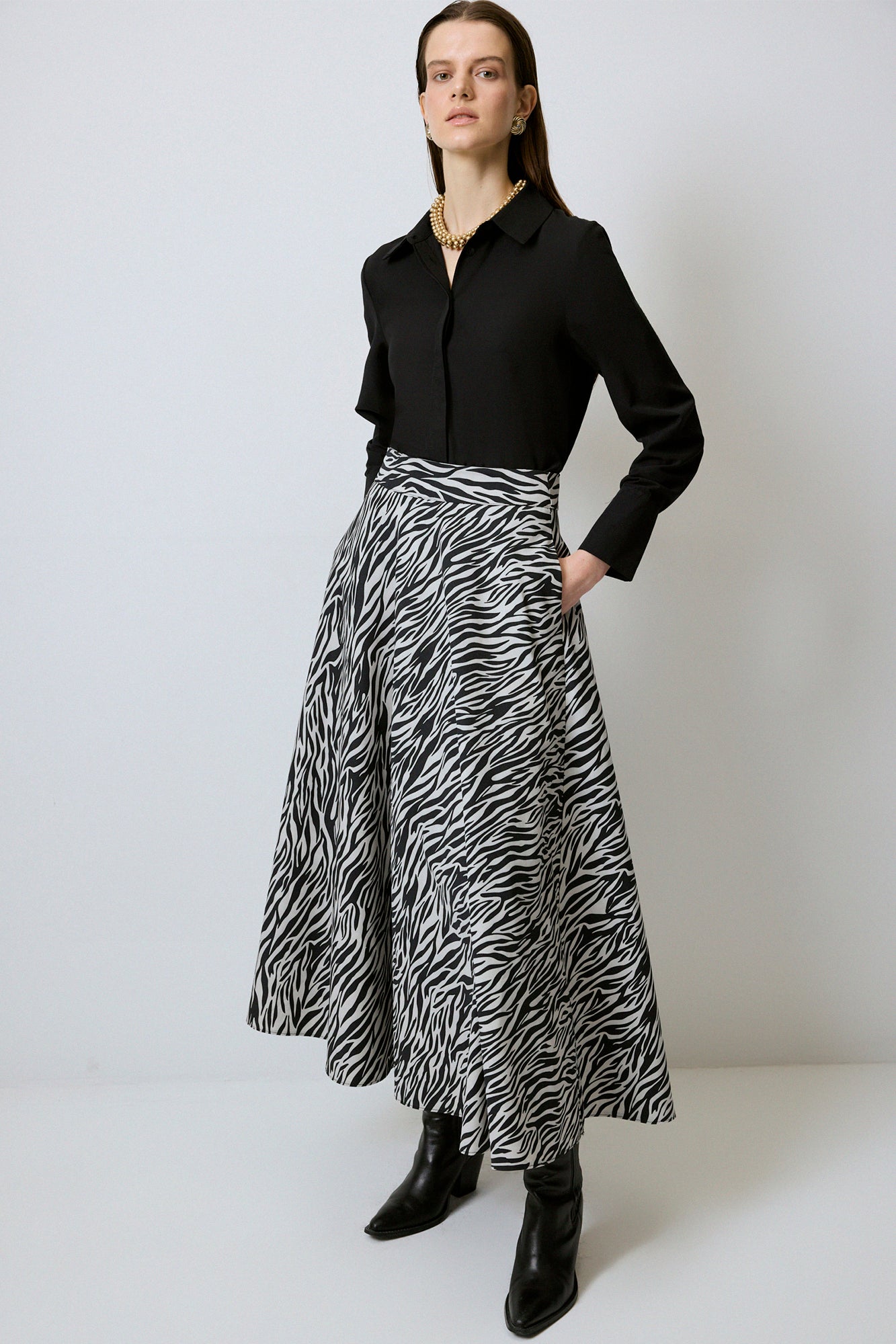 A CUT PATTERNED GABARDINE SKIRT