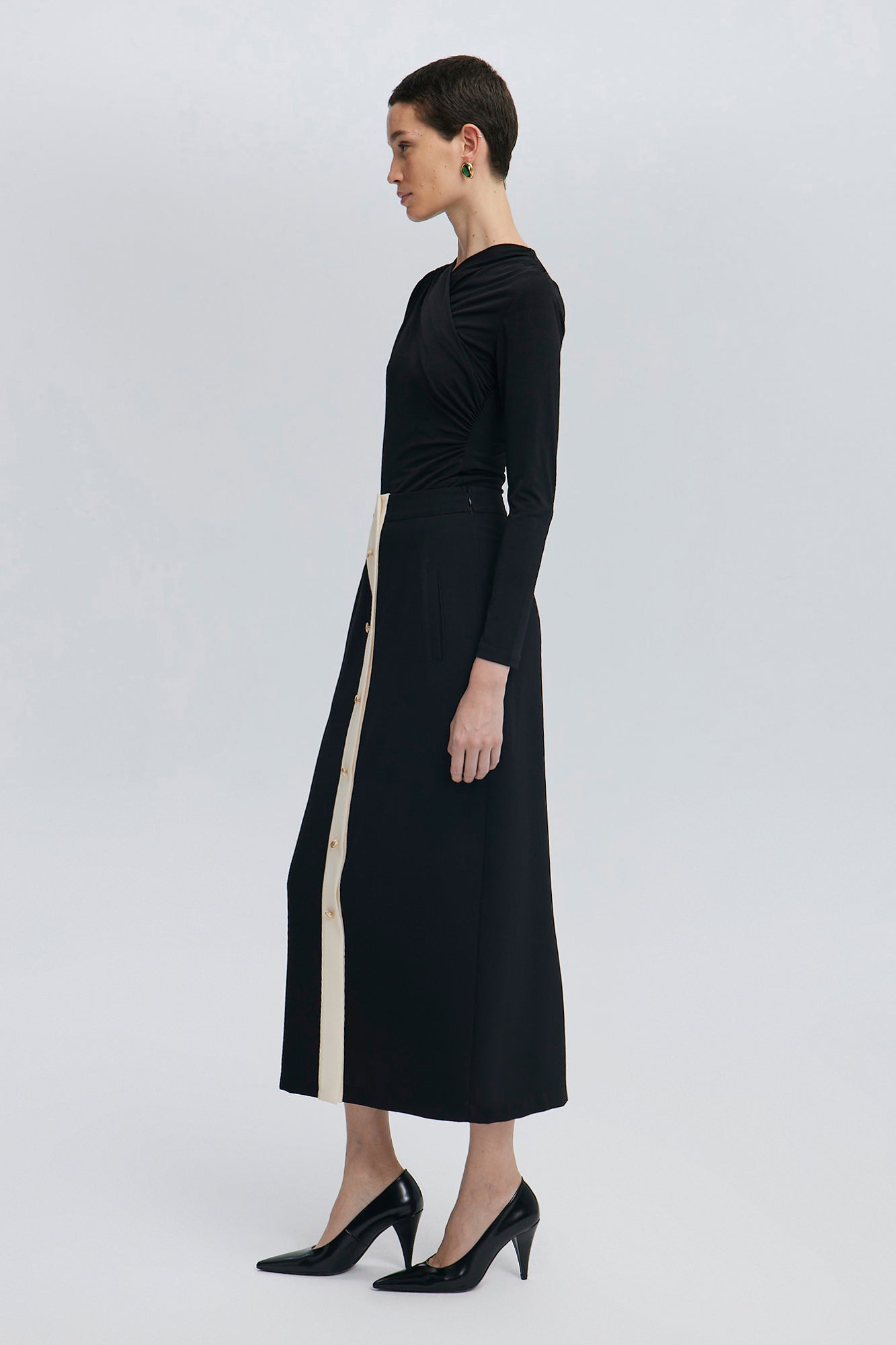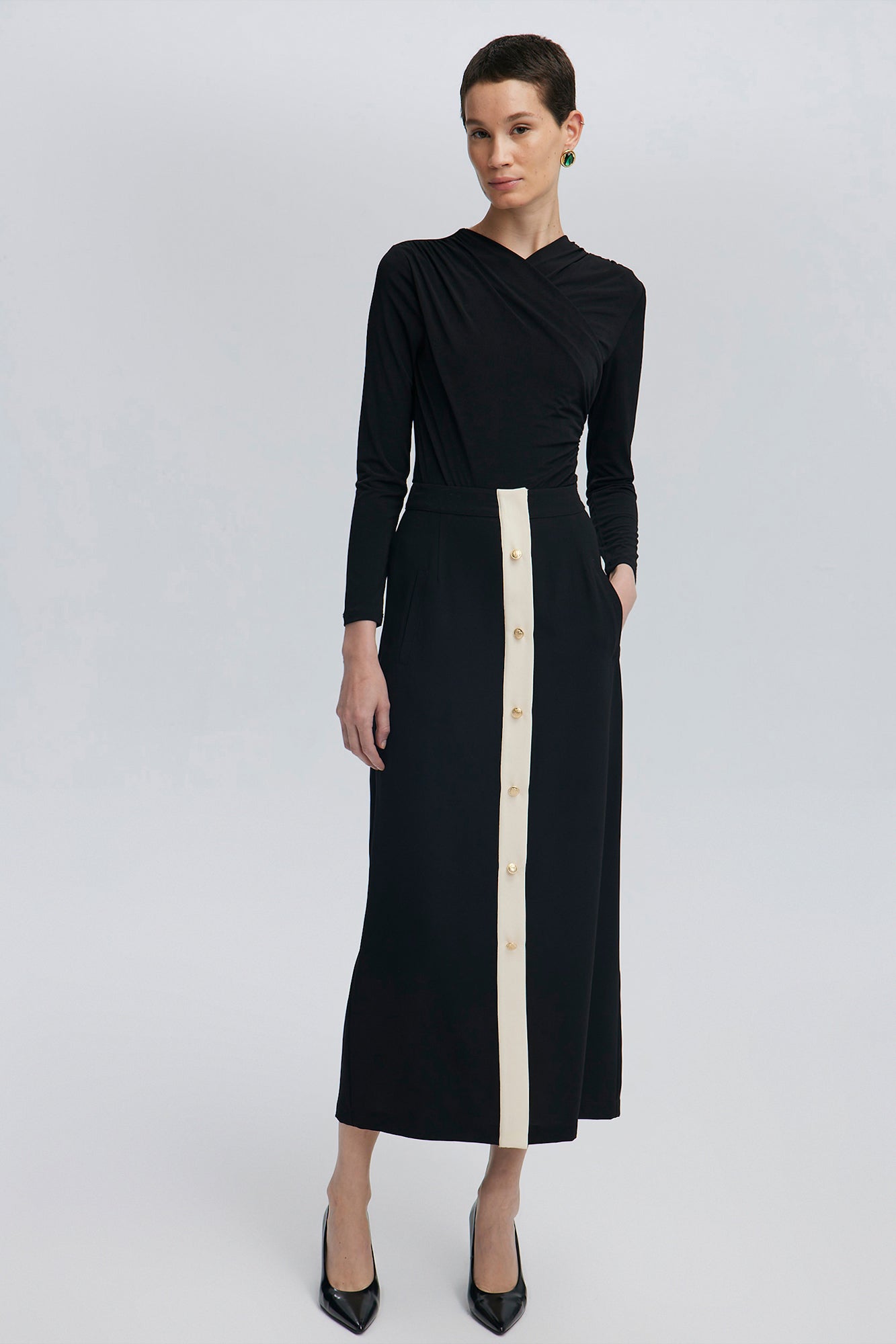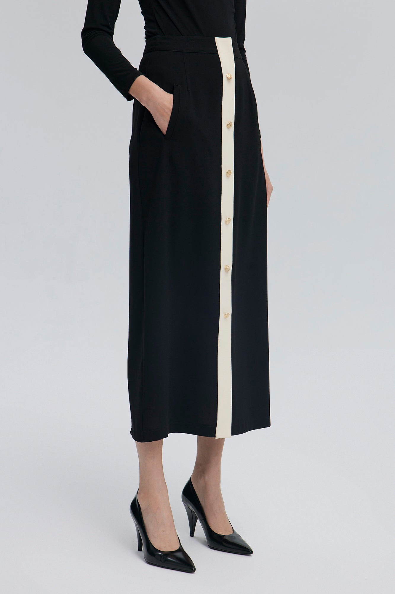 GOLD BUTTONED CREPE SKIRT
