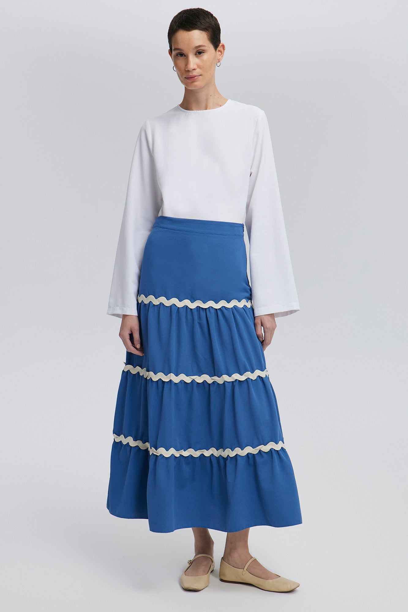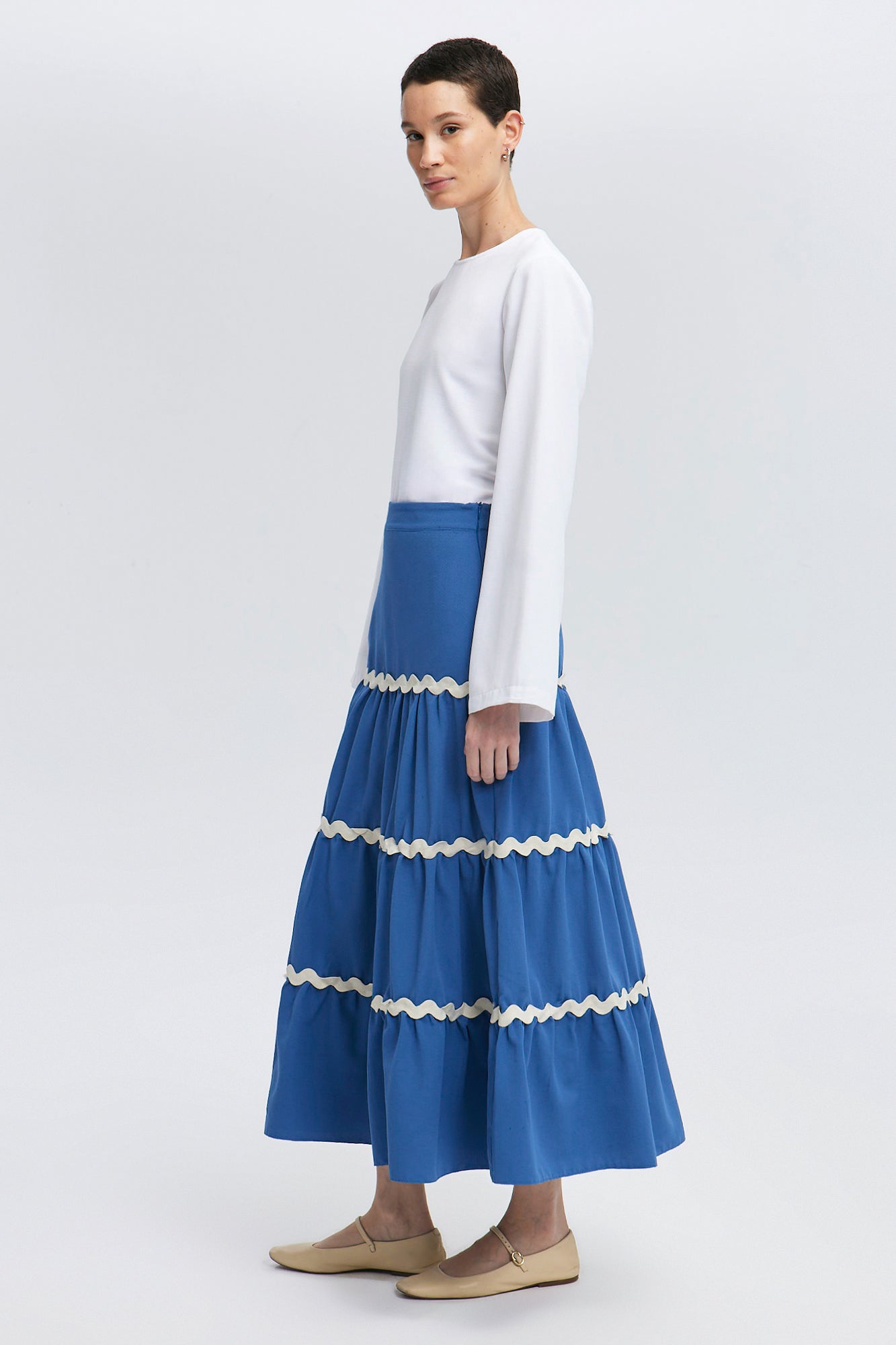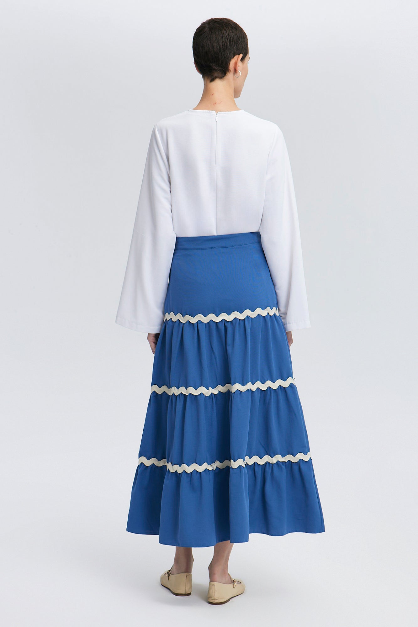 STRIPE DETAILED FLOUNCE SKIRT