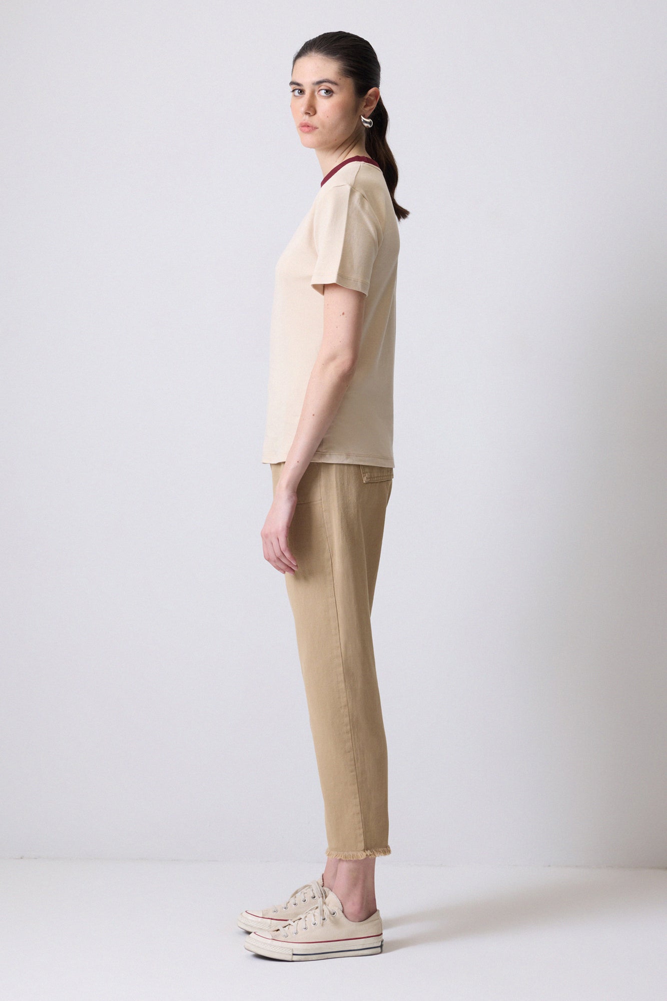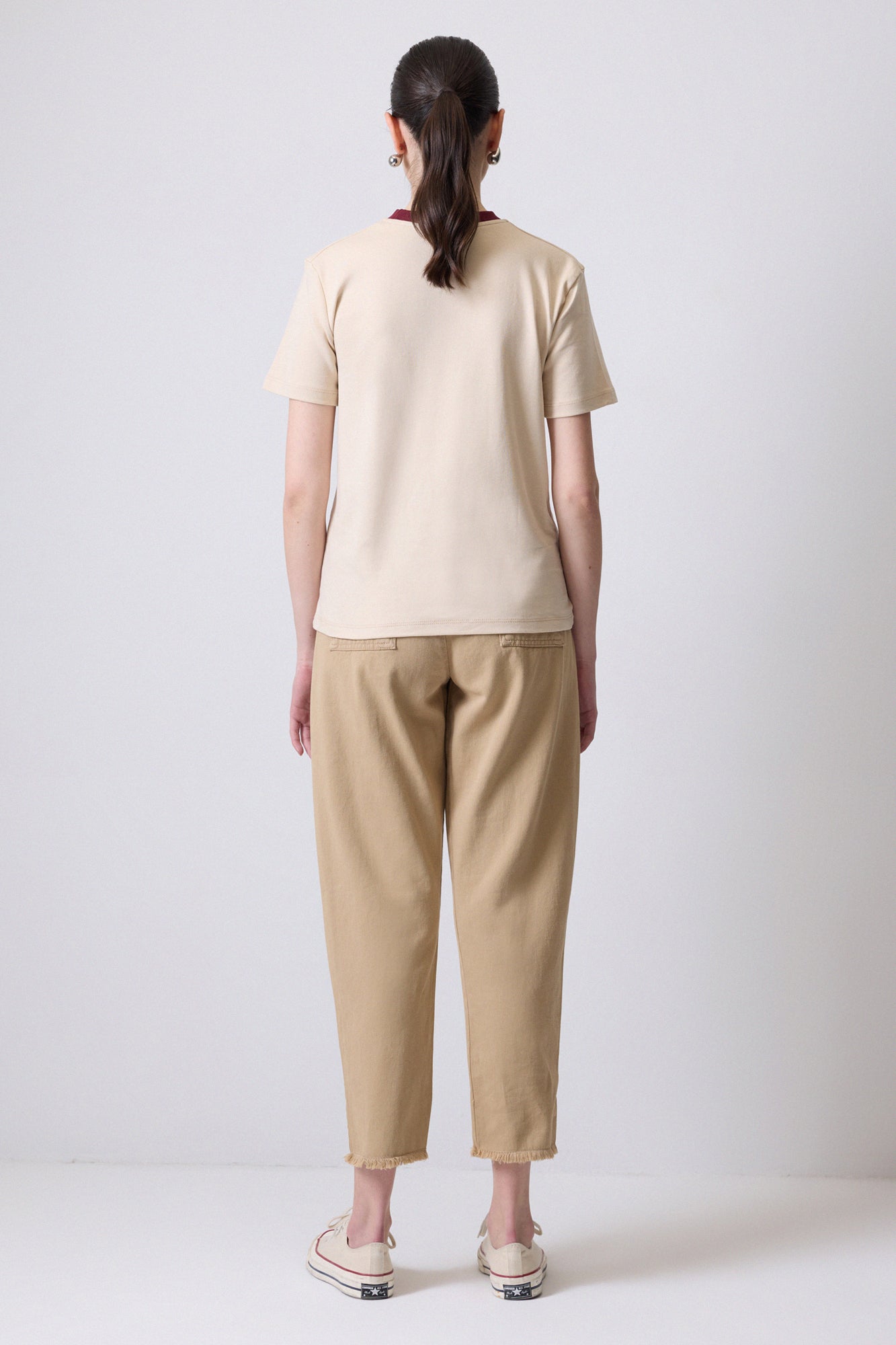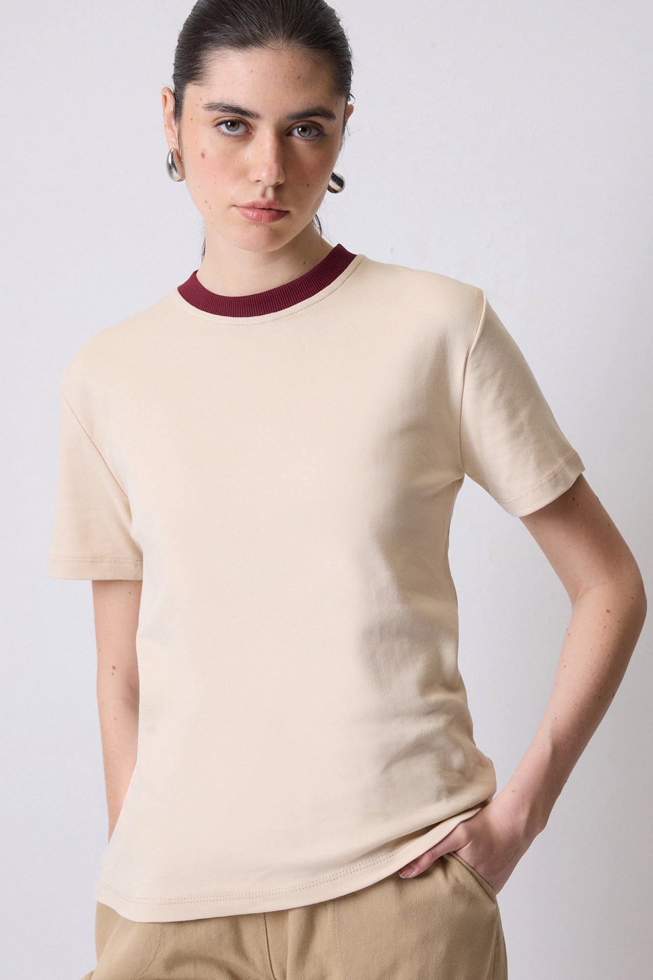 100% COTTON RIBBED COLLAR SHORT SLEEVE T-SHIRT