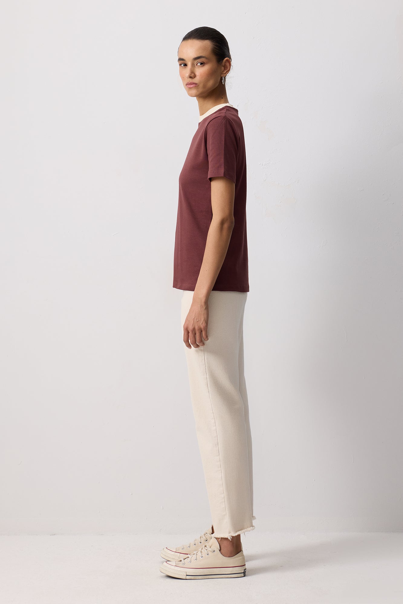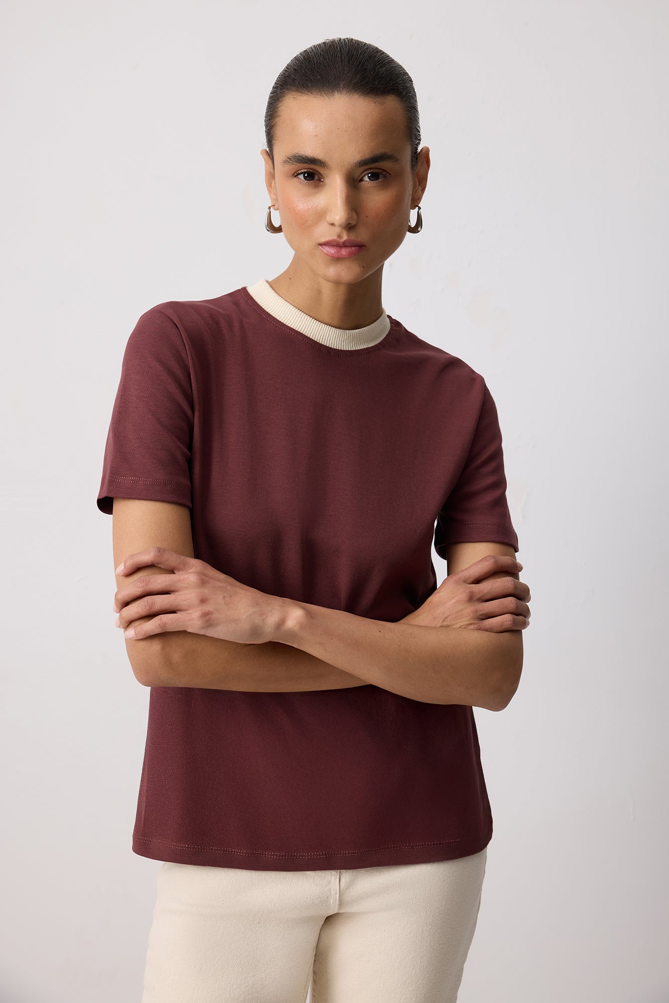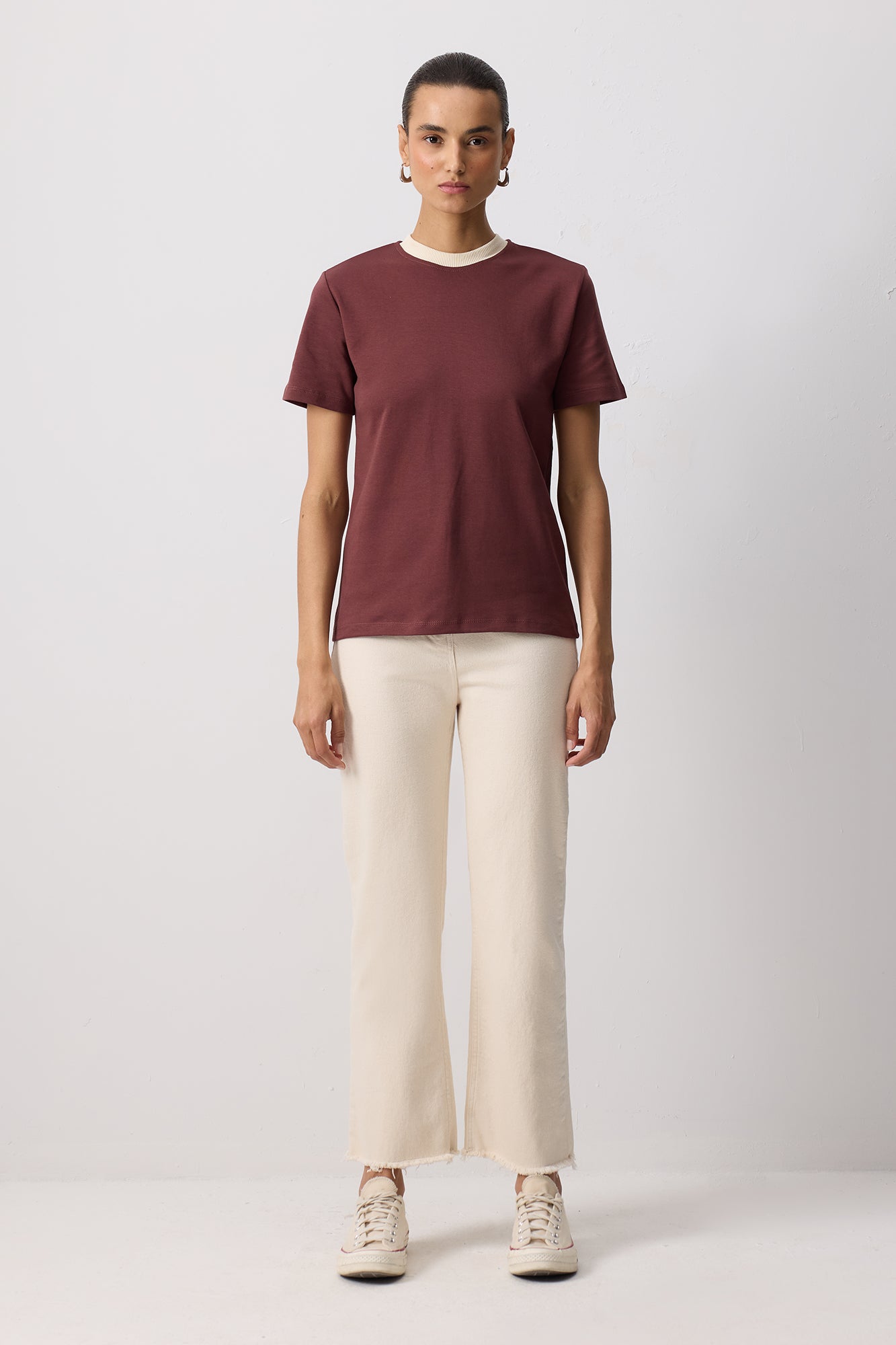 100% COTTON RIBBED COLLAR SHORT SLEEVE T-SHIRT