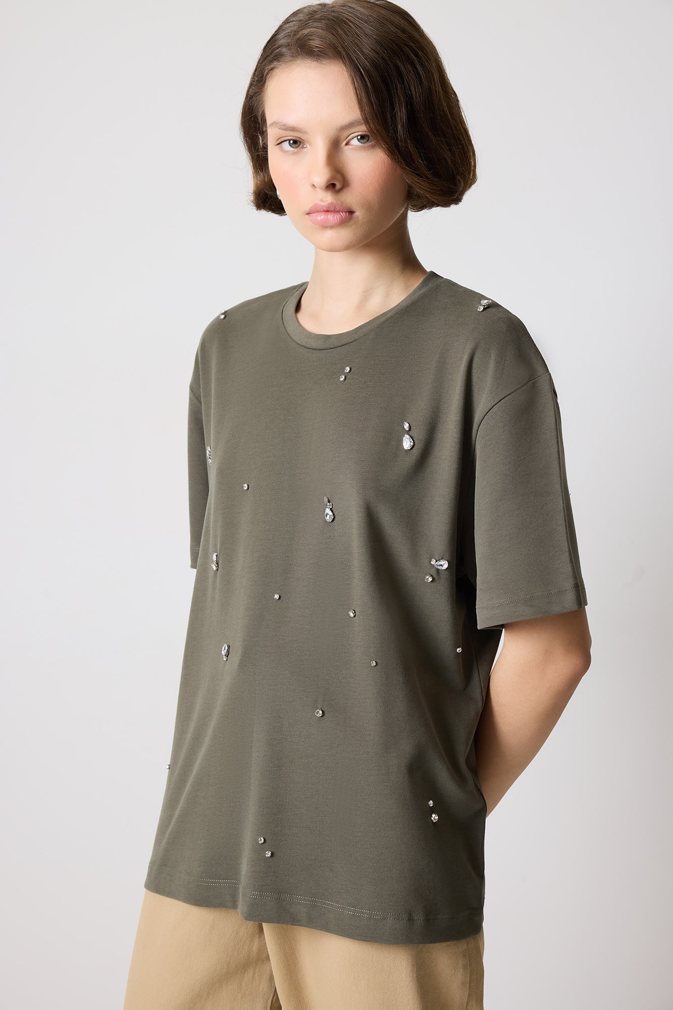 STONE EMBELLISHED OVERSIZE T-SHIRT