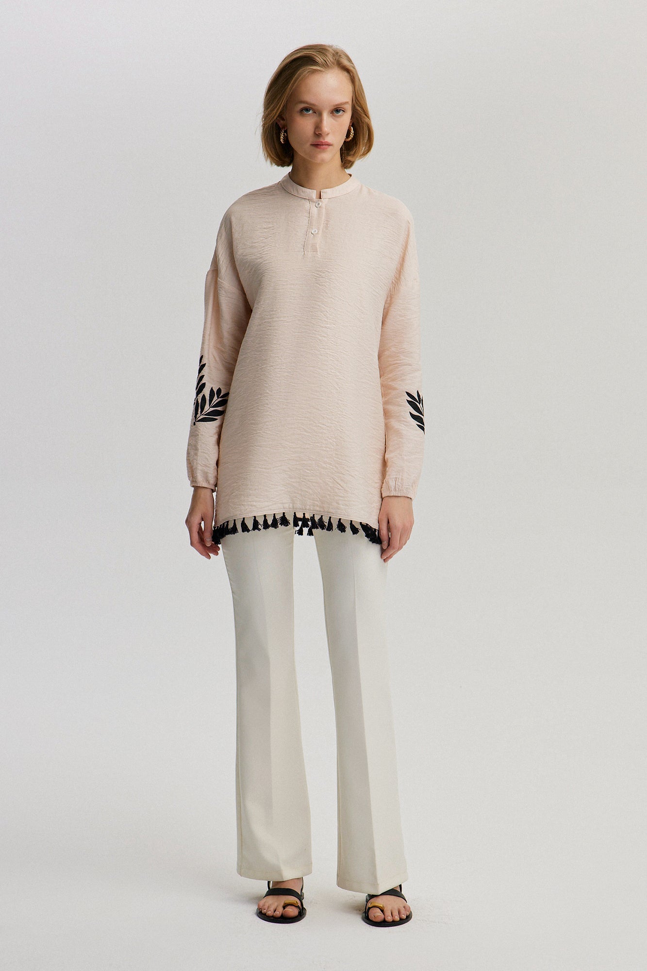 LEAF PATTERNED TASSEL DETAILED TUNIC