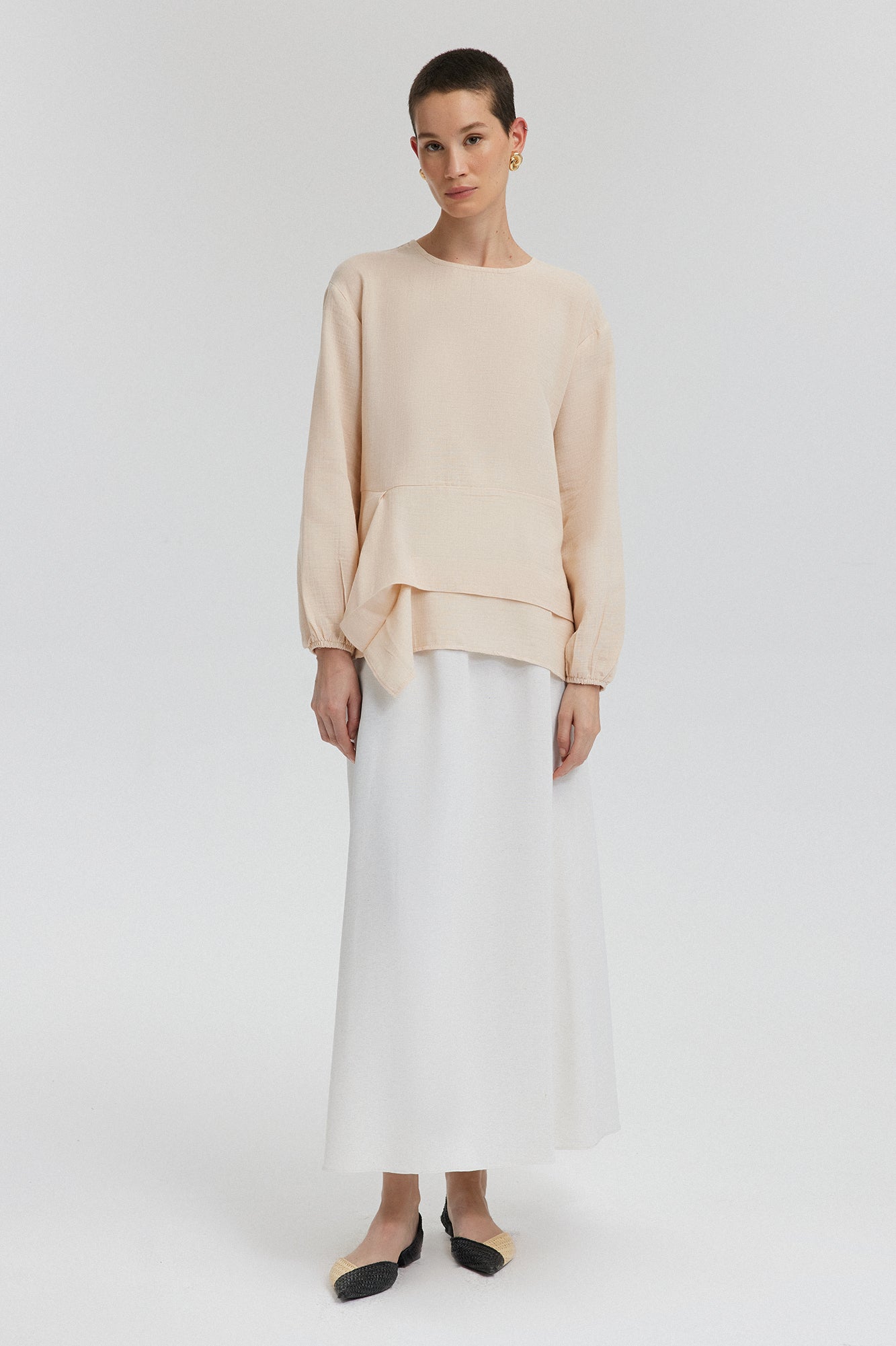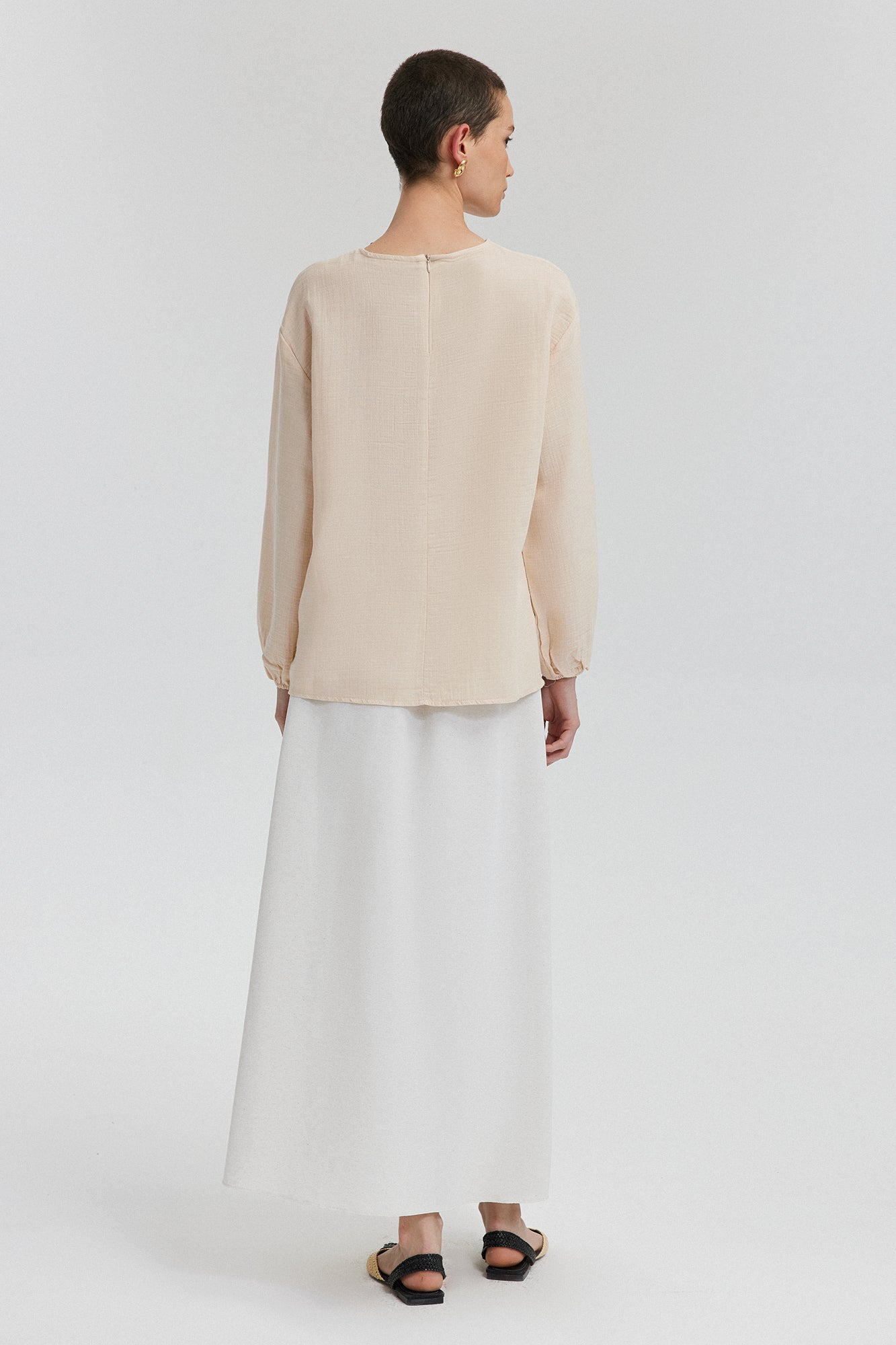 MUSLIN TUNIC WITH ELASTIC SLEEVE
