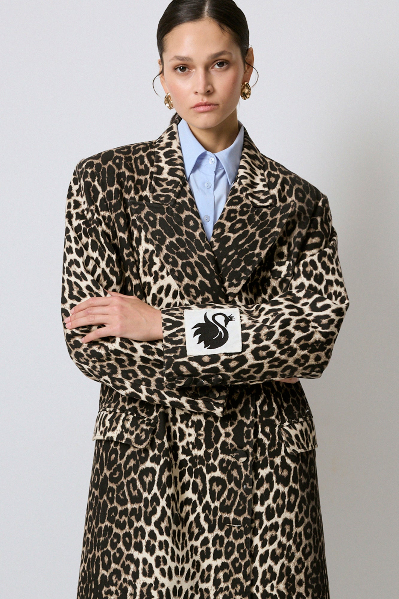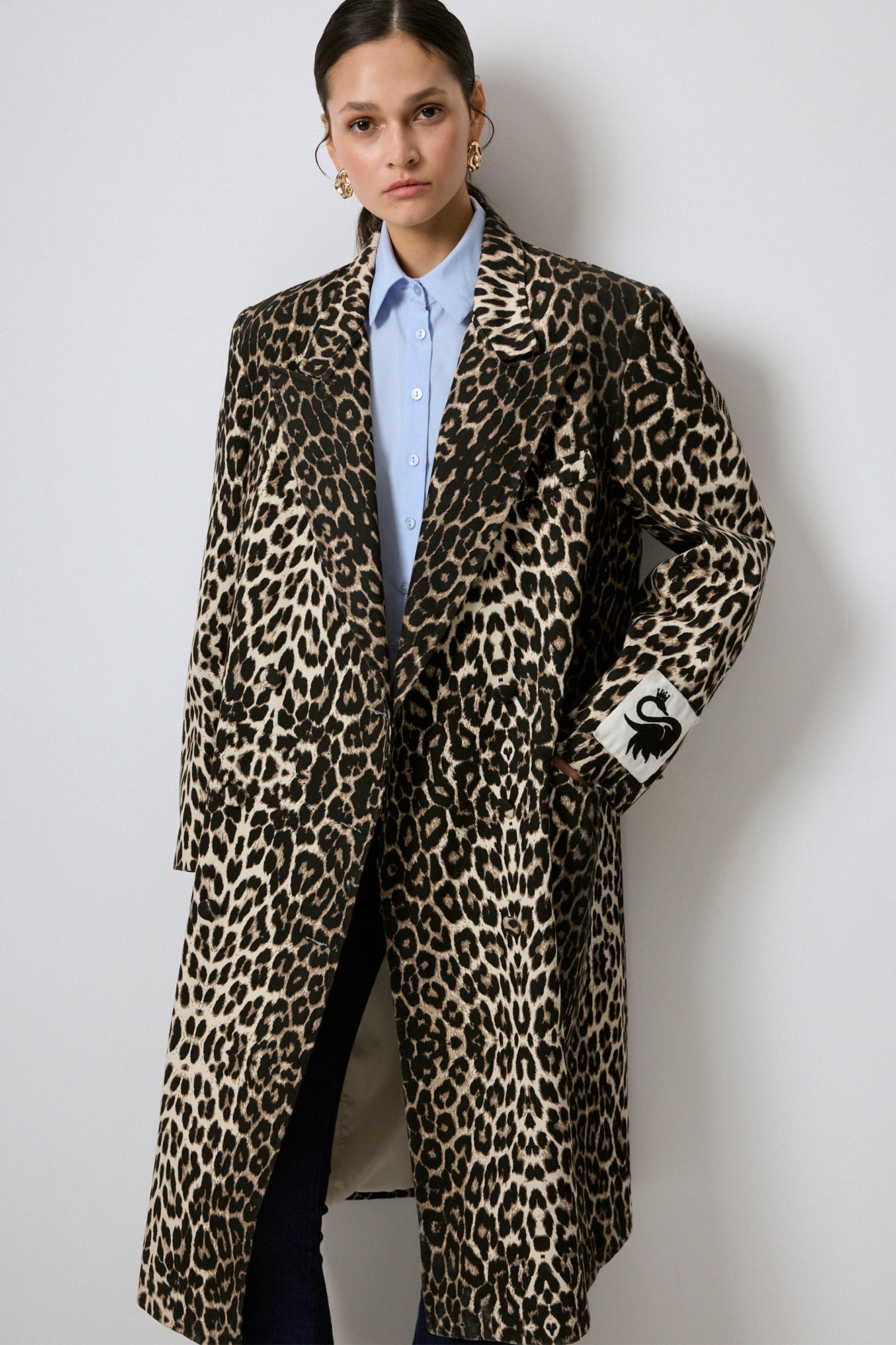 100% COTTON LEOPARD PATTERNED LONG JACKET