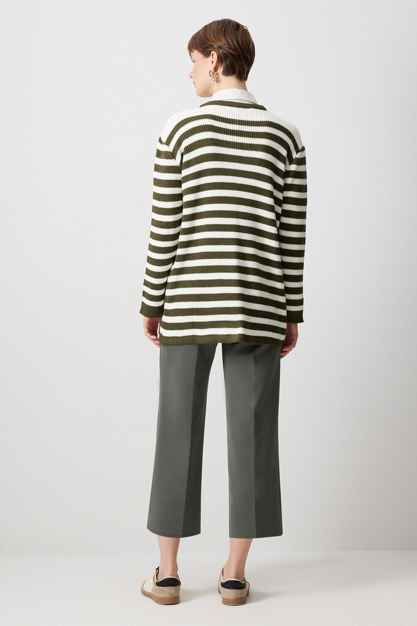 STRIPED LONG CARDIGAN WITH GOLD BUTTONS