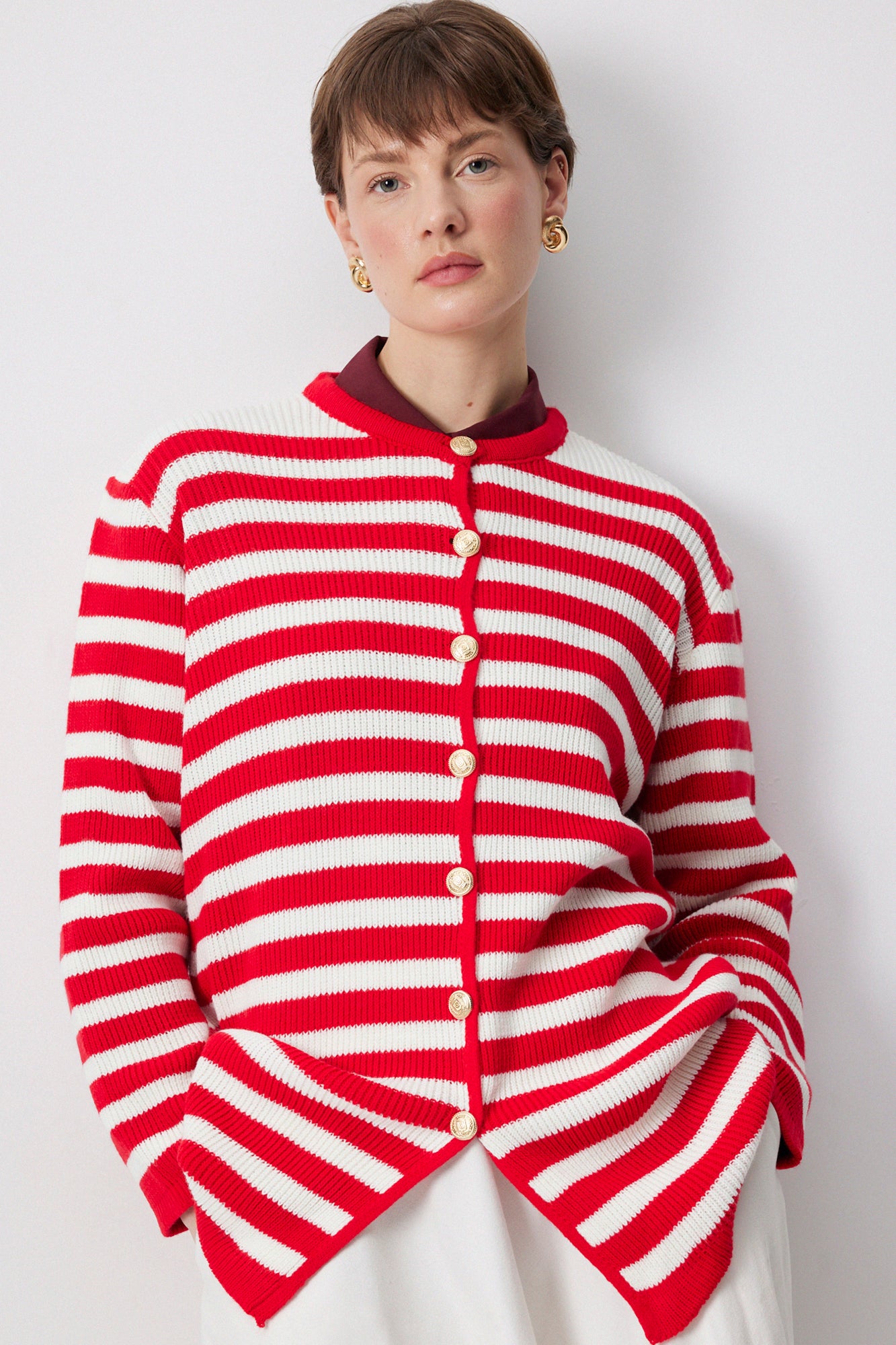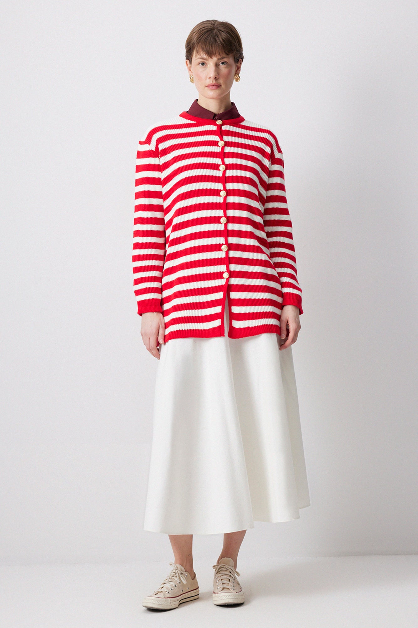 STRIPED LONG CARDIGAN WITH GOLD BUTTONS