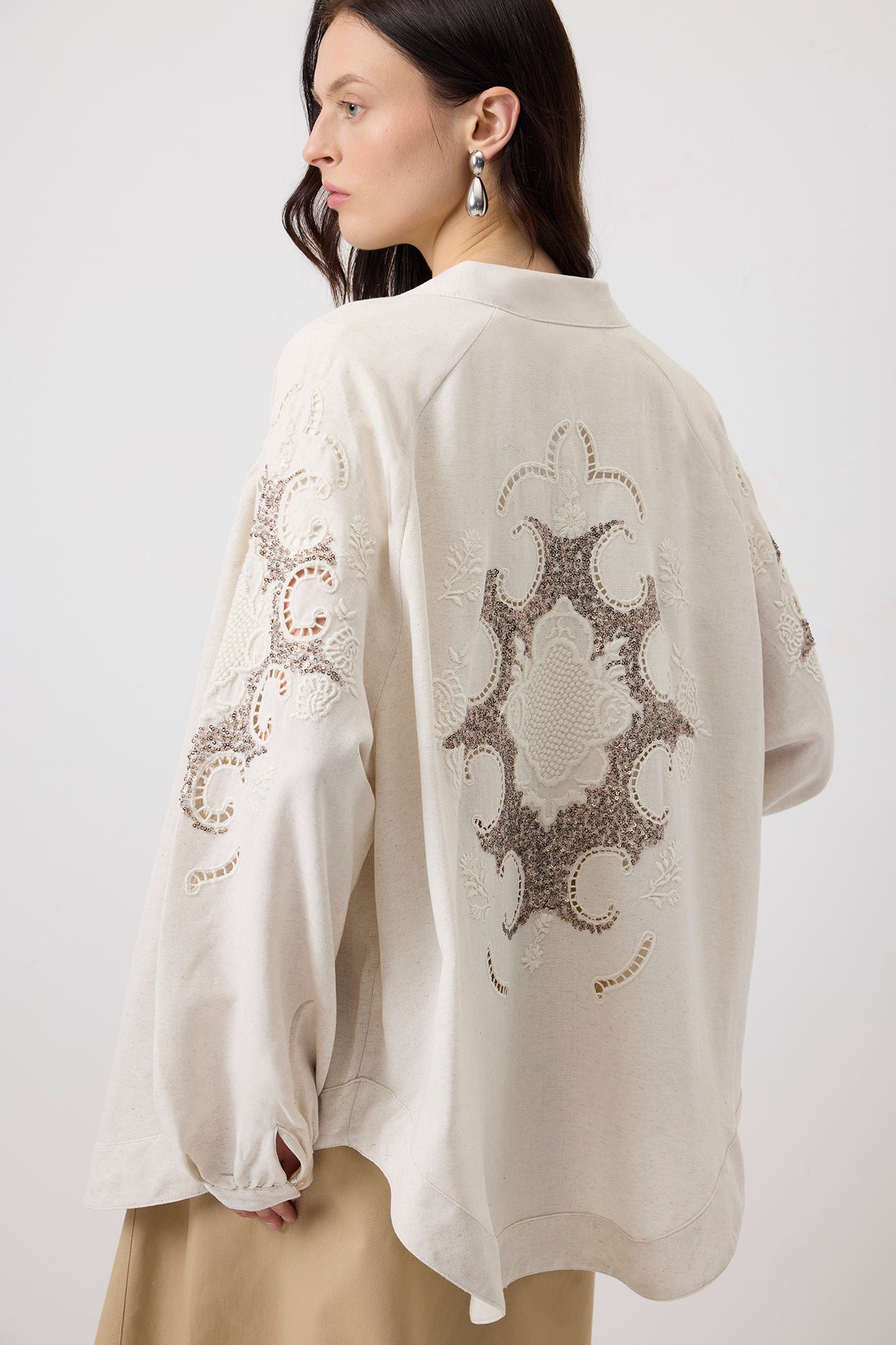 LINEN TEXTURED KIMONO WITH SEQUIN DETAILS