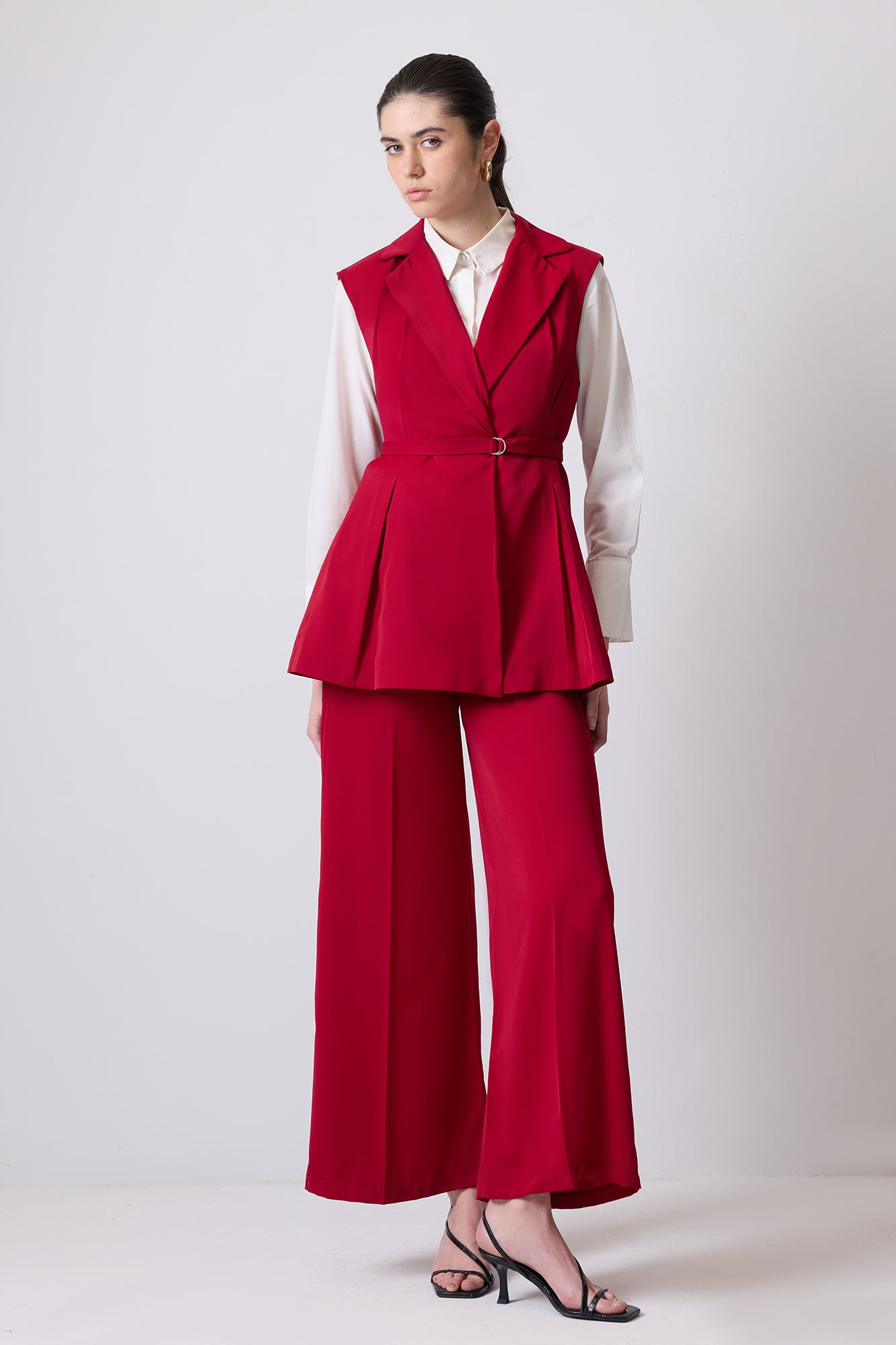 PLEATED DOUBLE BREASTED VEST PANTS SET
