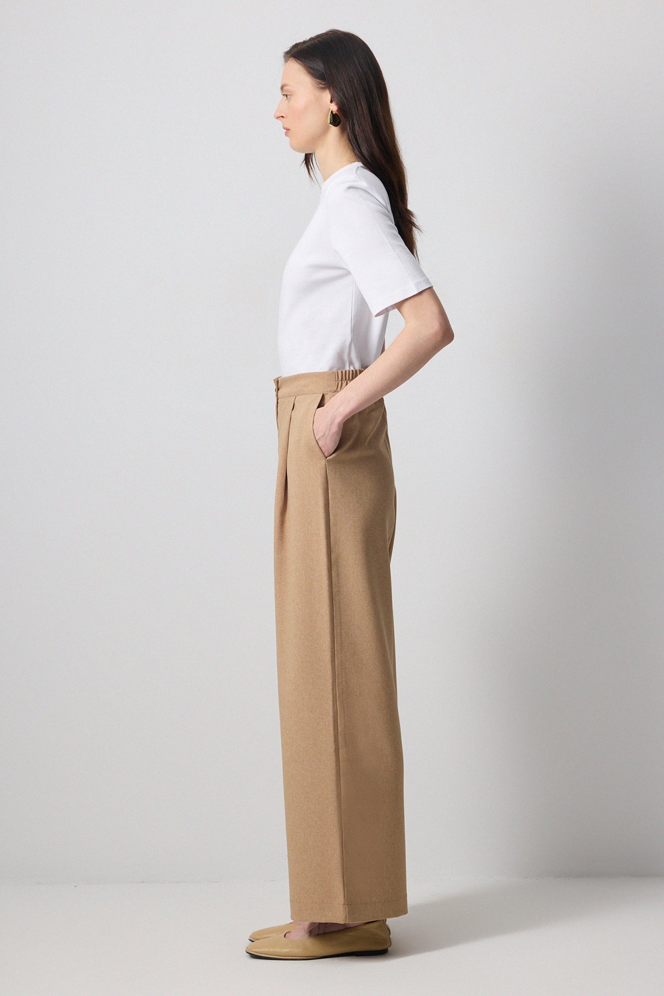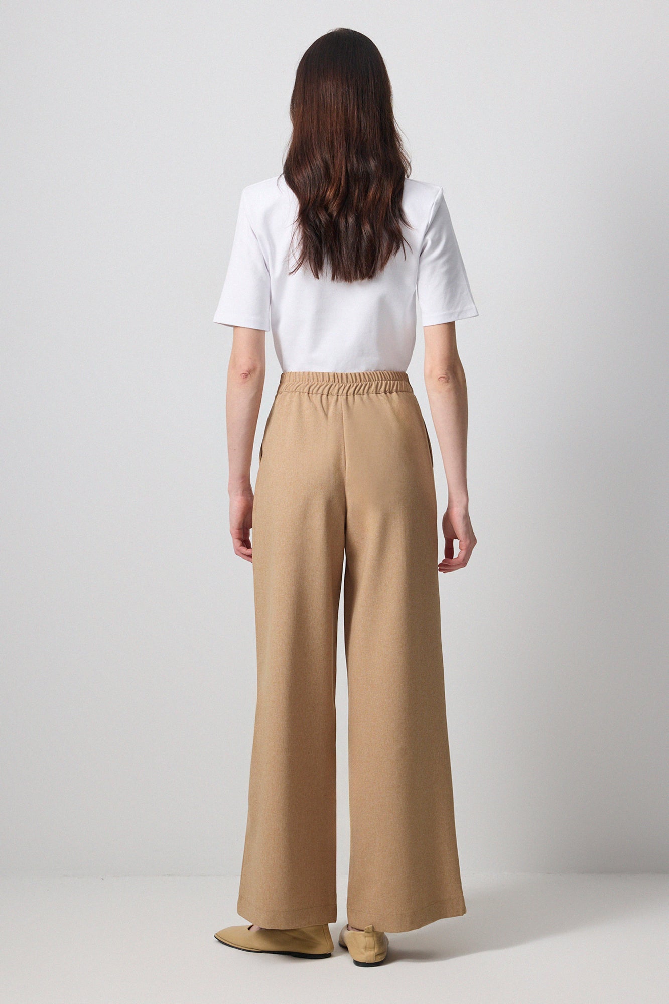 PLEATED TROUSERS WITH ELASTICATED WAITS