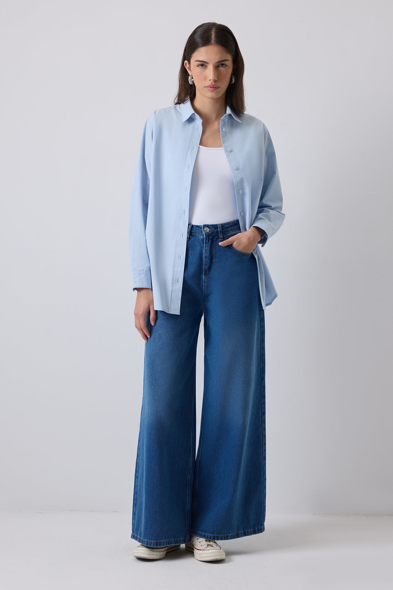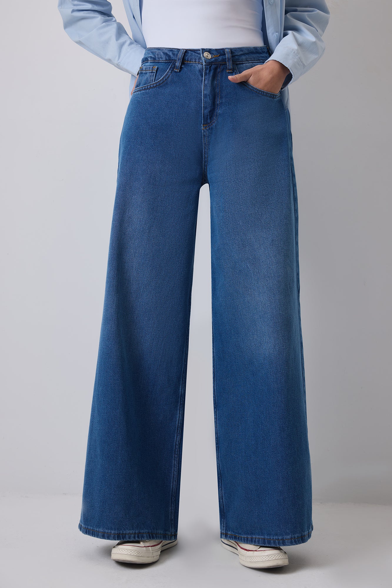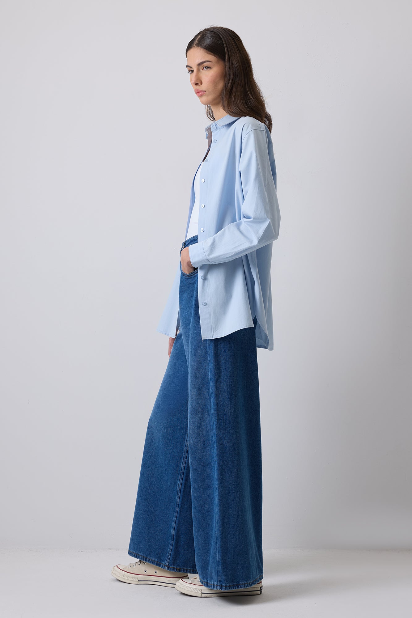 WIDE LEG DENIM TROUSERS