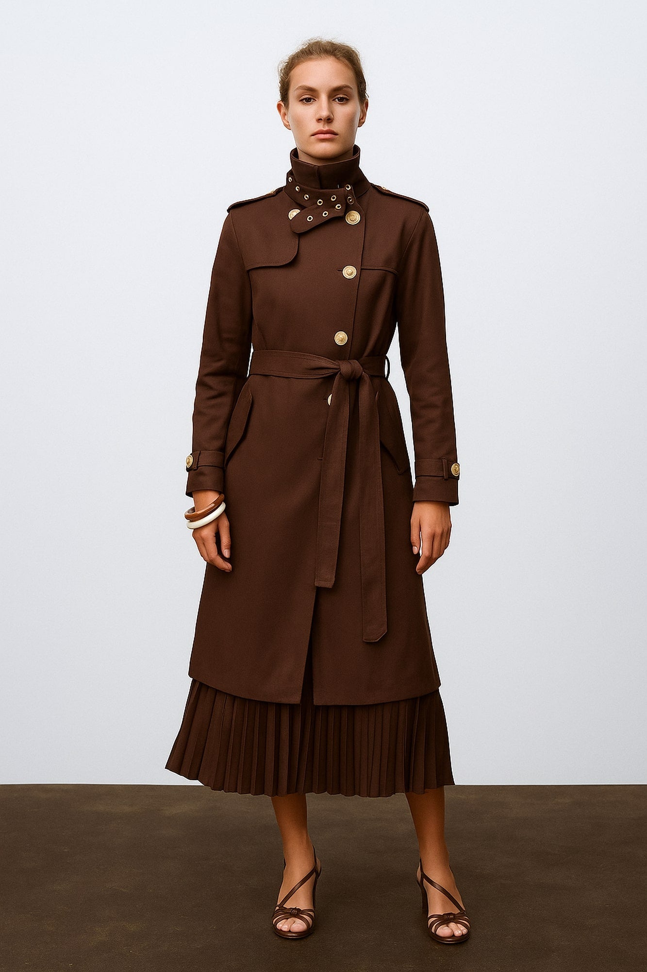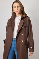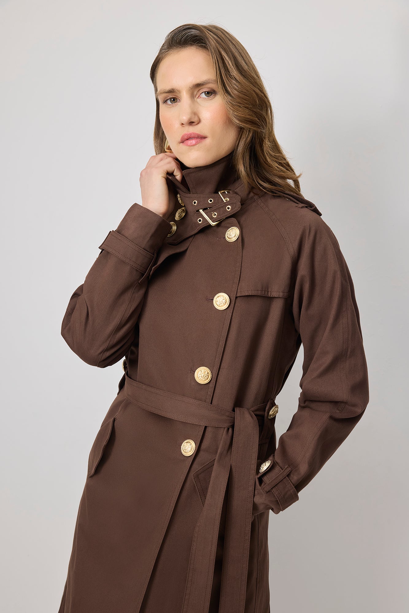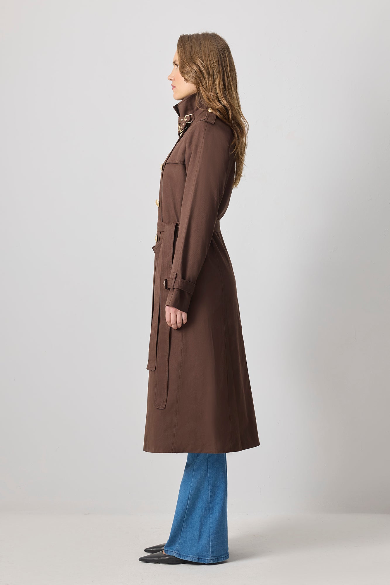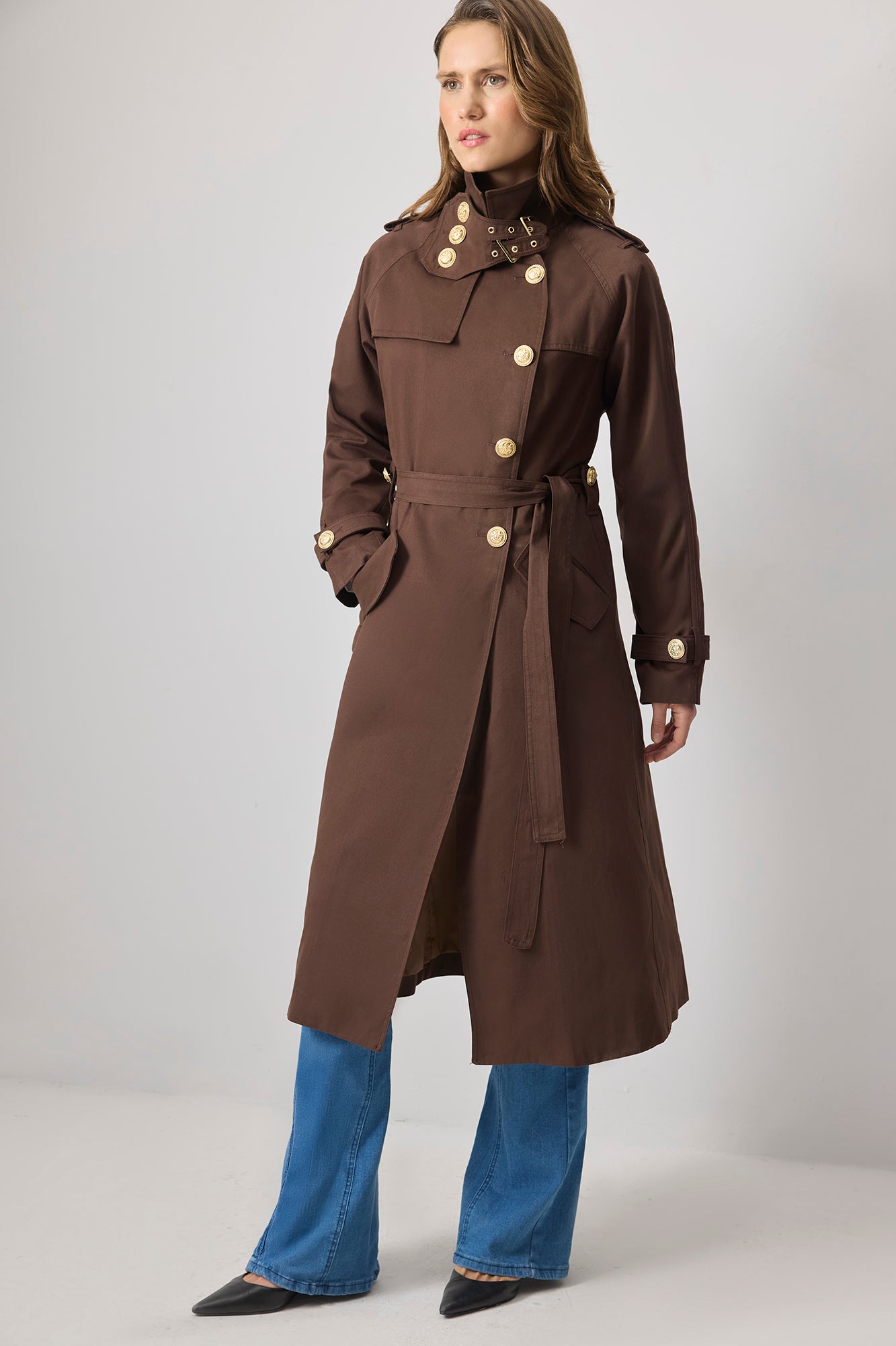 BELTED GOLD BUTTON DOUBLE BREASTED TRENCH COAT