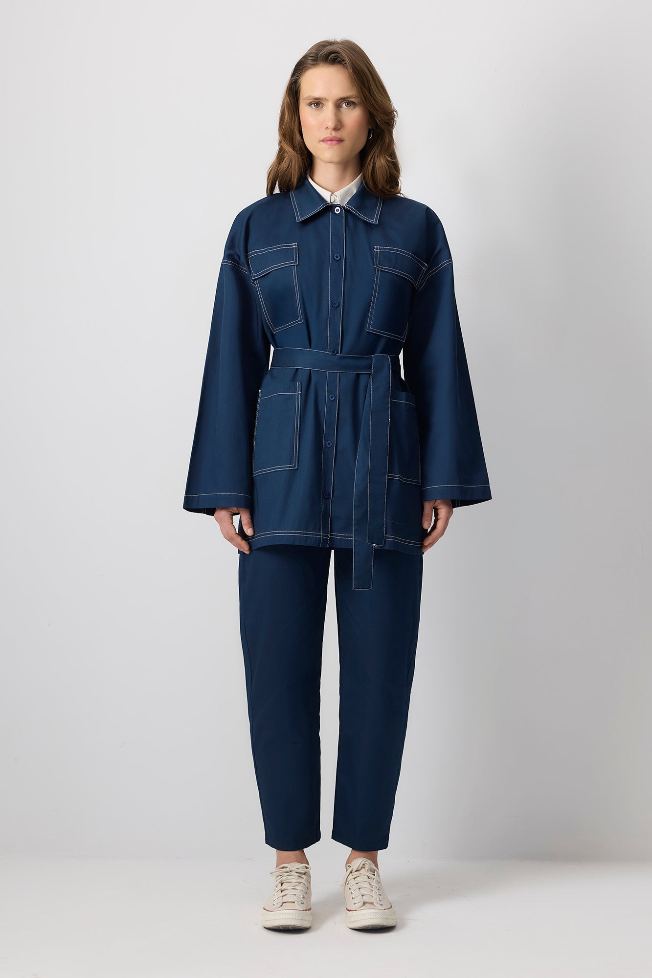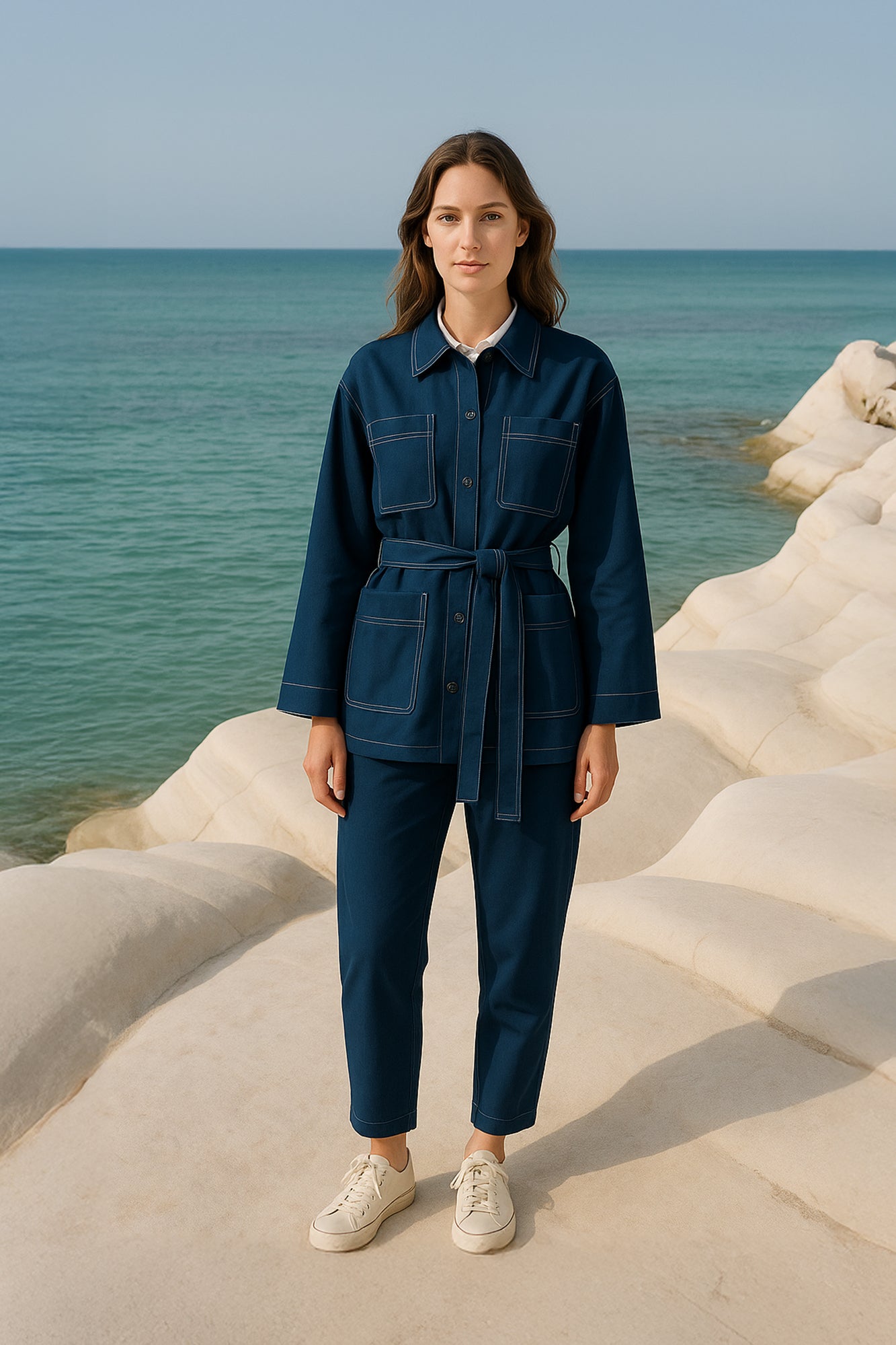 100% COTTON CONTRAST STITCHED JACKET PANTS SET