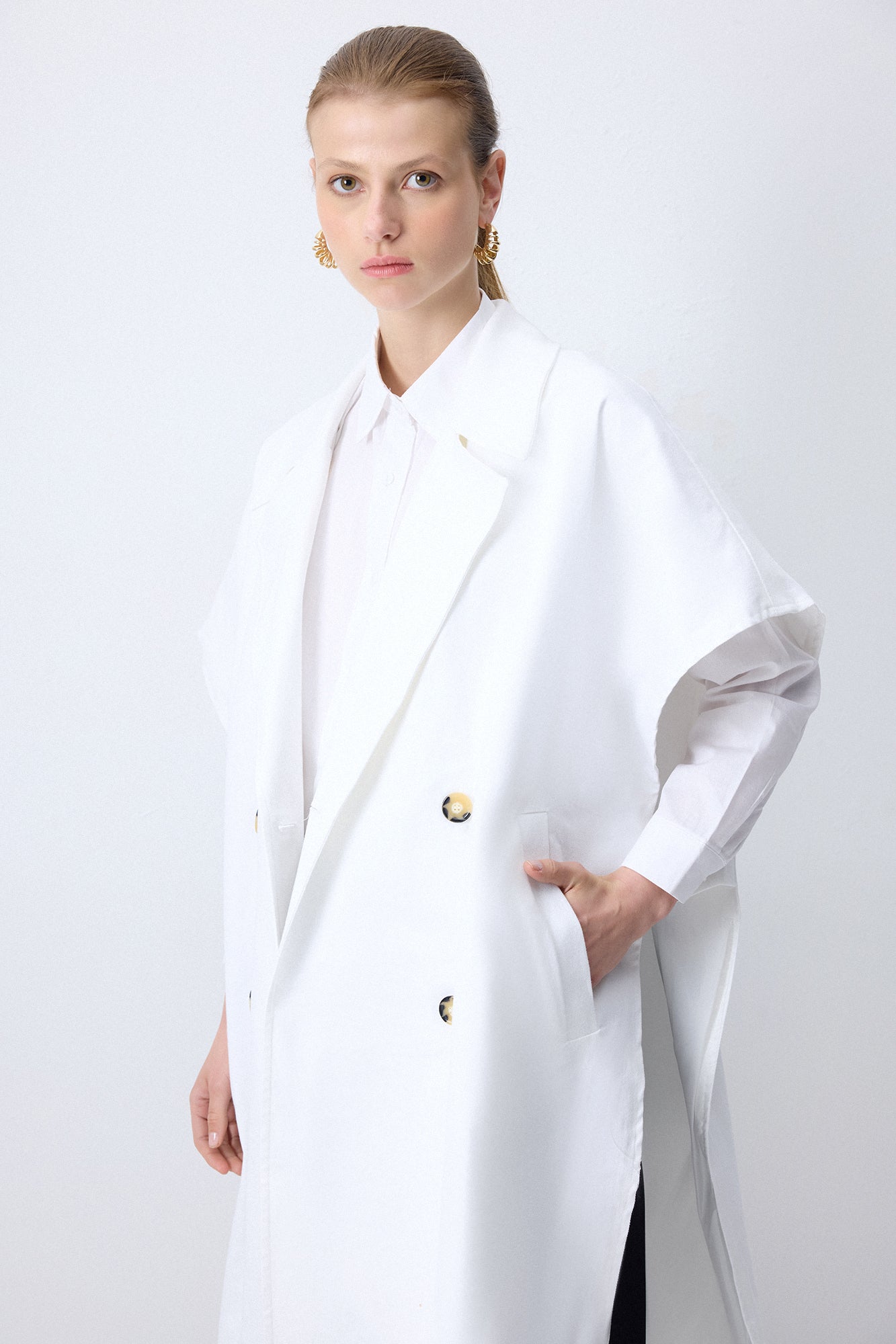 DOUBLE BREASTED GABARDINE TRENCH VEST