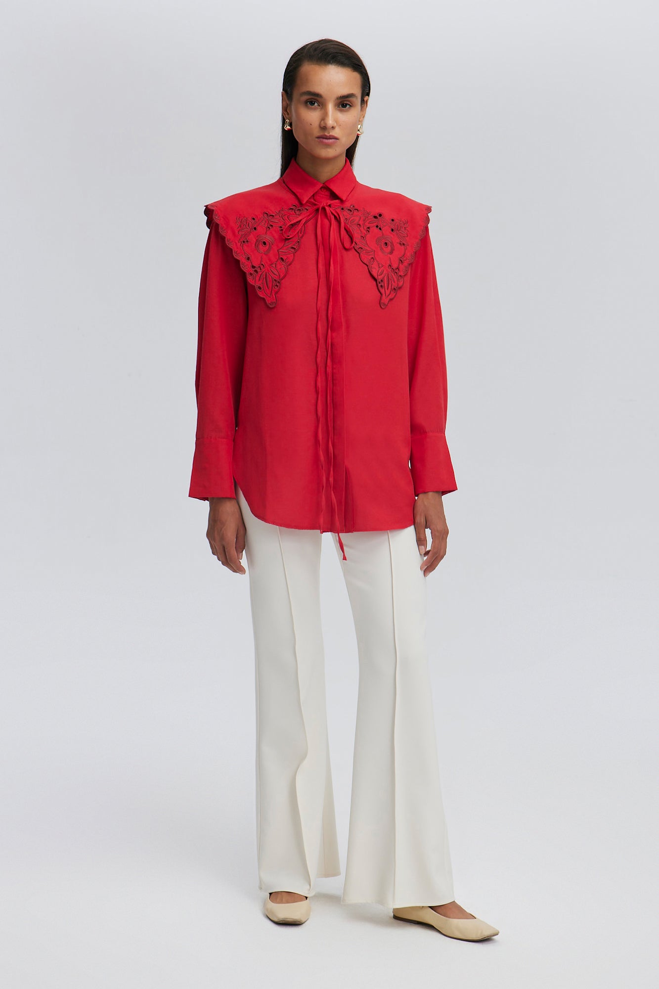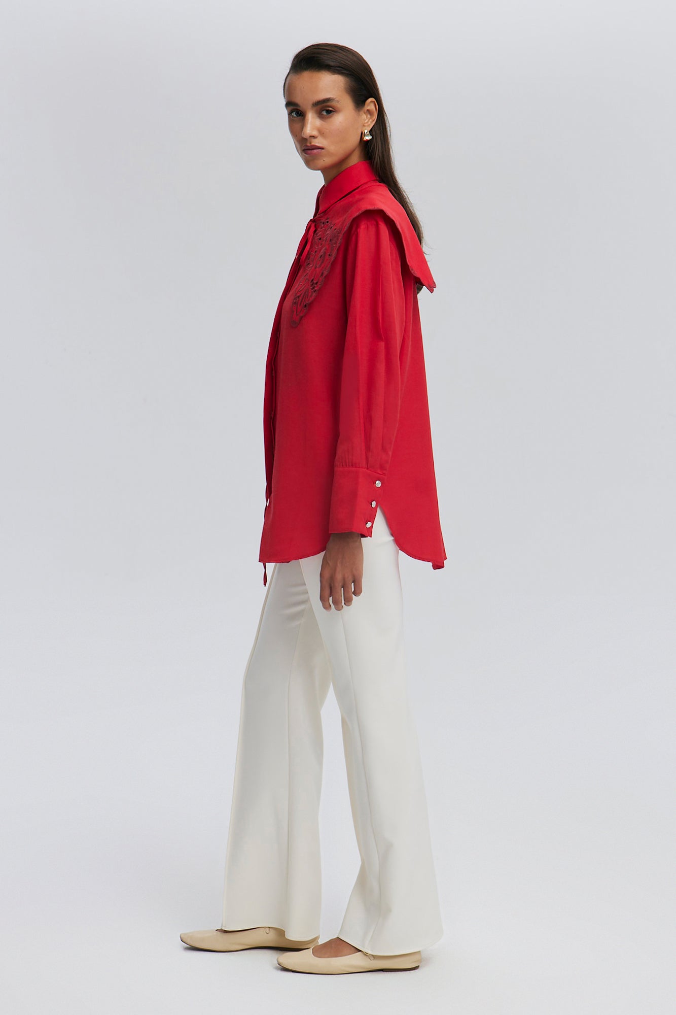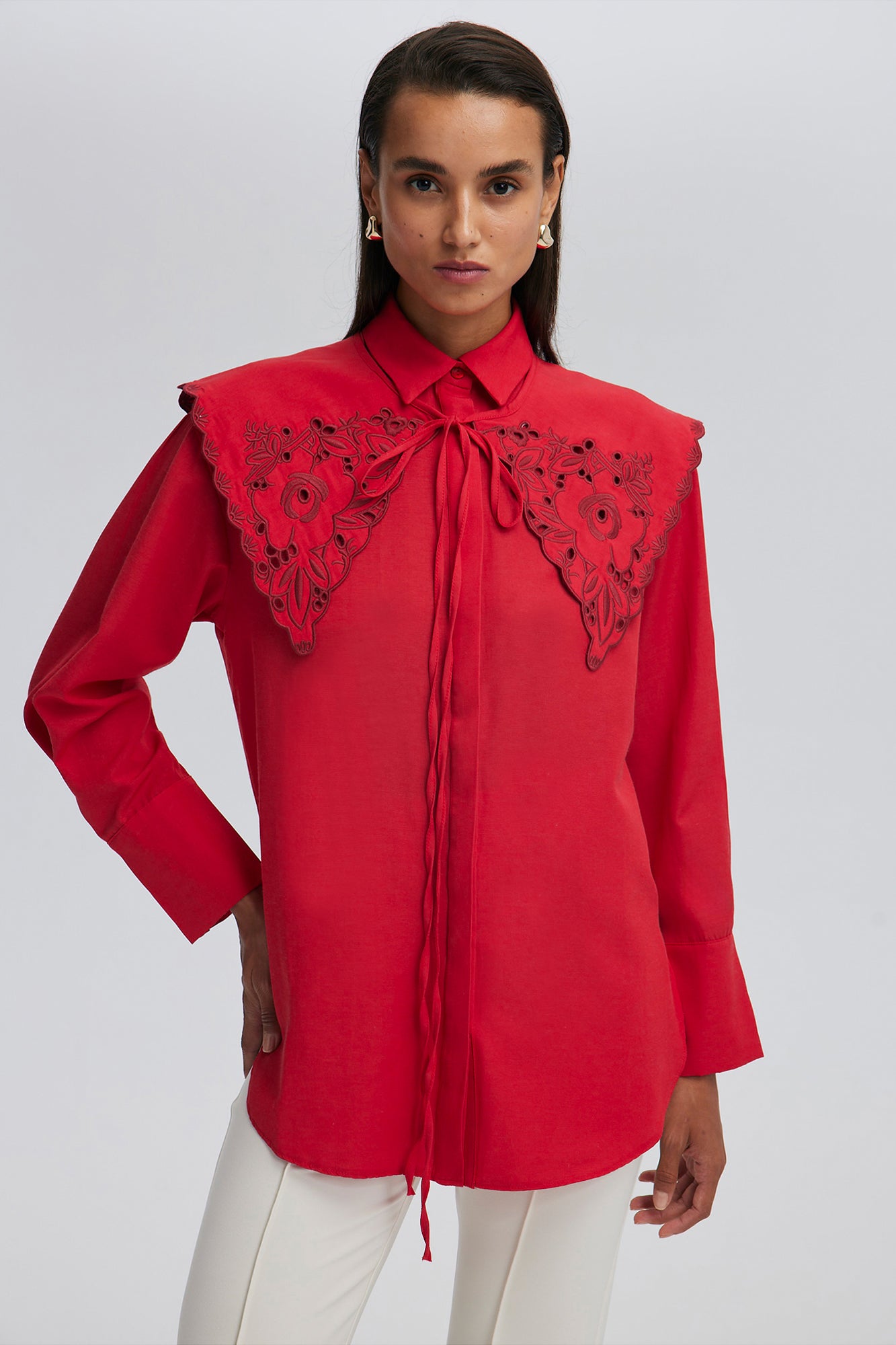 EMBROIDERY DETAILED WIDE COLLAR SHIRT