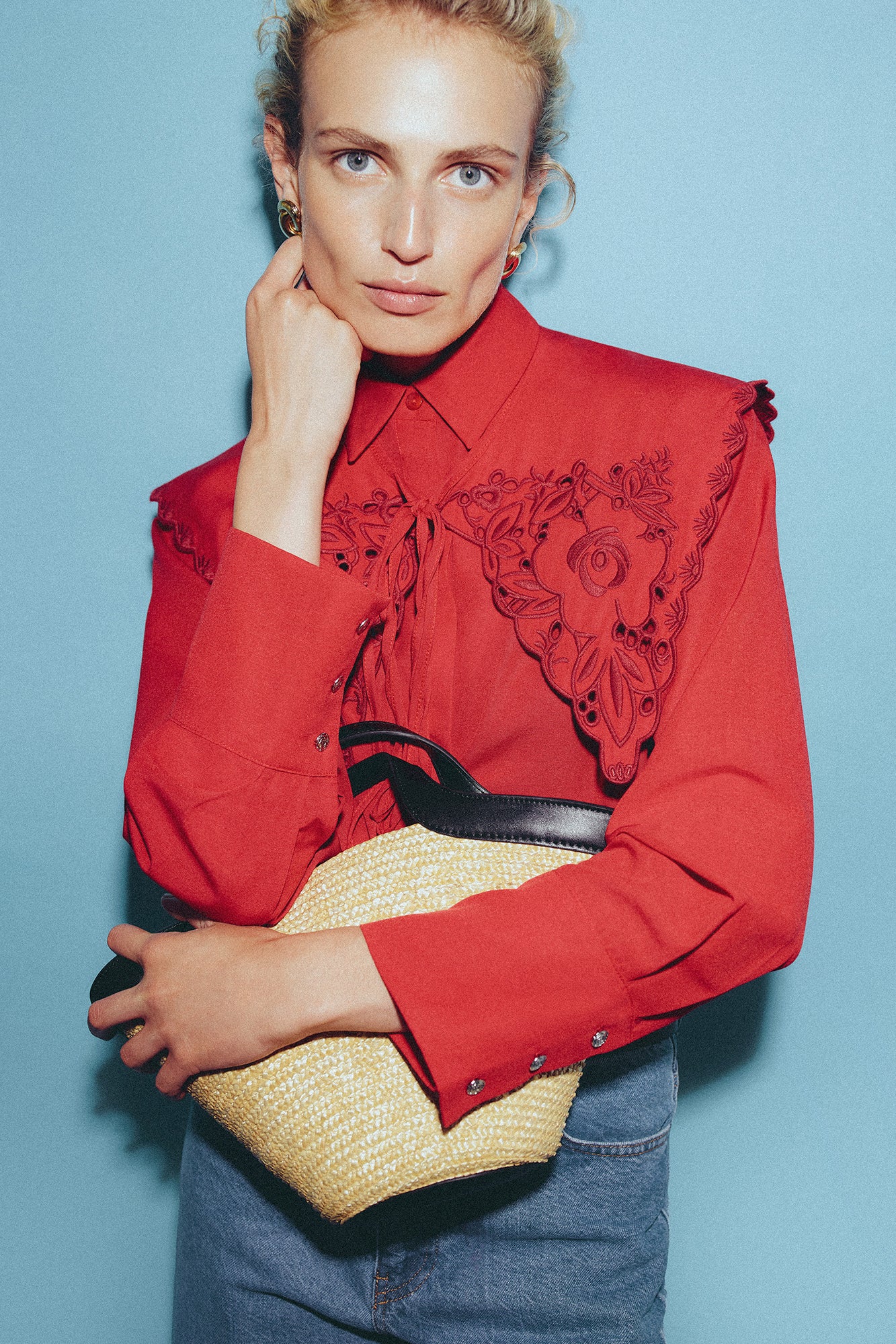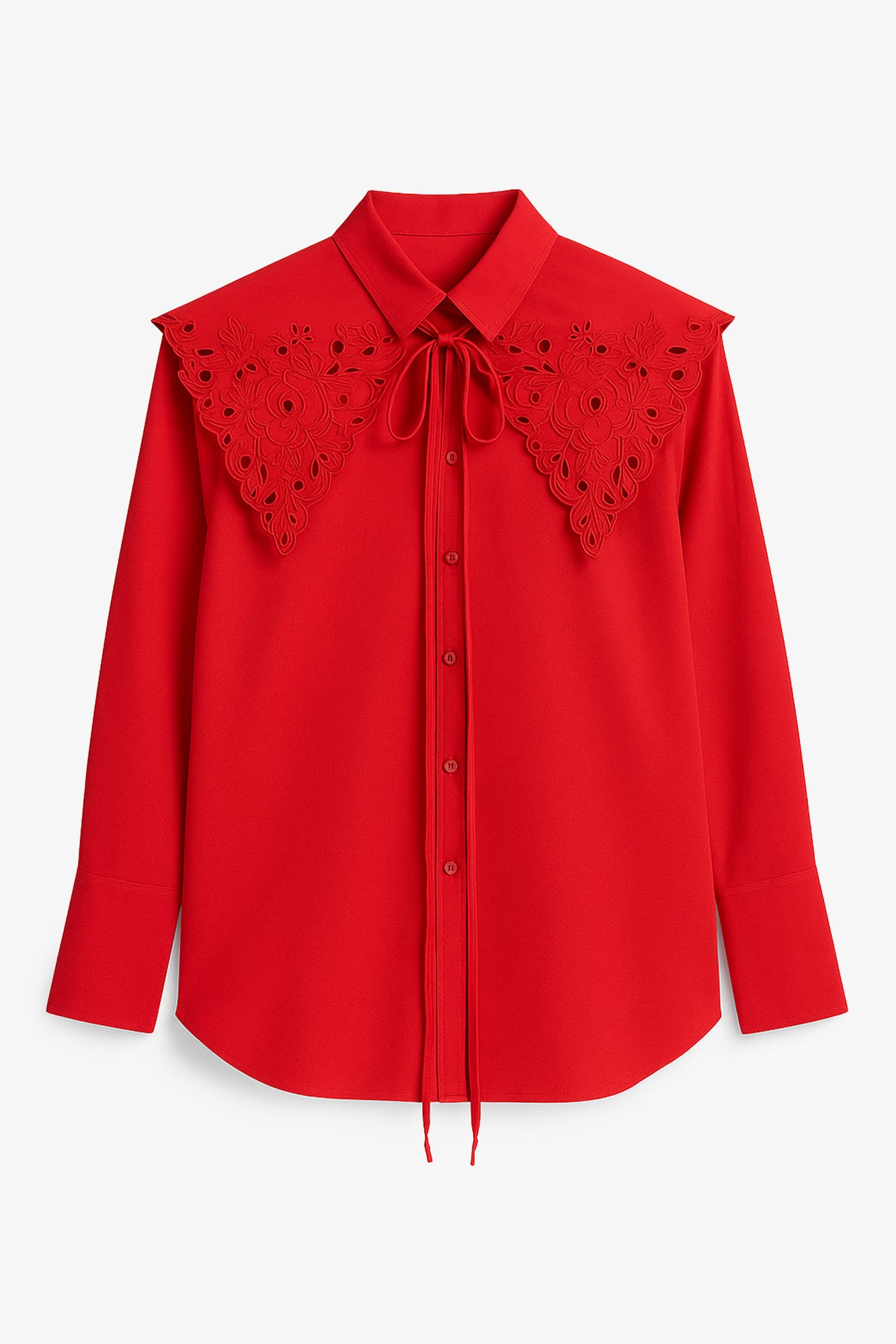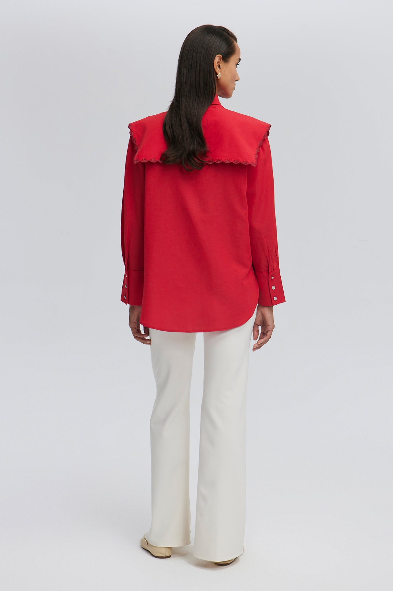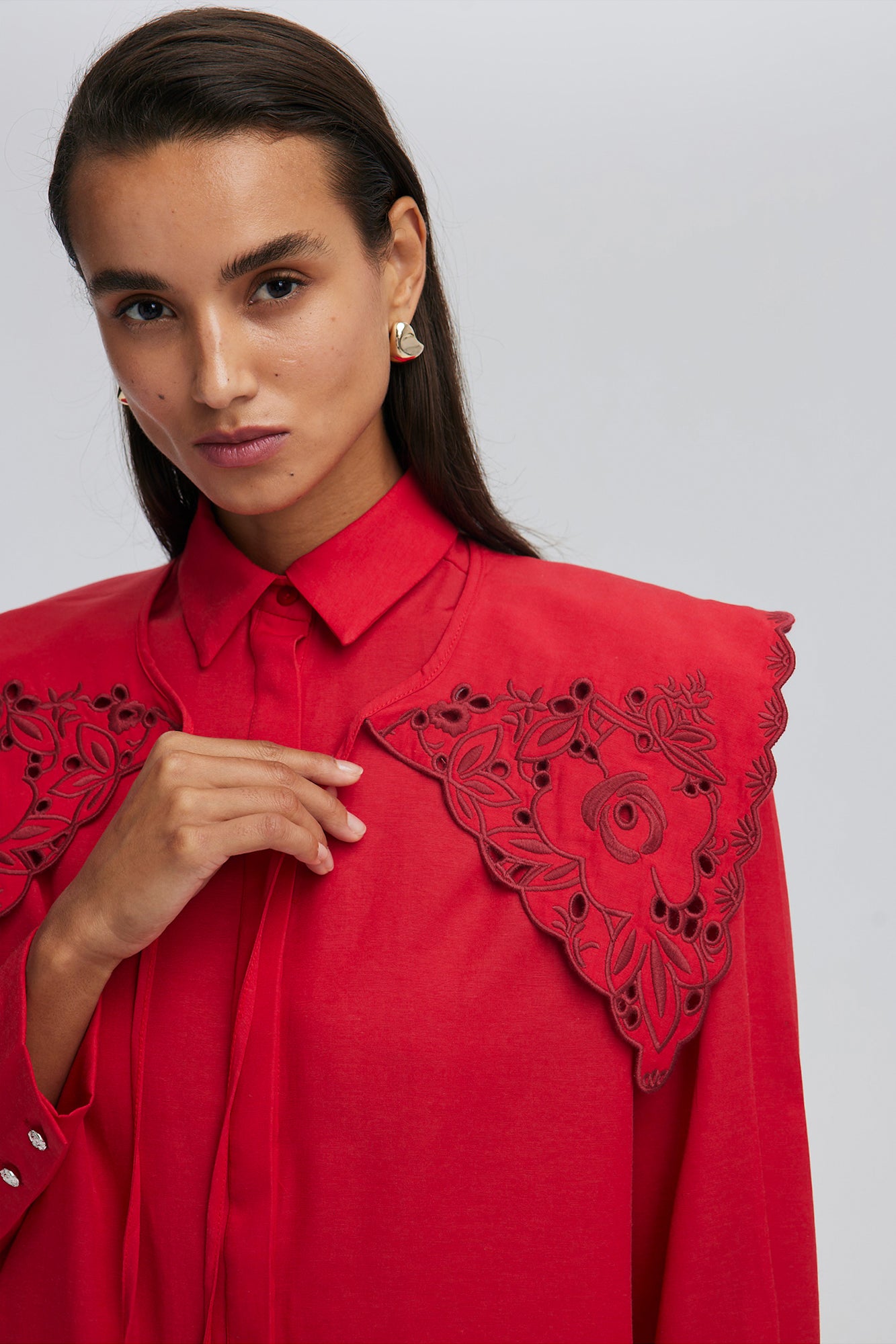 EMBROIDERY DETAILED WIDE COLLAR SHIRT