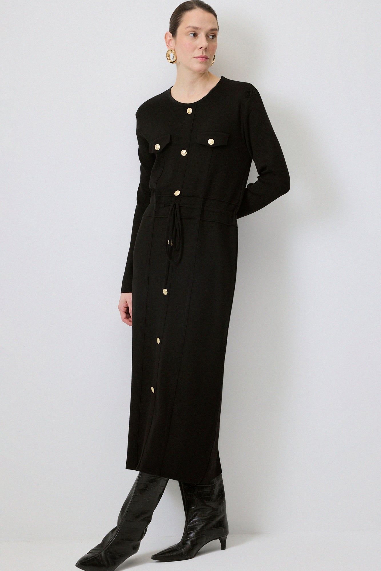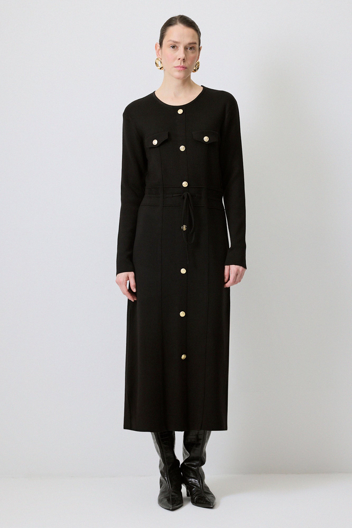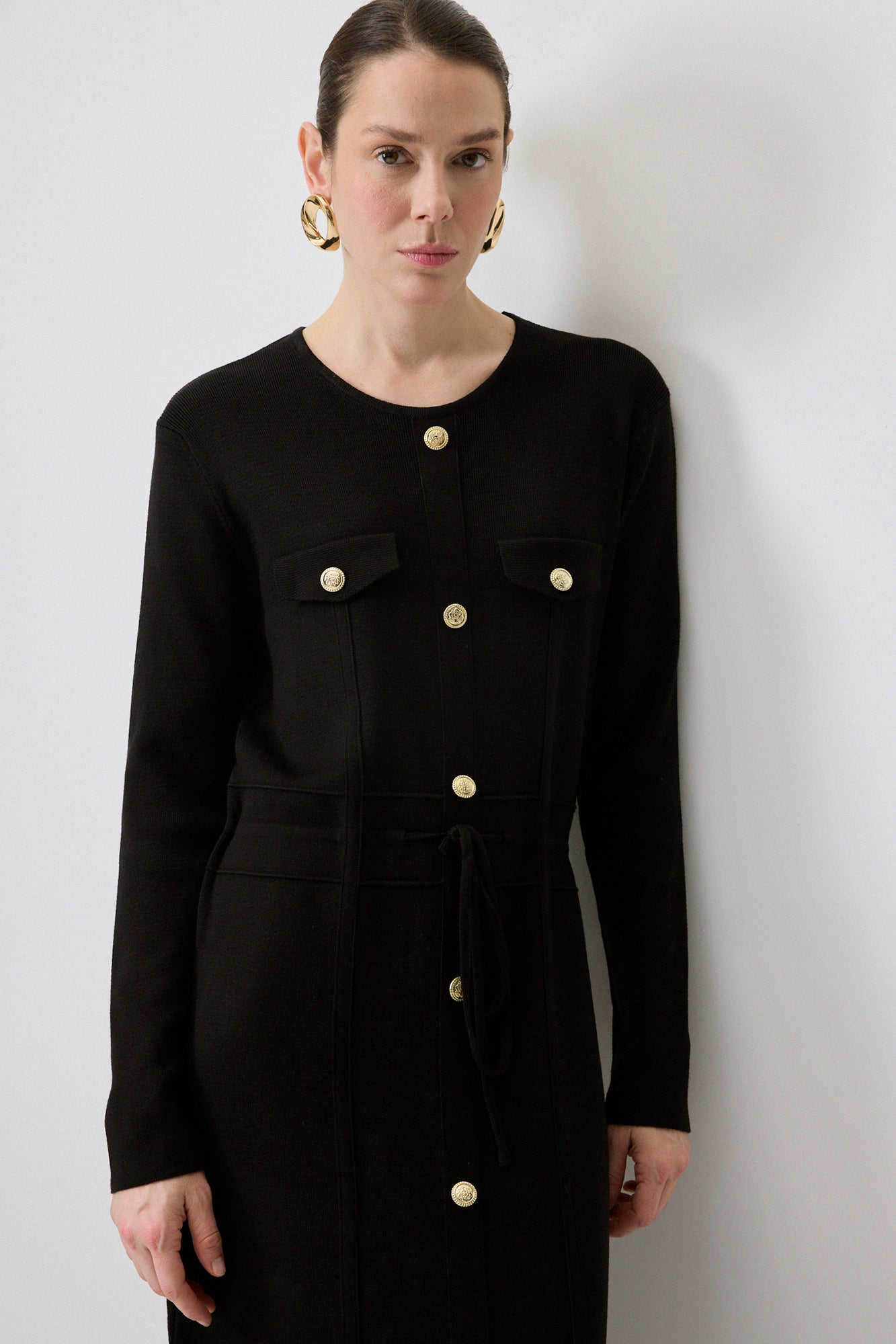GOLD BUTTONED KNIT DRESS