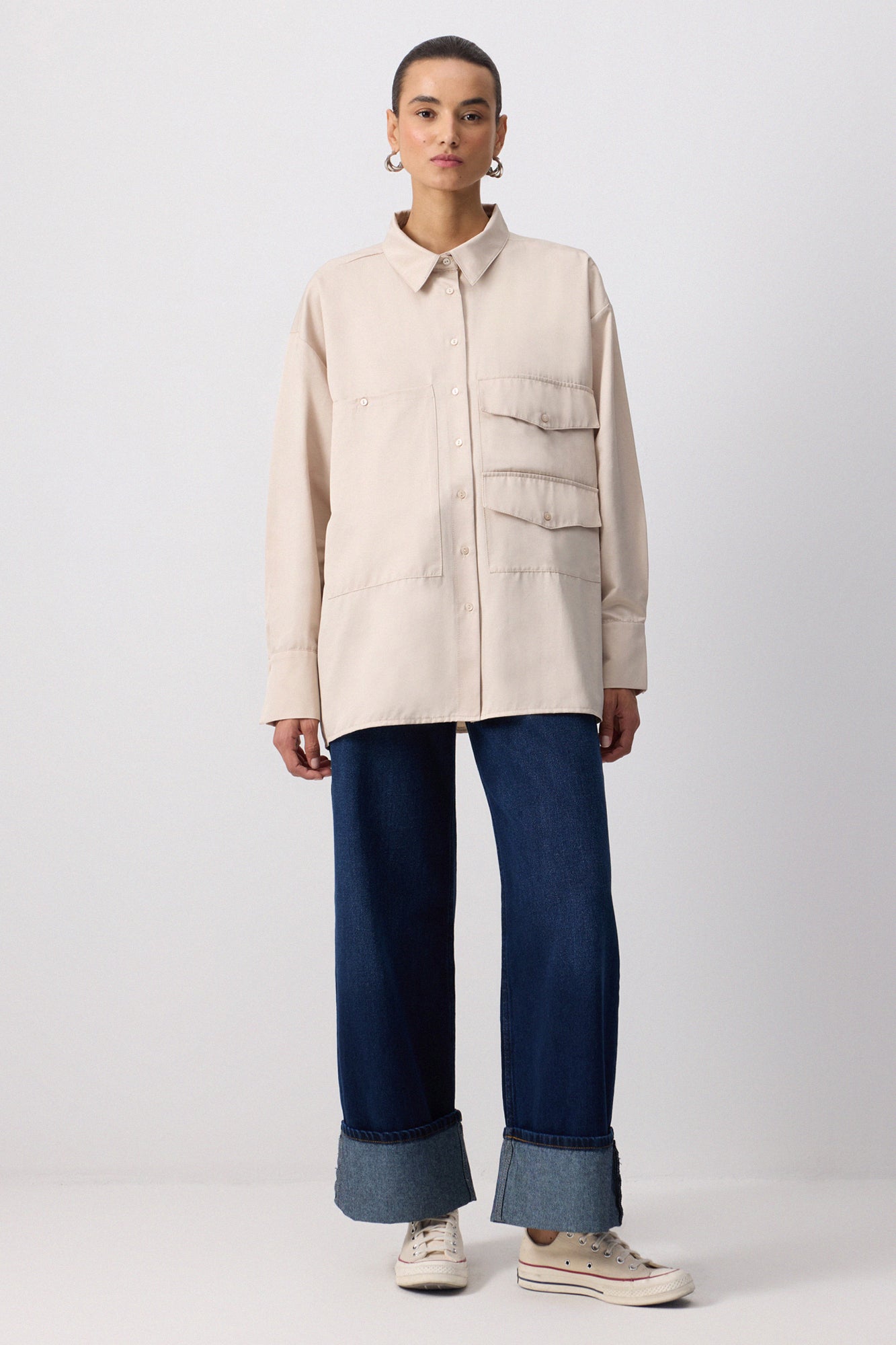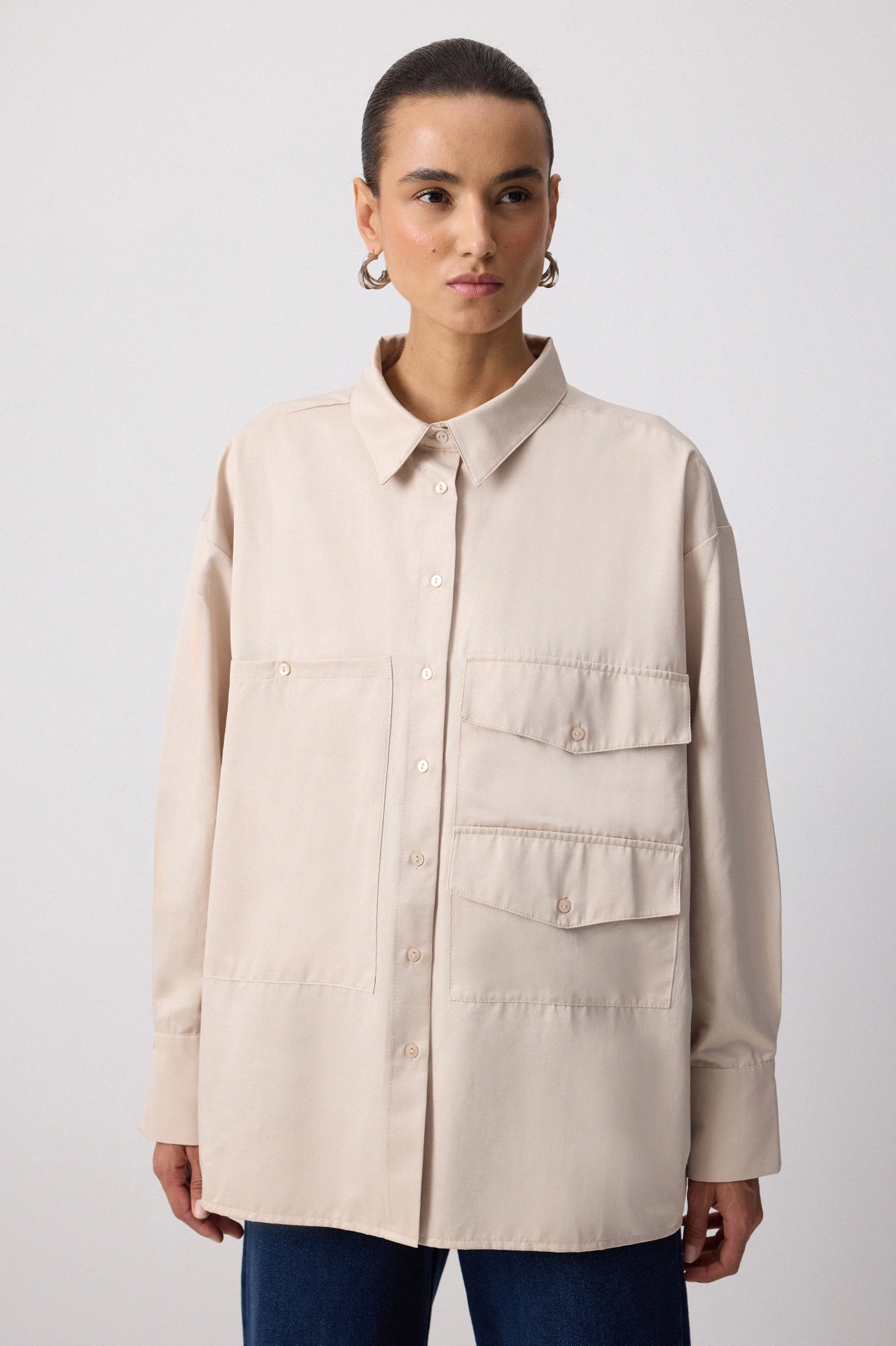 OVERSIZED SHIRT WITH DOUBLE FLAP DETAIL
