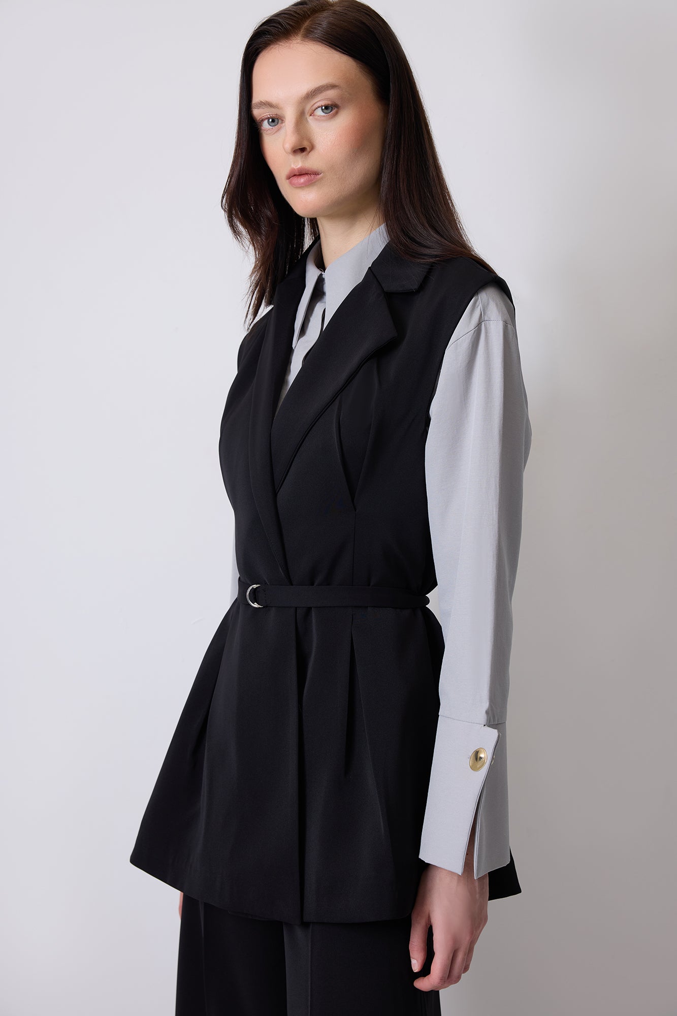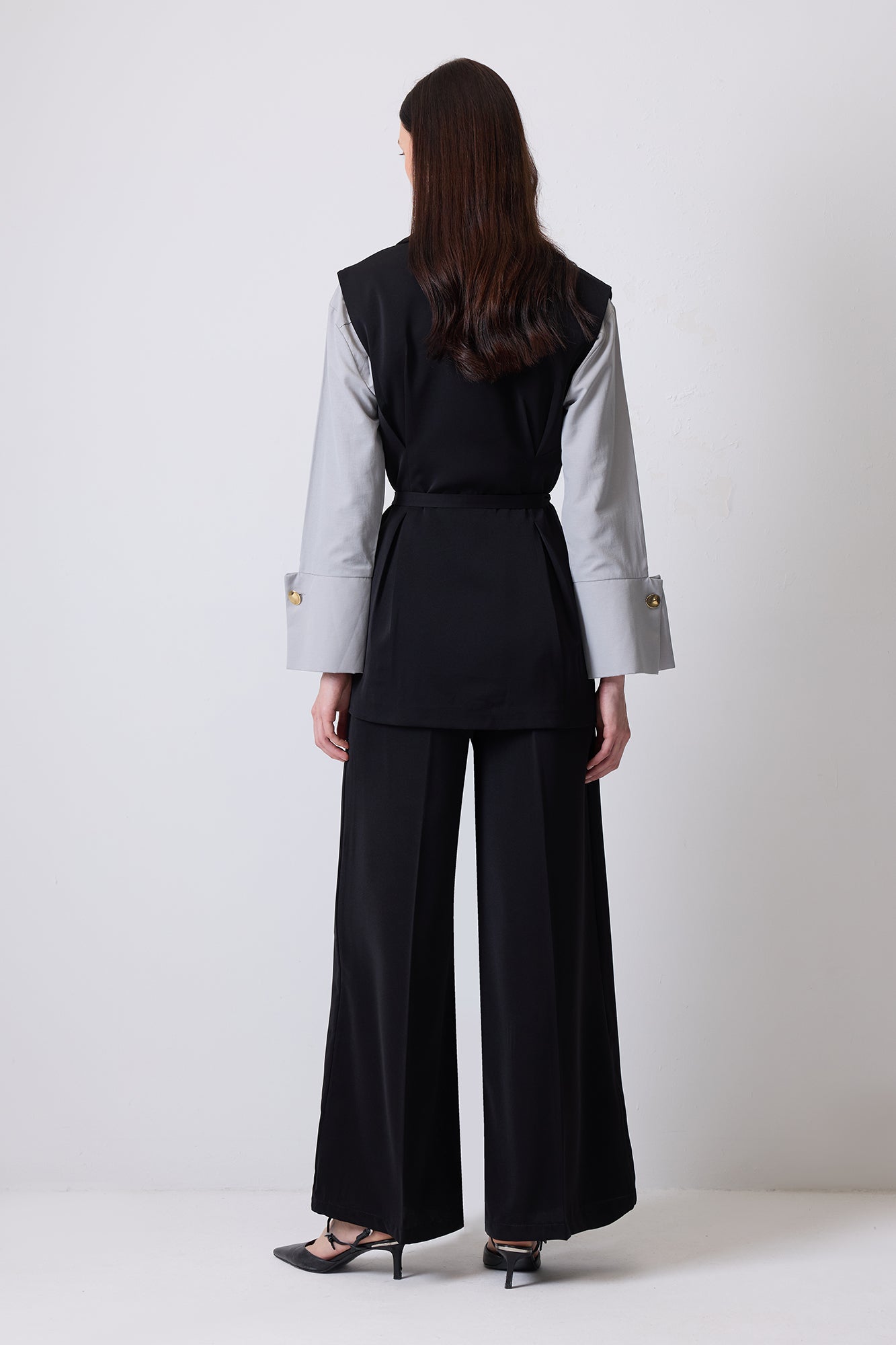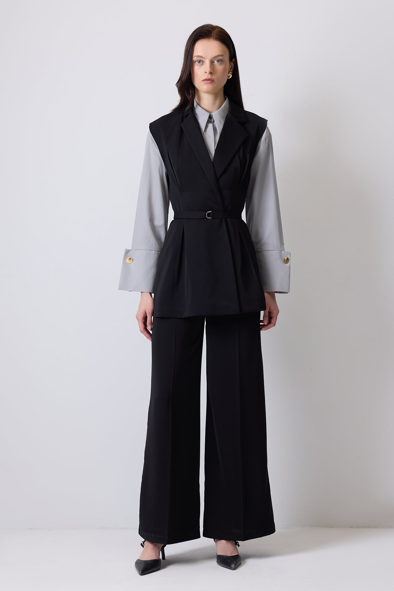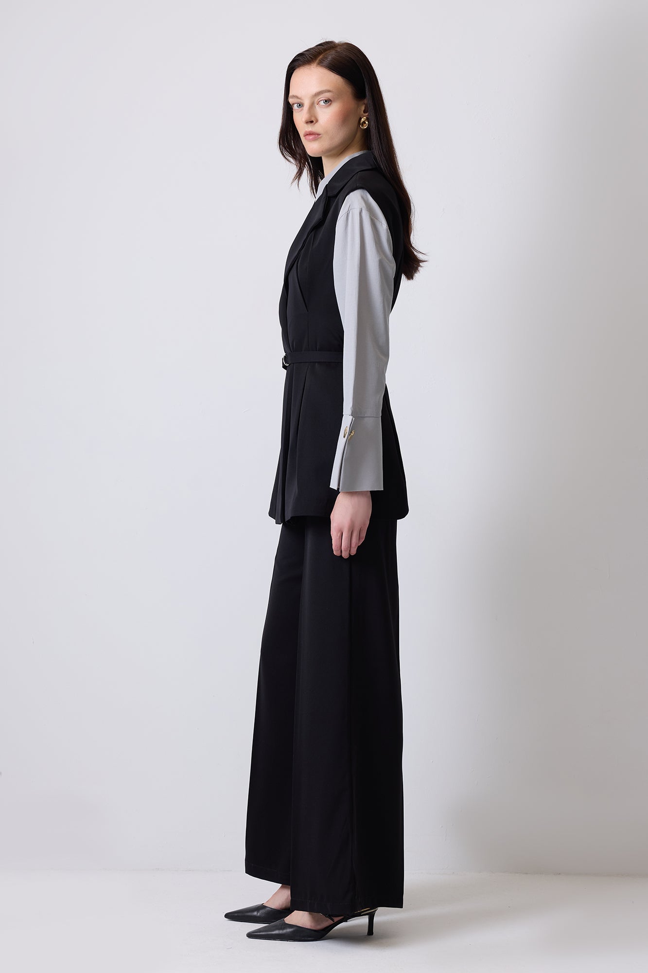 PLEATED DOUBLE BREASTED VEST PANTS SET