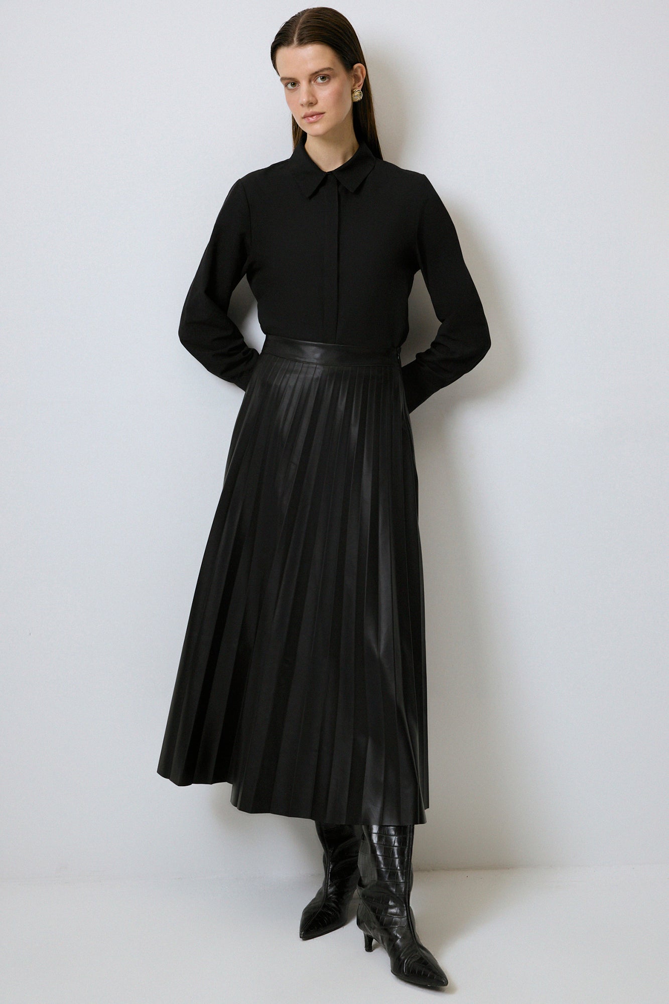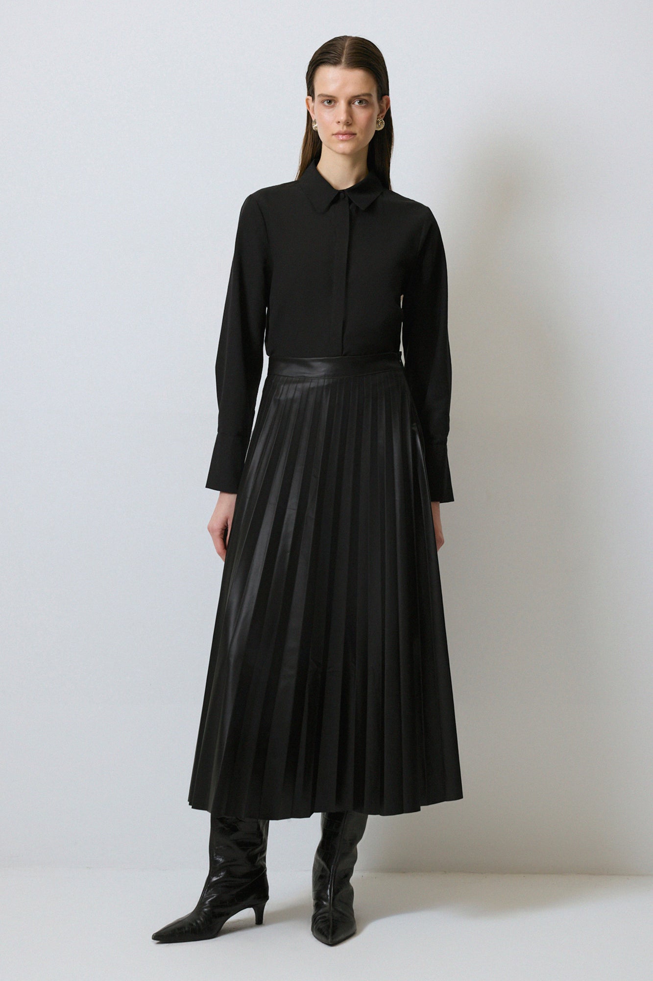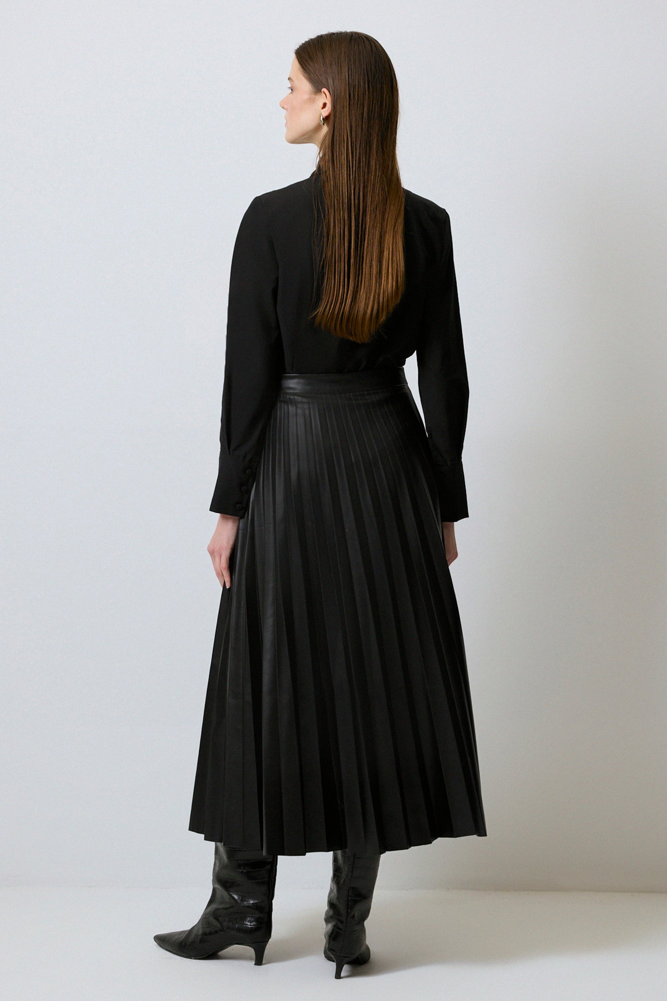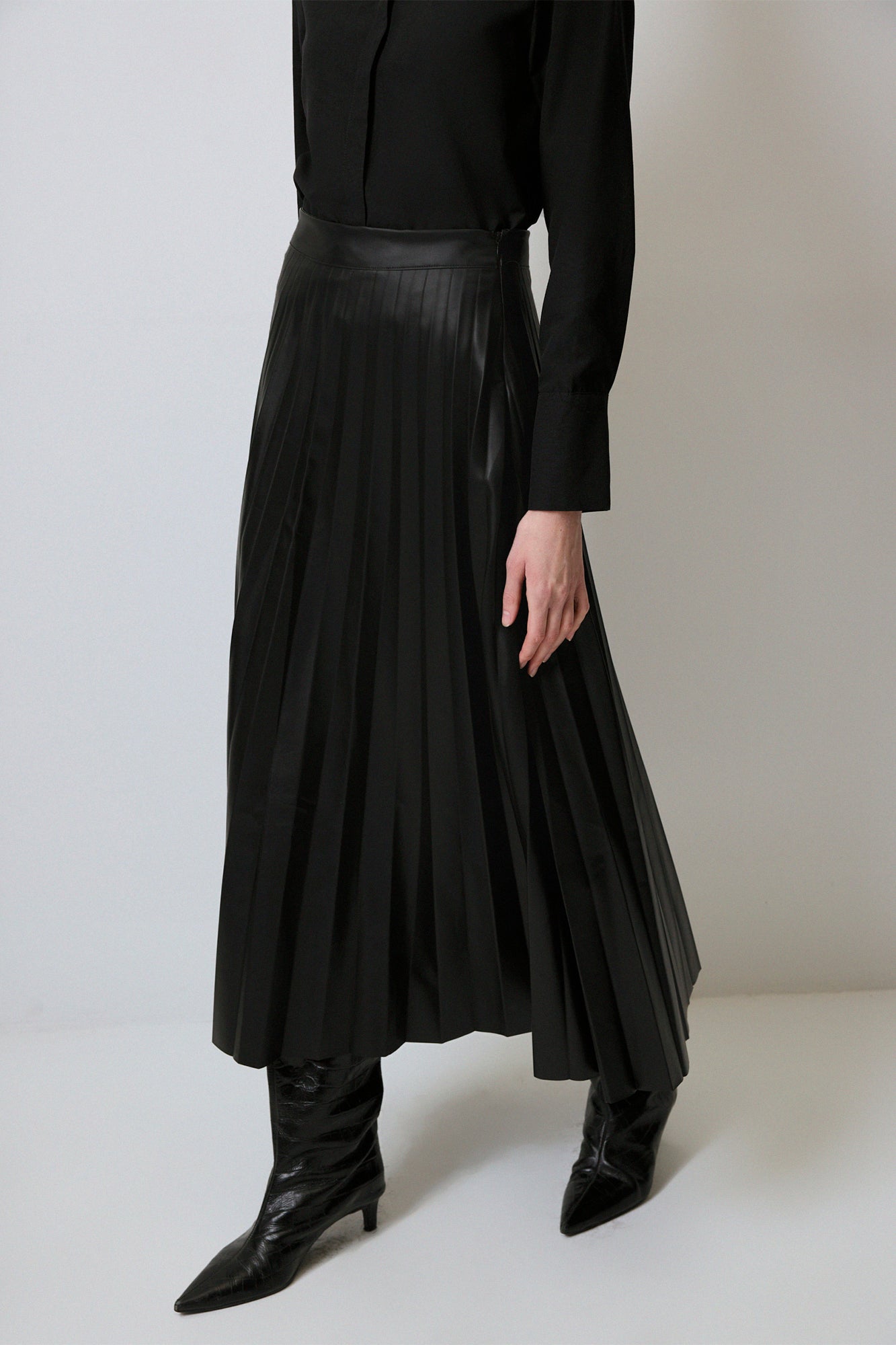 PLEATED FAUX LEATHER SKIRT