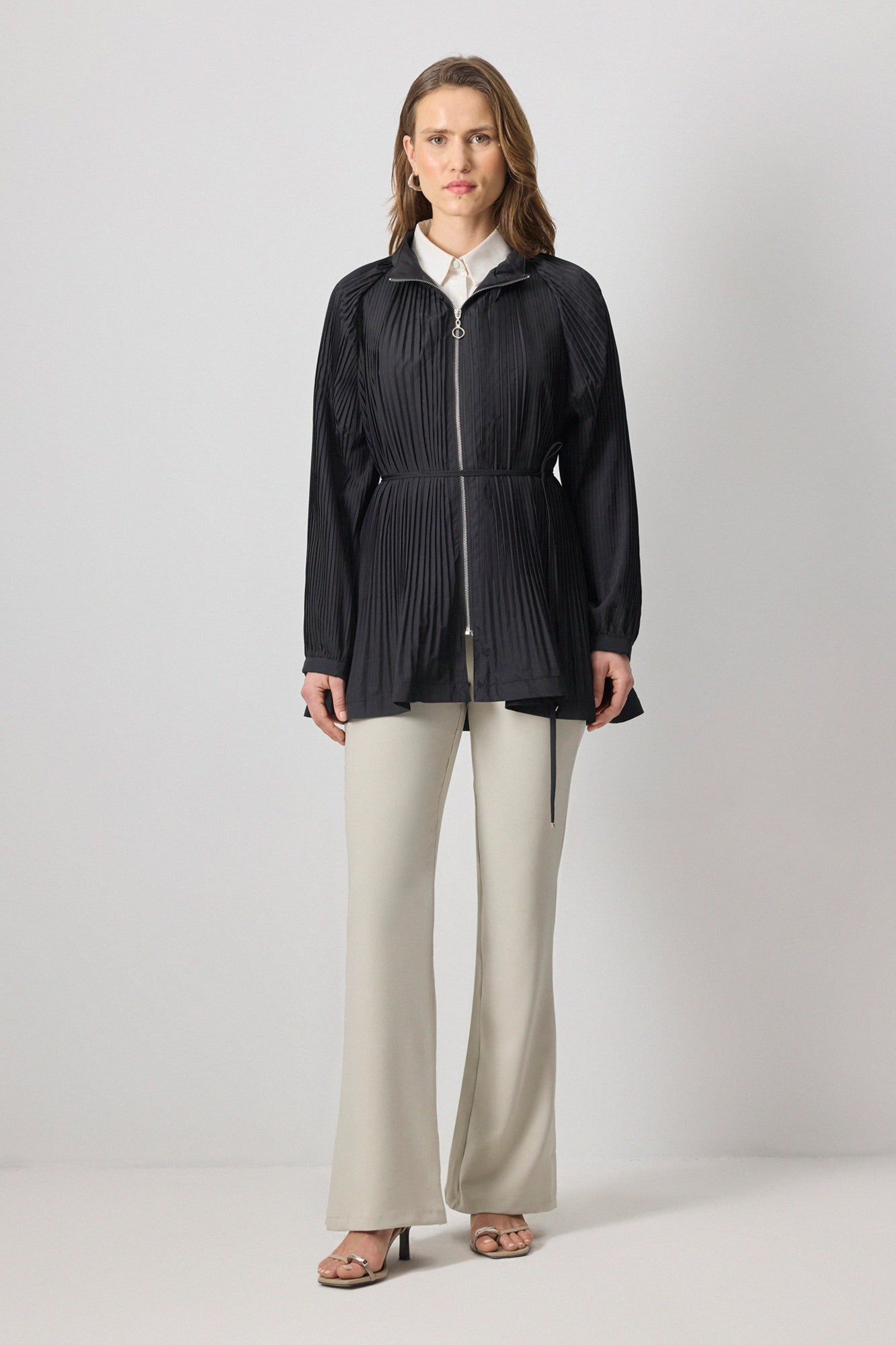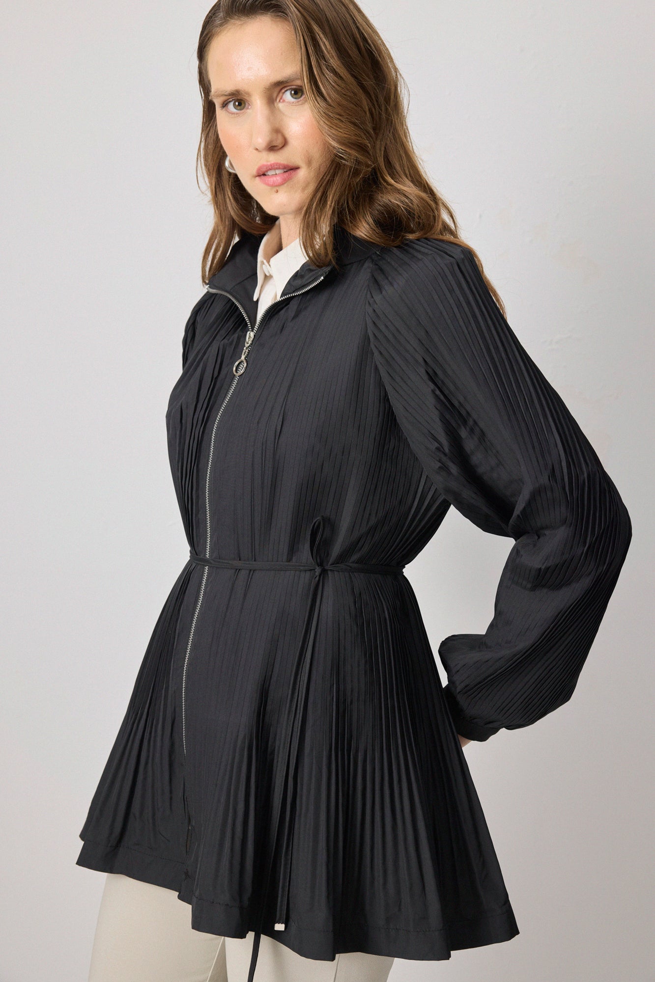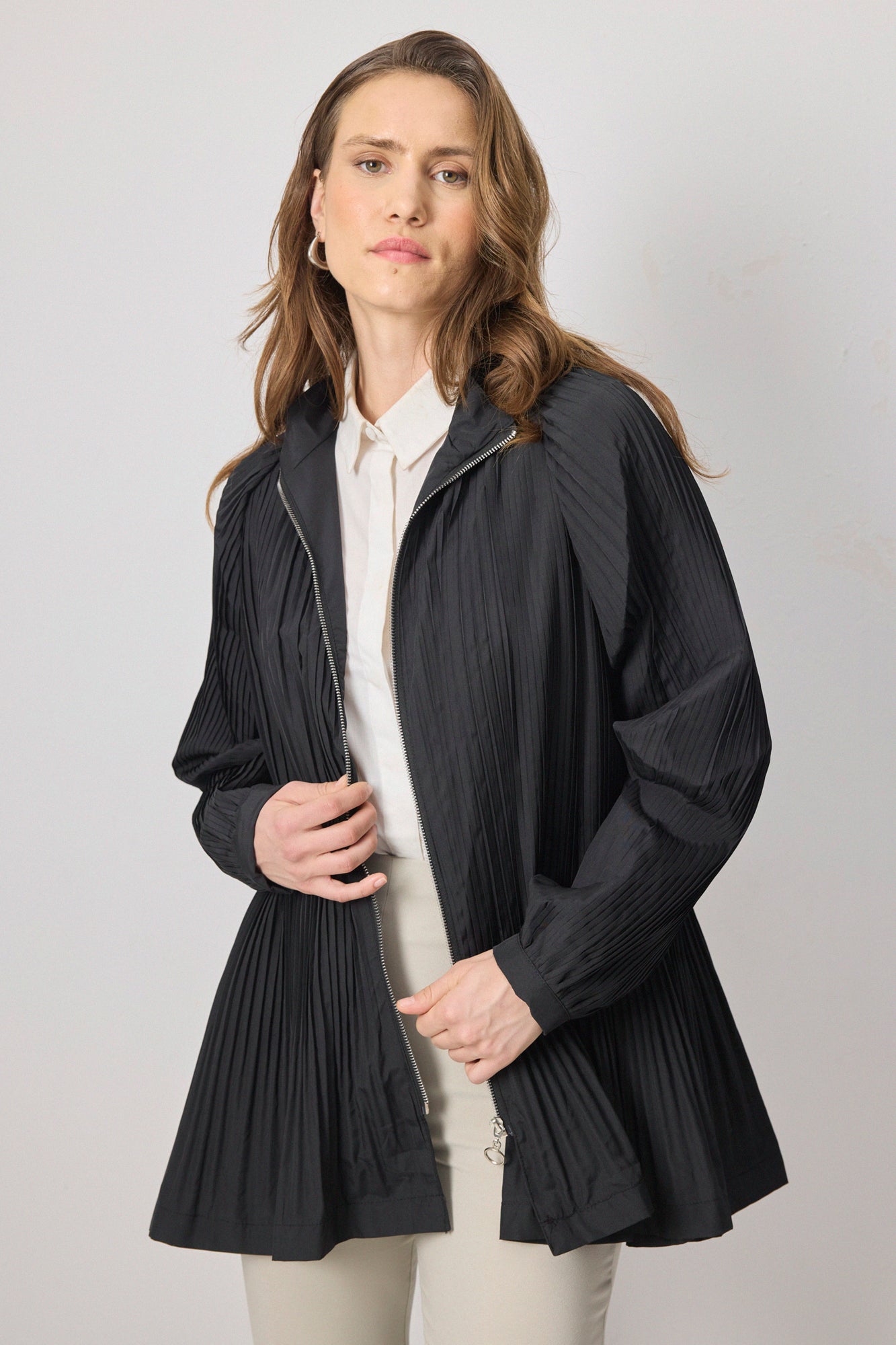 PLEATED FRONT ZIPPERED JACKET