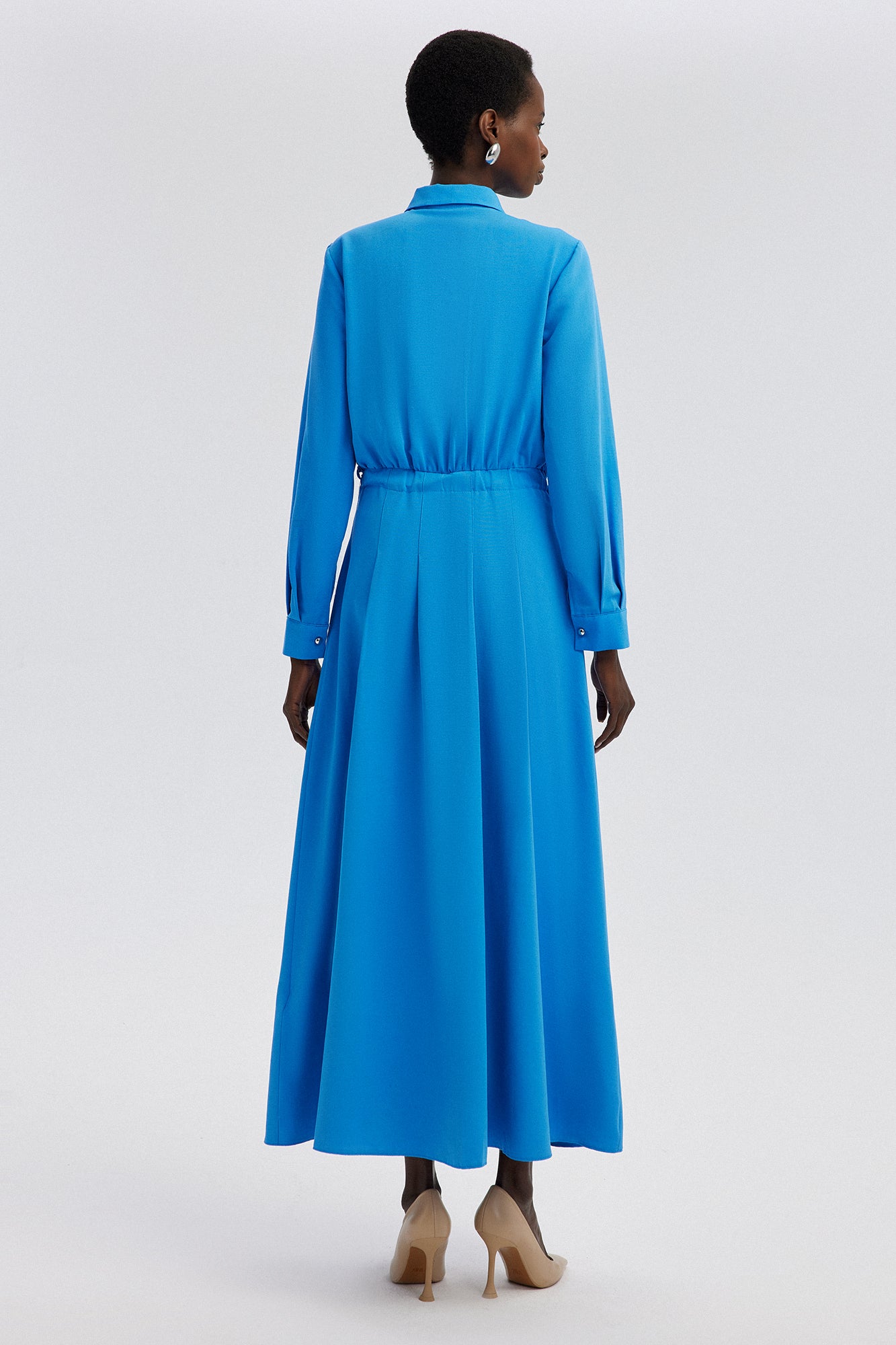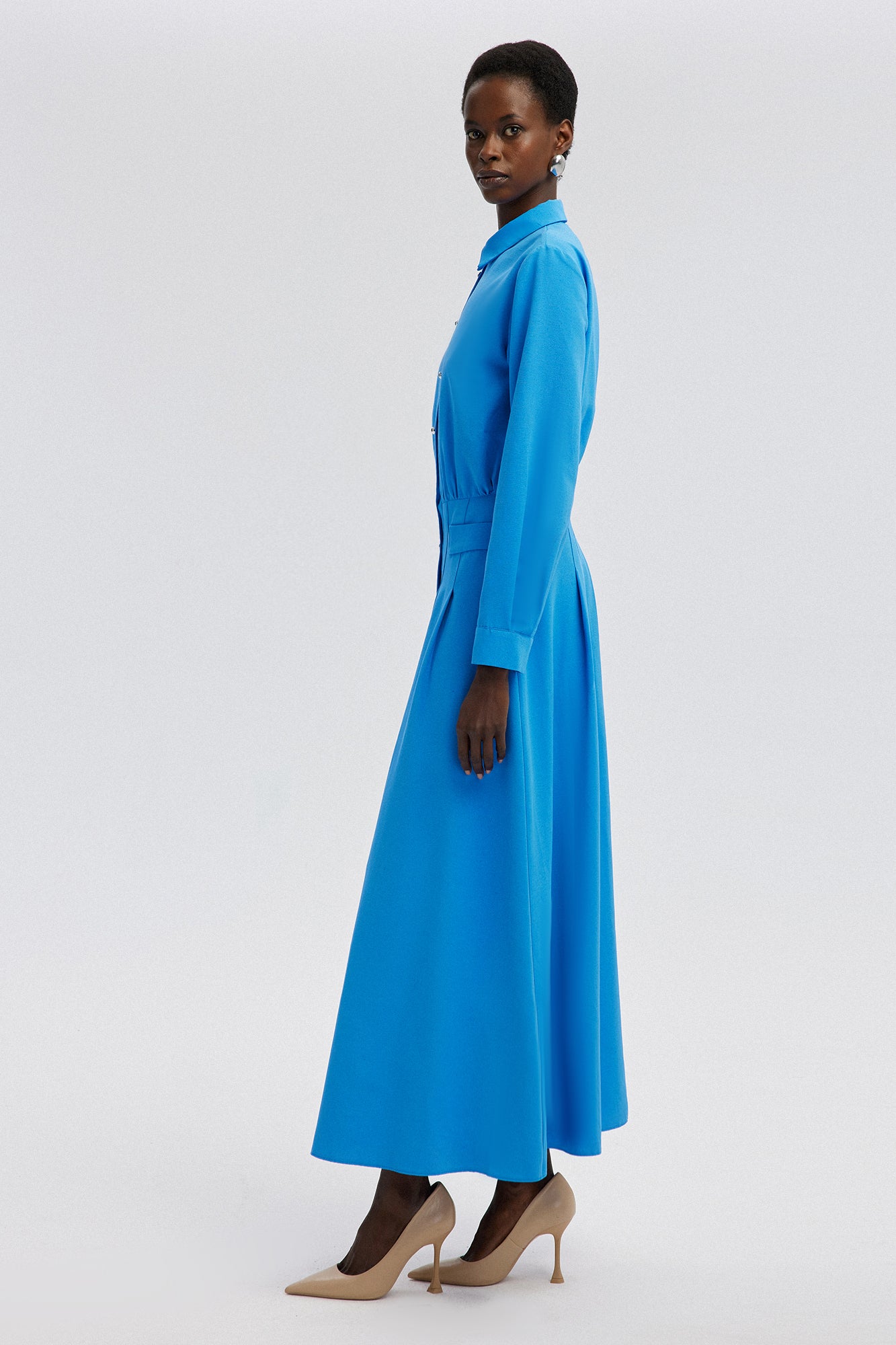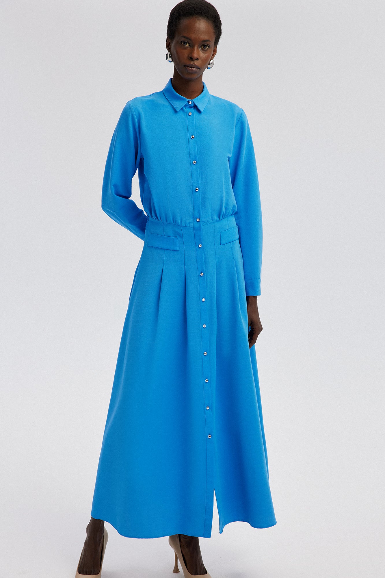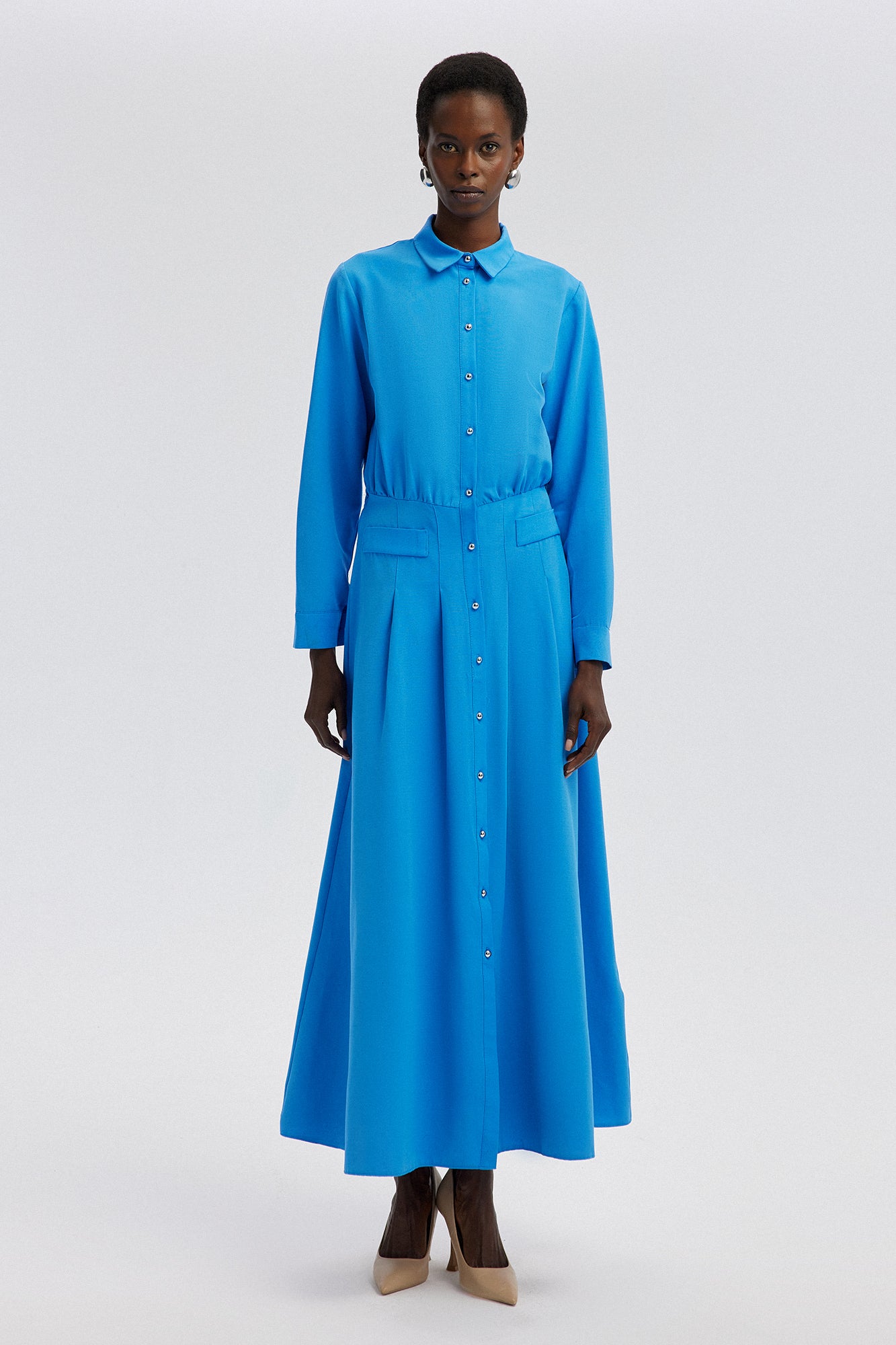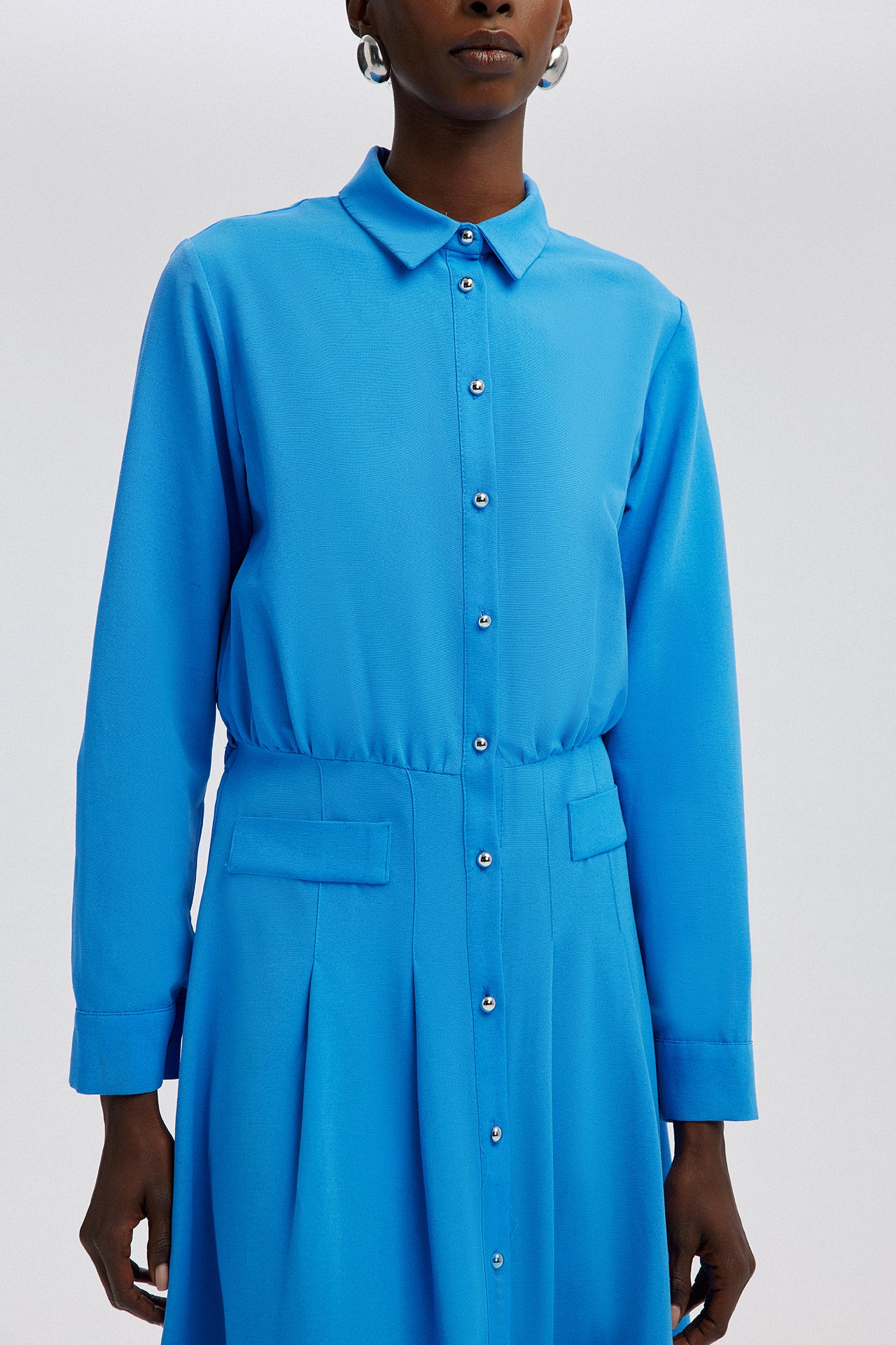 PLEATED LINEN DRESS WITH BUTTON DETAILED