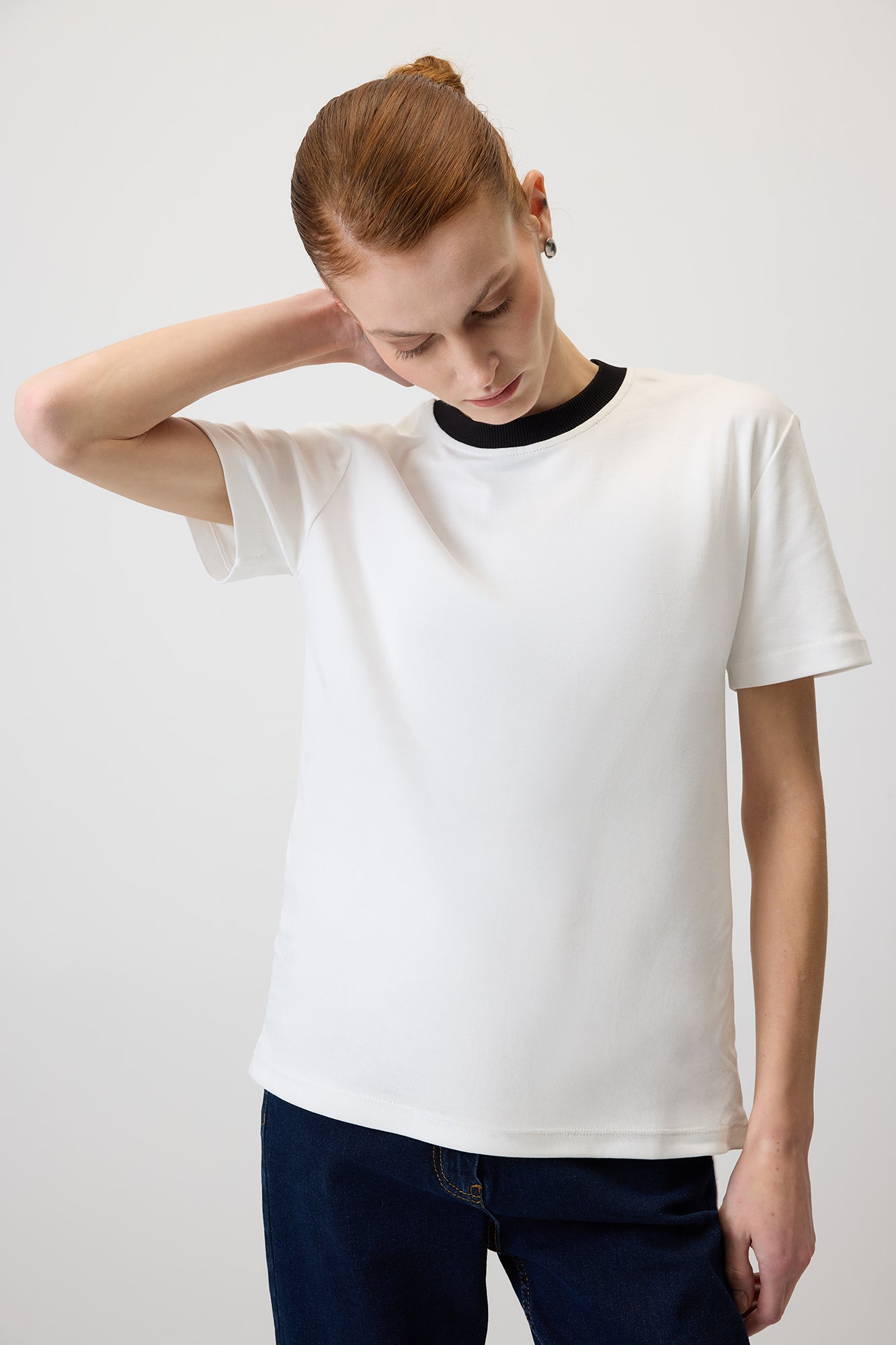 100% COTTON RIBBED COLLAR SHORT SLEEVE T-SHIRT