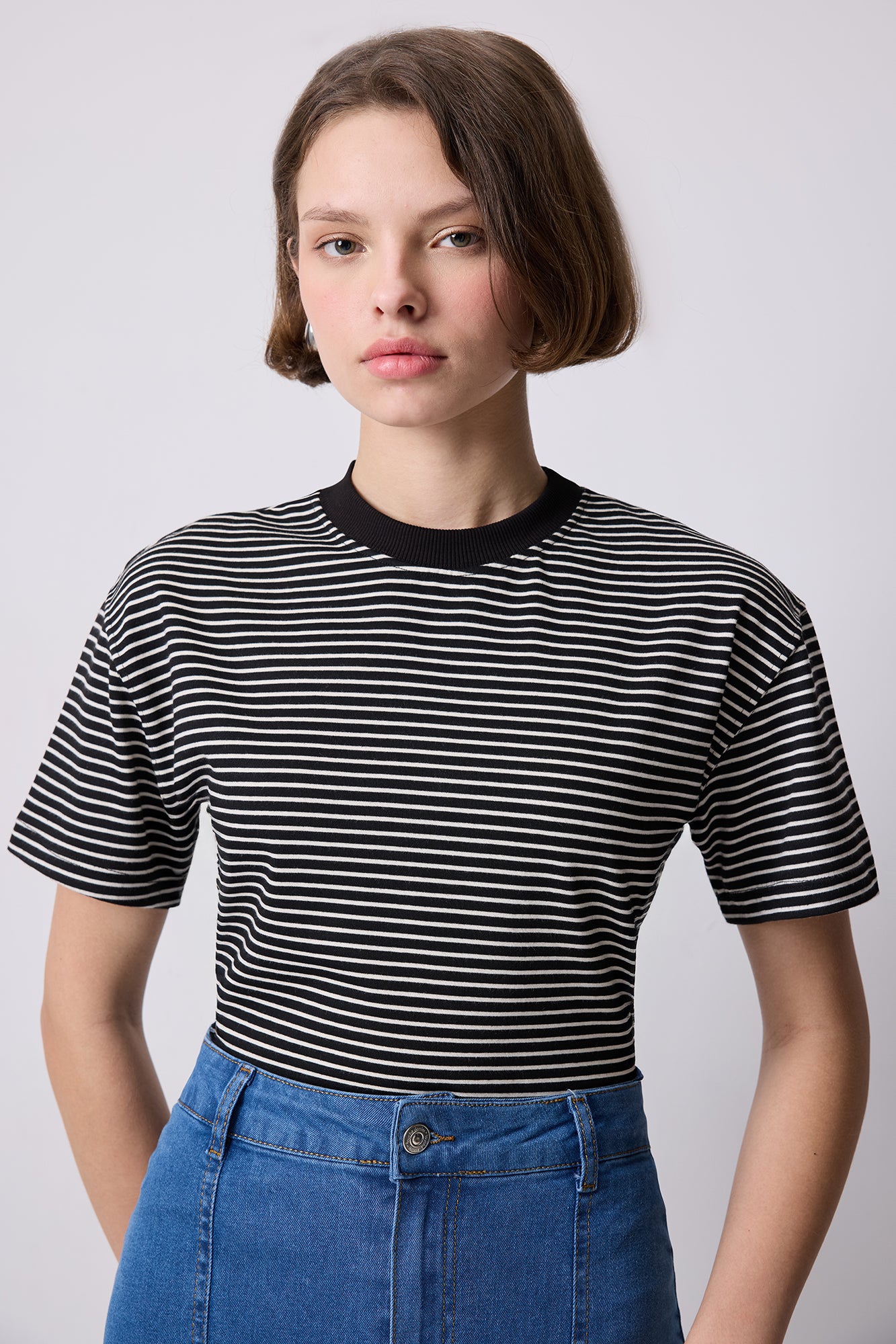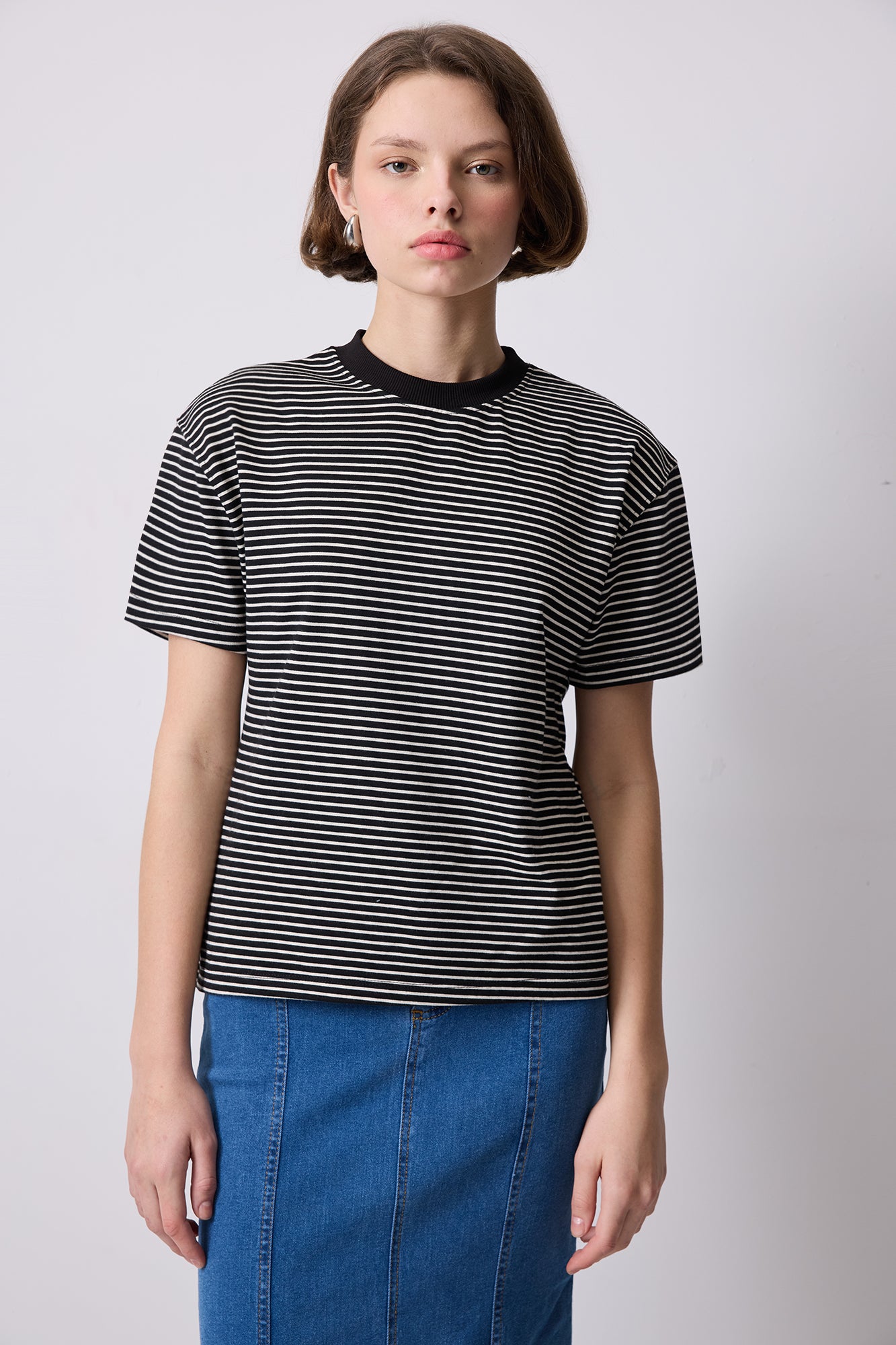 100% COTTON STRIPED SHORT SLEEVE T-SHIRT